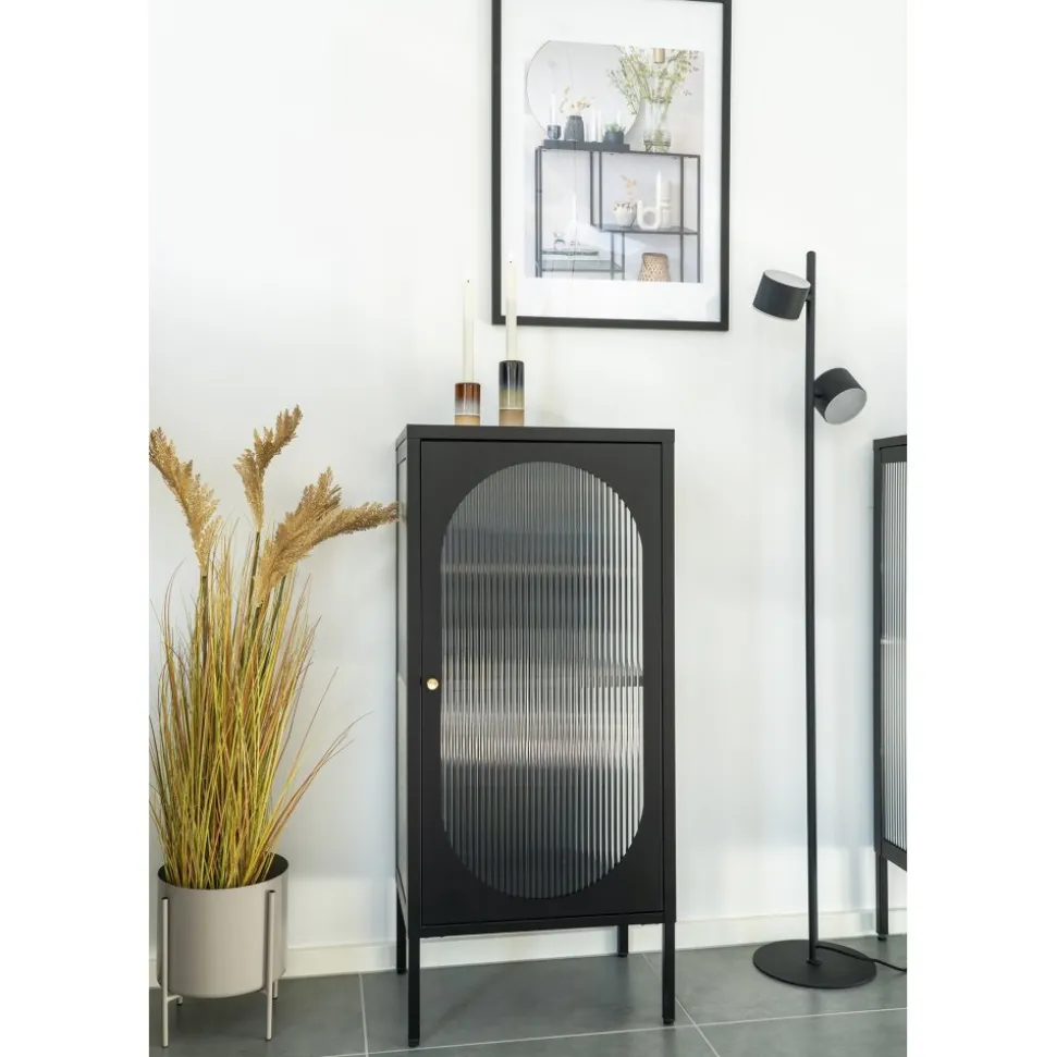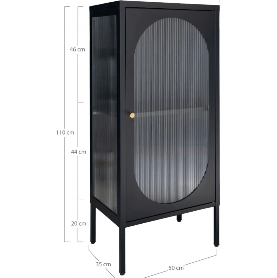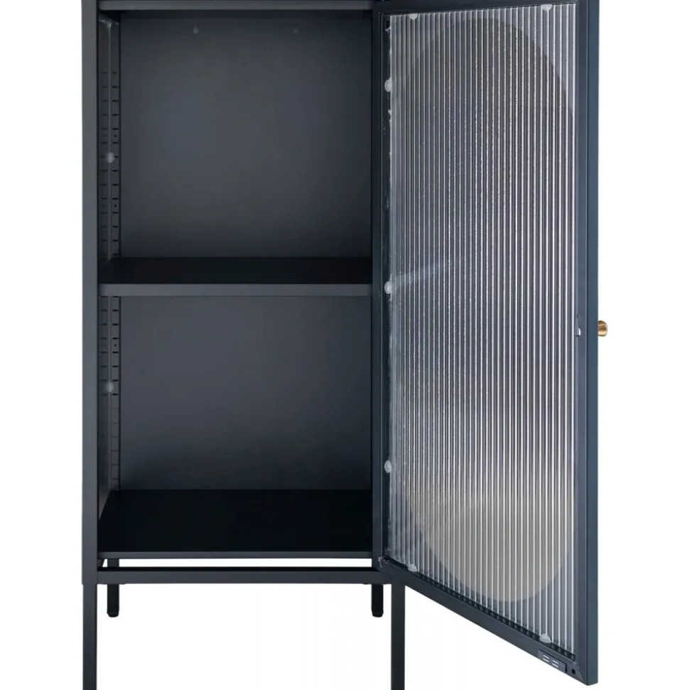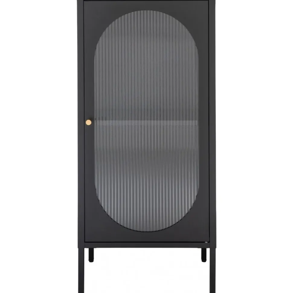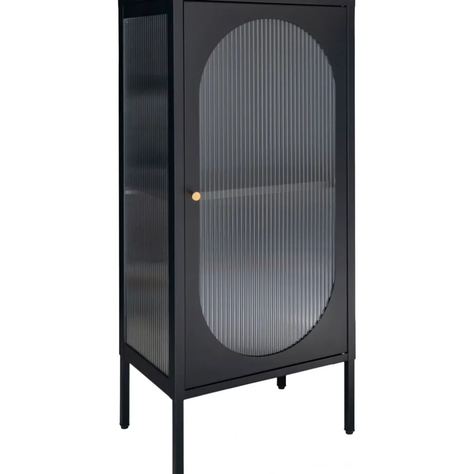 Vitrinskåp av stål och glas. Viss montering krävs.