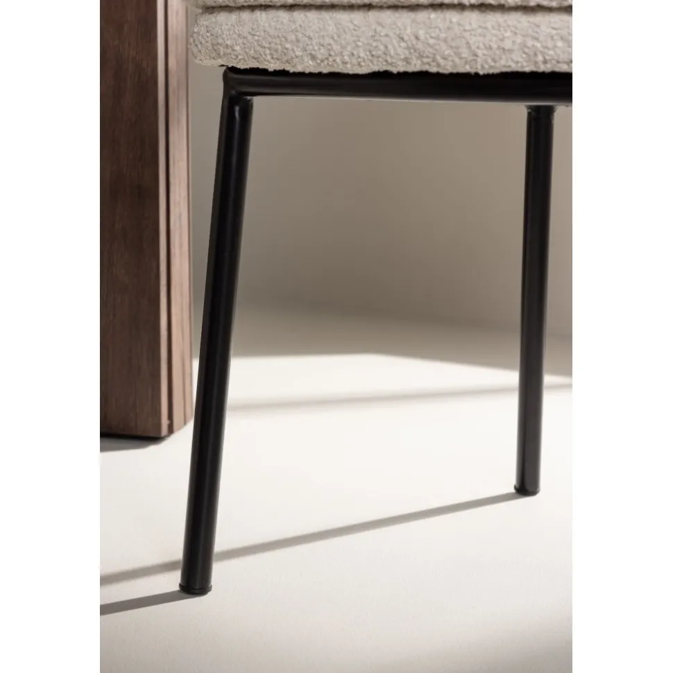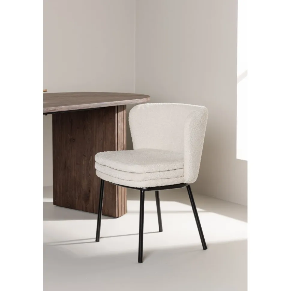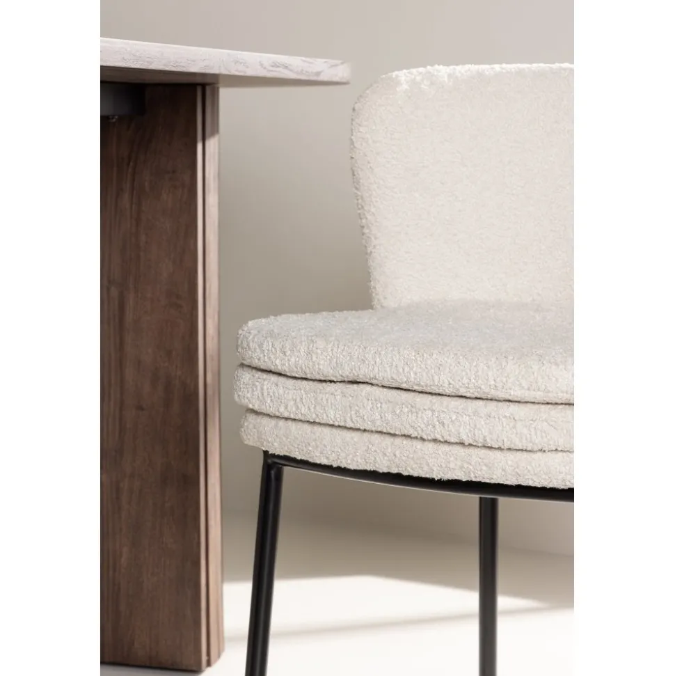 Upptäck Agnes matstolens enkla skönhet och stilrena design. Med en sits i vit bouclé och eleganta svarta stålben erbjuder Agnes en modern och sofistikerad estetik som kompletterar alla inredningsstilar.Den mjuka och texturerade sitsen i bouclé ger en varm och inbjudande känsla samtidigt som de svarta stålbenen ger en modern touch till stolen. Agnes skapar en harmonisk atmosfär och ger ditt matsalsrum eller kök en imponerande visuell effekt. Med sin stilrena design och komfortabla sits är Agnes det perfekta valet för att samlas runt middagsbordet med familj och vänner. Ge ditt hem en touch av enkel elegans och skapa en trivsam atmosfär med Agnes matstol.