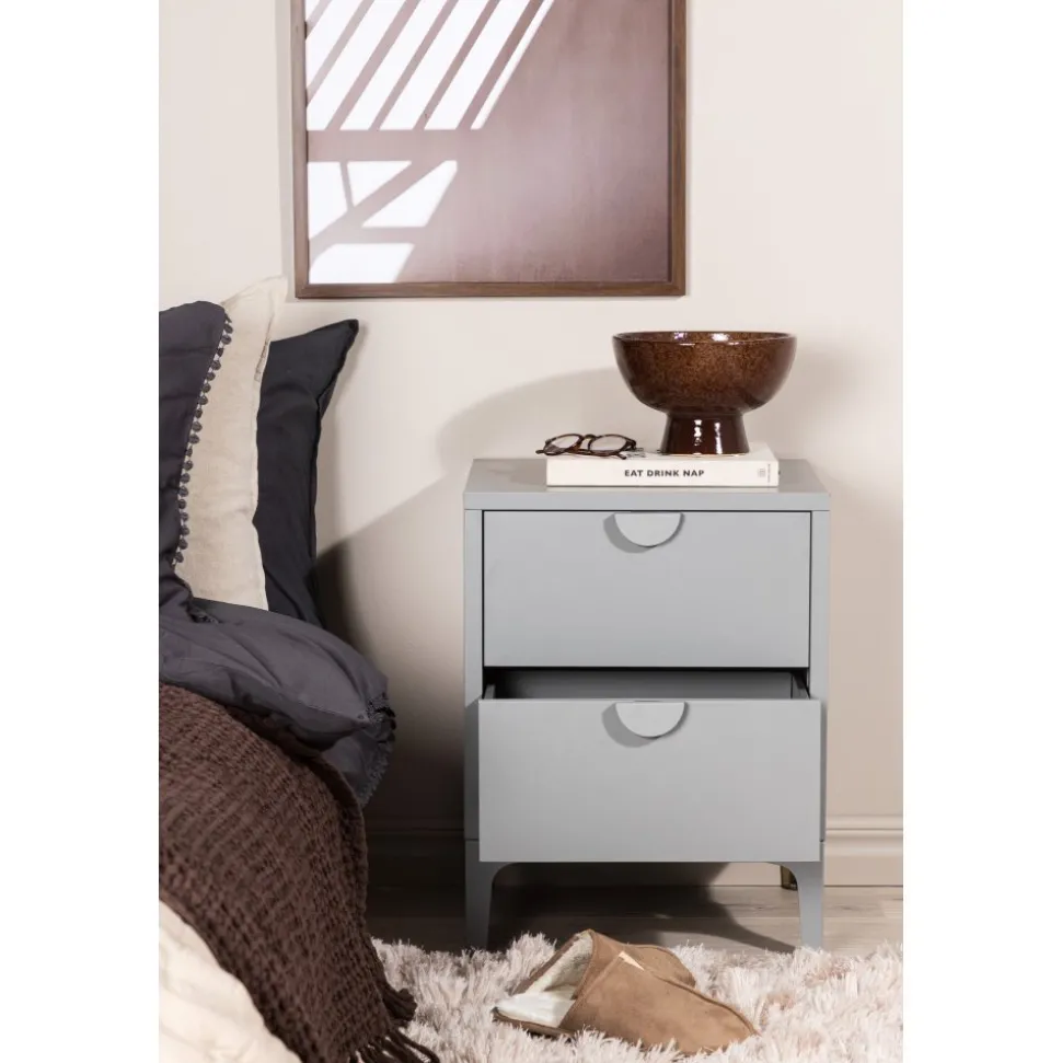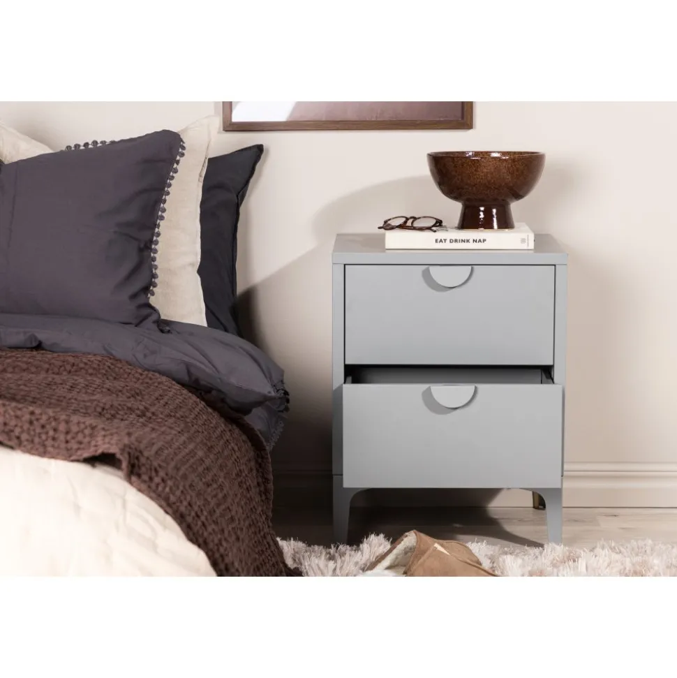 Sängbord i serien Alexander är perfekt som förvaringslösning. Det kvadratiska sidobordet i grått stål har två lådor för dold förvaring och stilren ovansida med lagom plats för en sänglampa, en bra bok och eventuell prydlig inredningsdetalj för modern look. Sängbordet lyfts upp av fyra ben som ger en luftigare känsla och den raka designen gör bordet lättplacerat och enkel att matcha. Se våra bilder för inspiration.