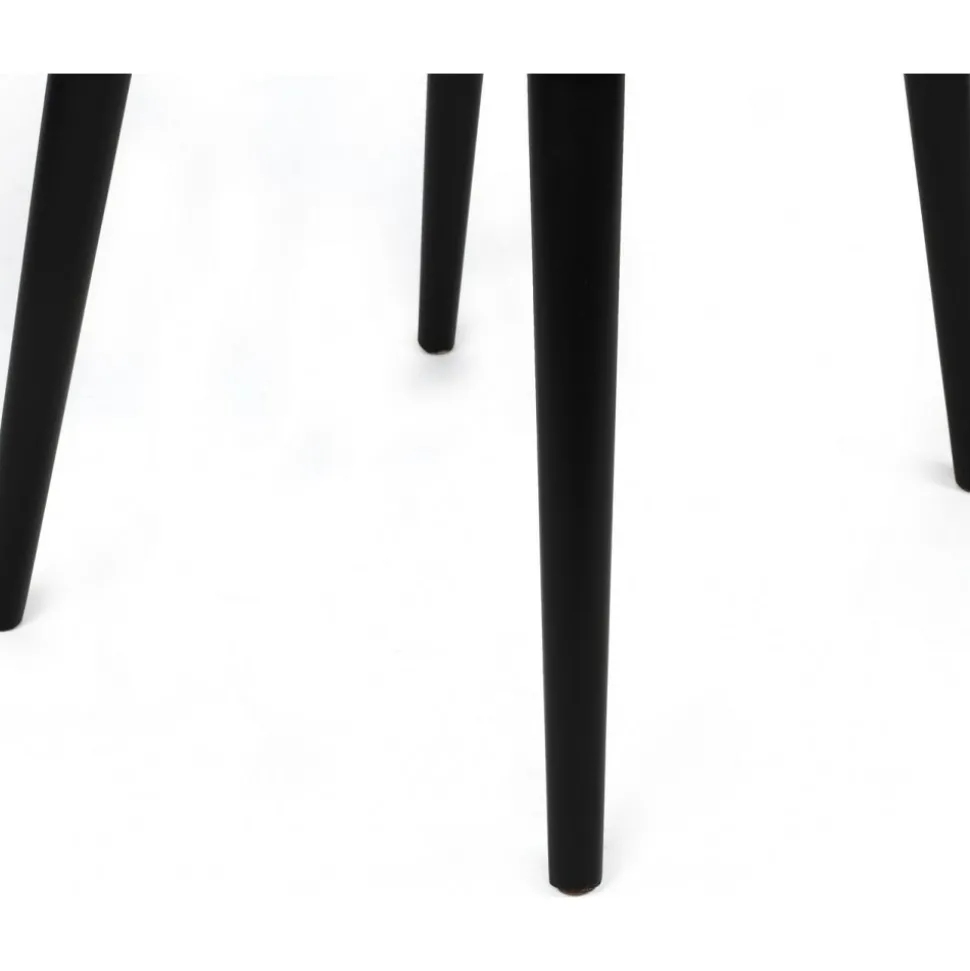 Matstol av metall med klädsel av sammet och ben av avenbok.