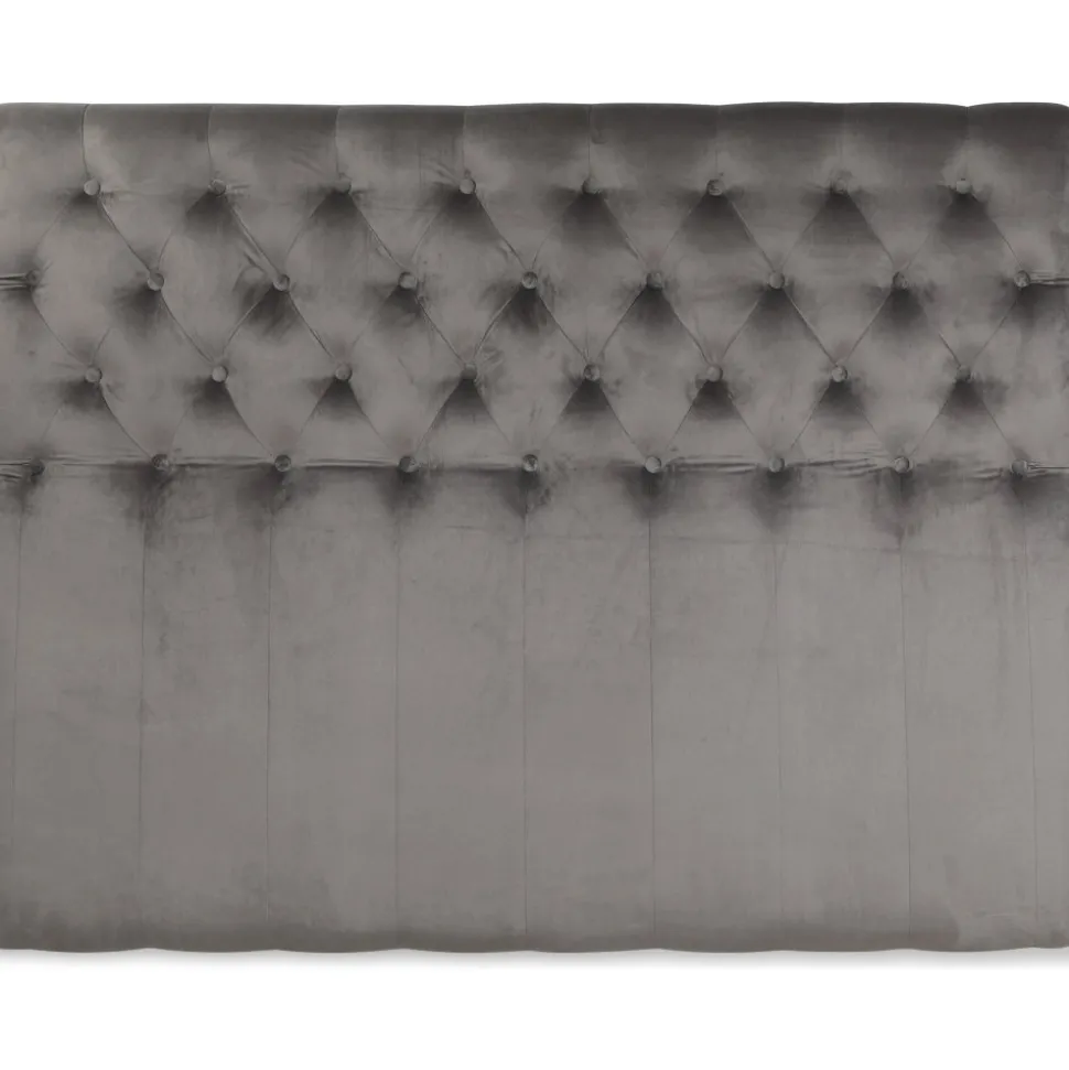 Sänggavel Anna i ett grått sammetstyg med en mjuk känsla. Snygg design med djuphäftade knappar för att ge ett lyxigt utryck i sovrummet.