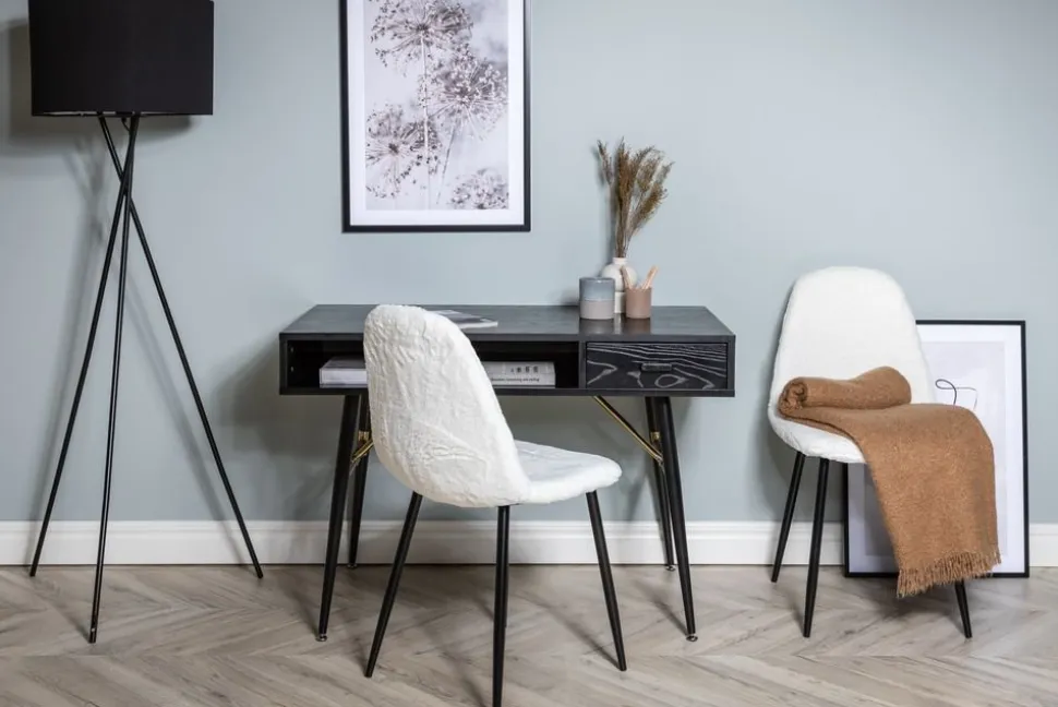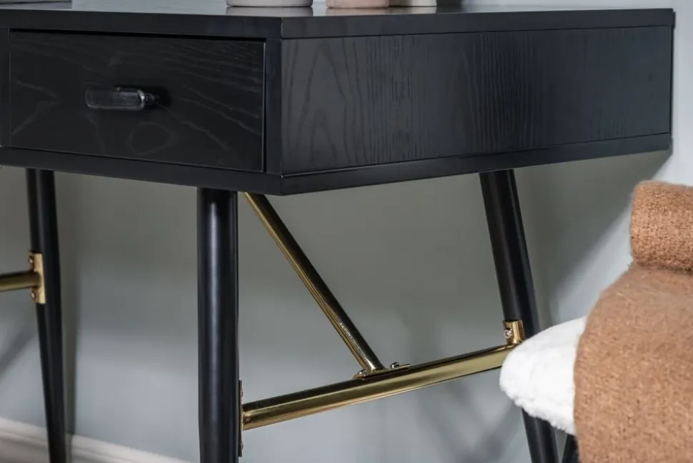 Ett nätt av svart MDF/metall, detaljer i mässing. Ben av svart metall.
