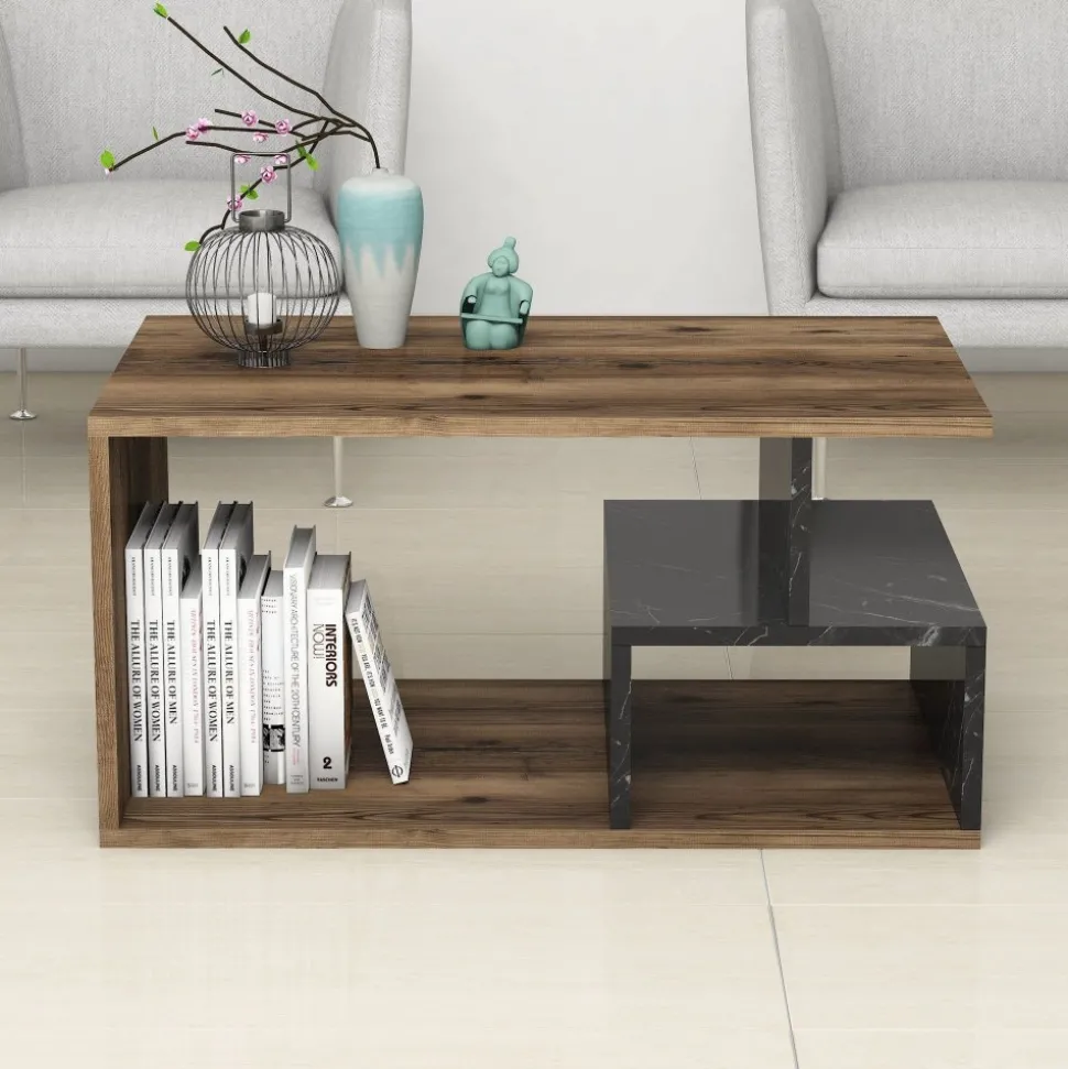 Arte soffbord 90 x 42 cm – Mörk valnöt/svart marmor + Möbeltassar