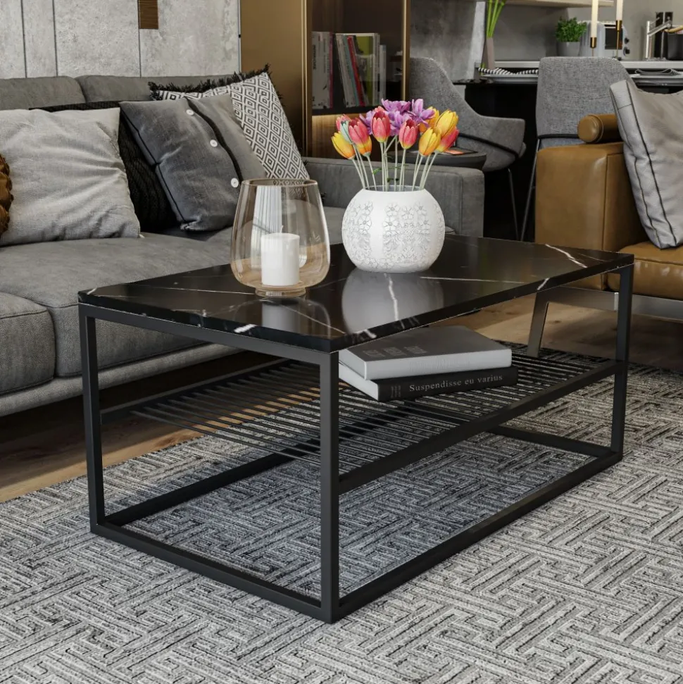 Soffbord av trä och metall.