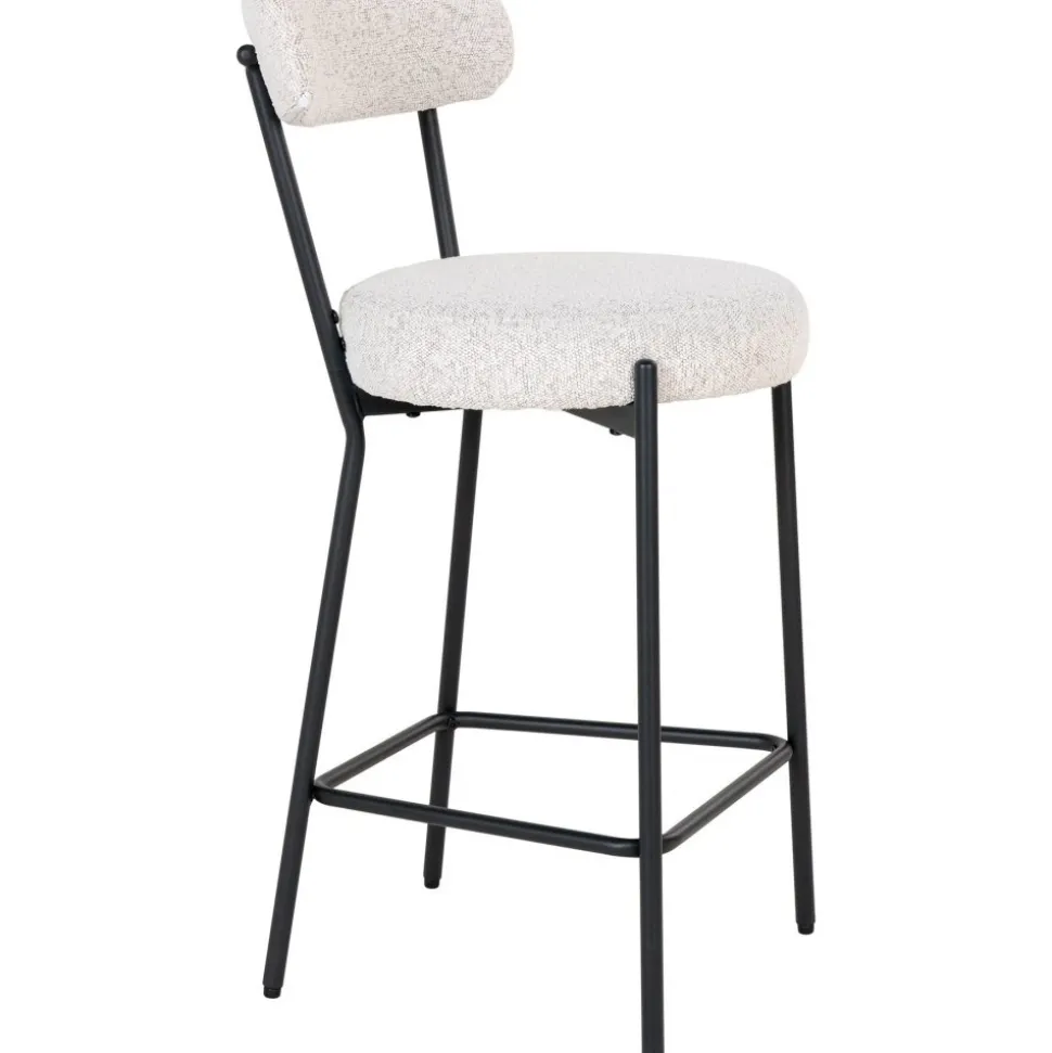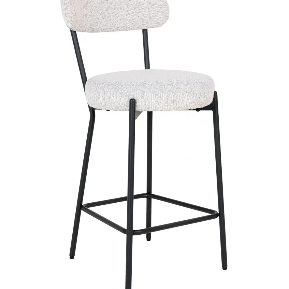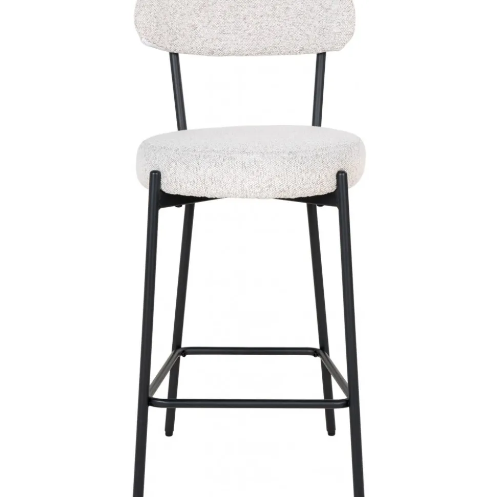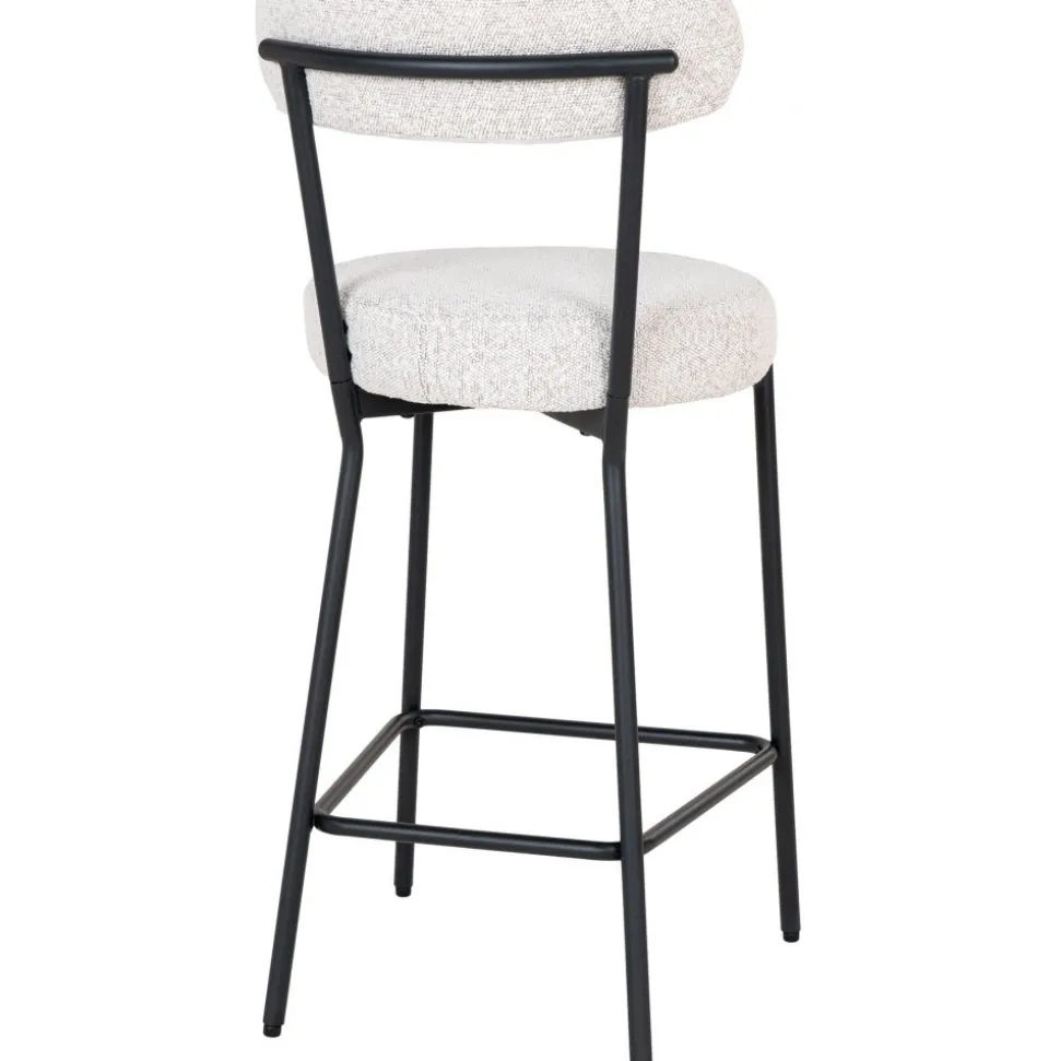 Barstol av plywood med underrede av stål och klädsel av boucletyg. Levereras omonterad.