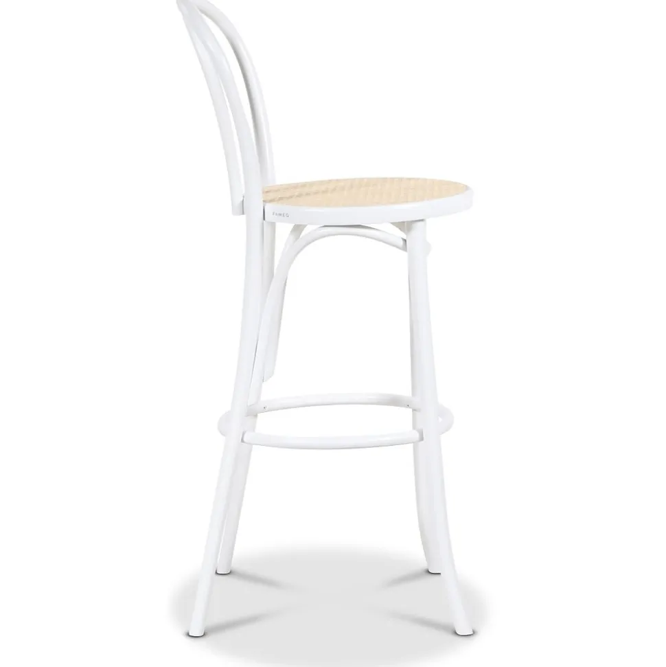 En av de mest klassiska barstolarna i böjträ. Formgiven av Michael Thonet för över 150 år sedan. Stolen har en sits av naturrotting medans stommen är i vitlackat böjträ.