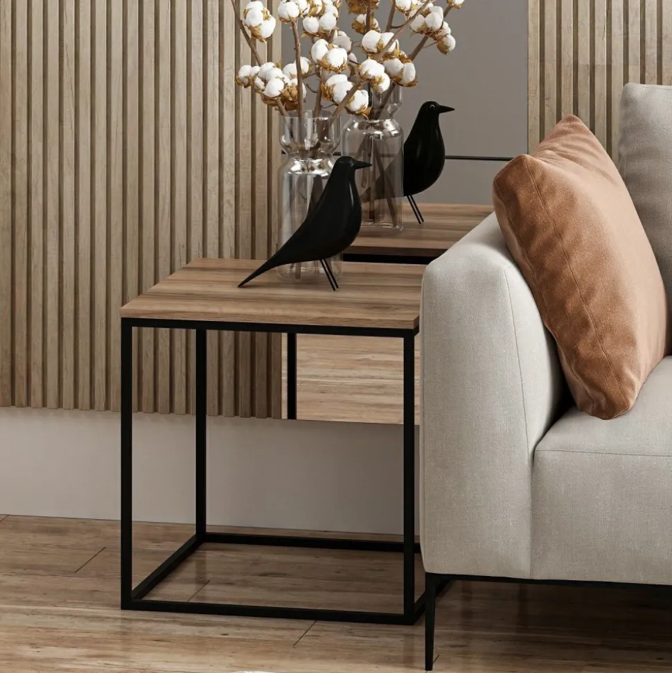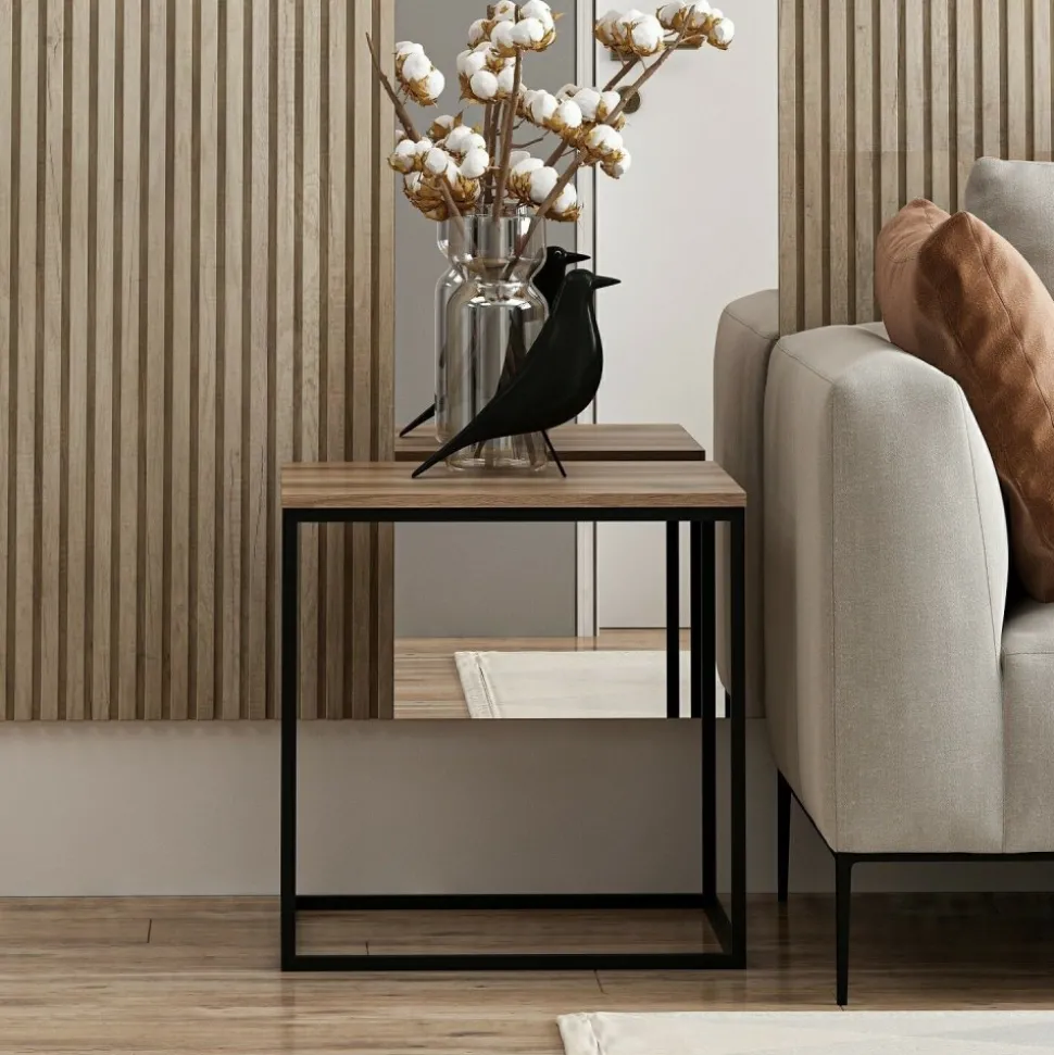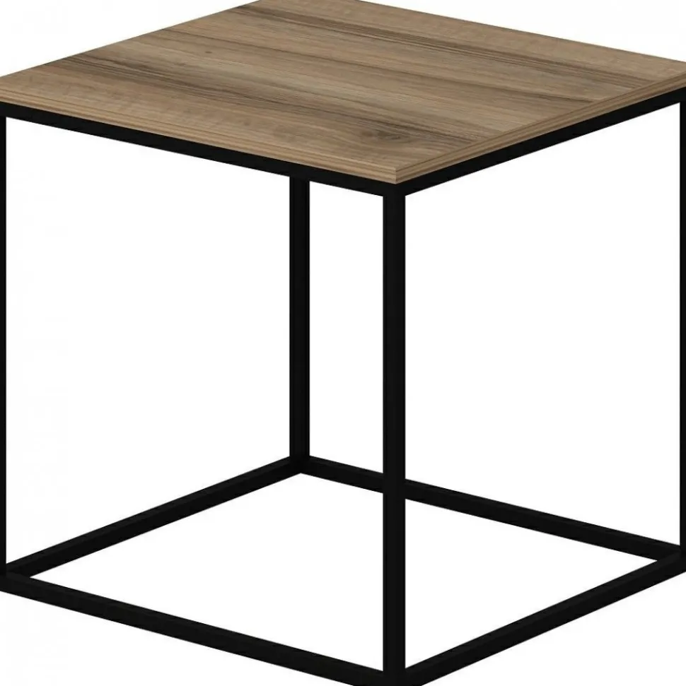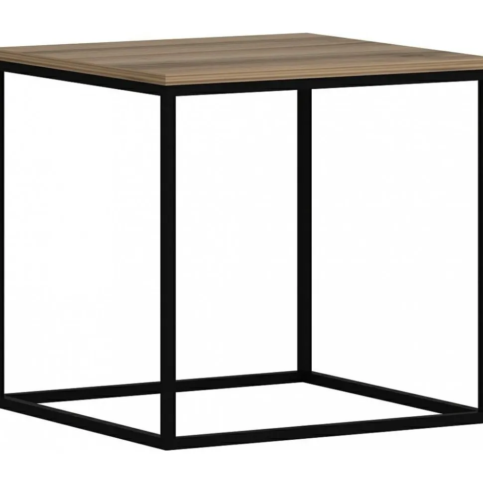 Soffbord av trä med underrede av metall.