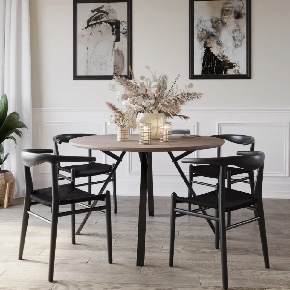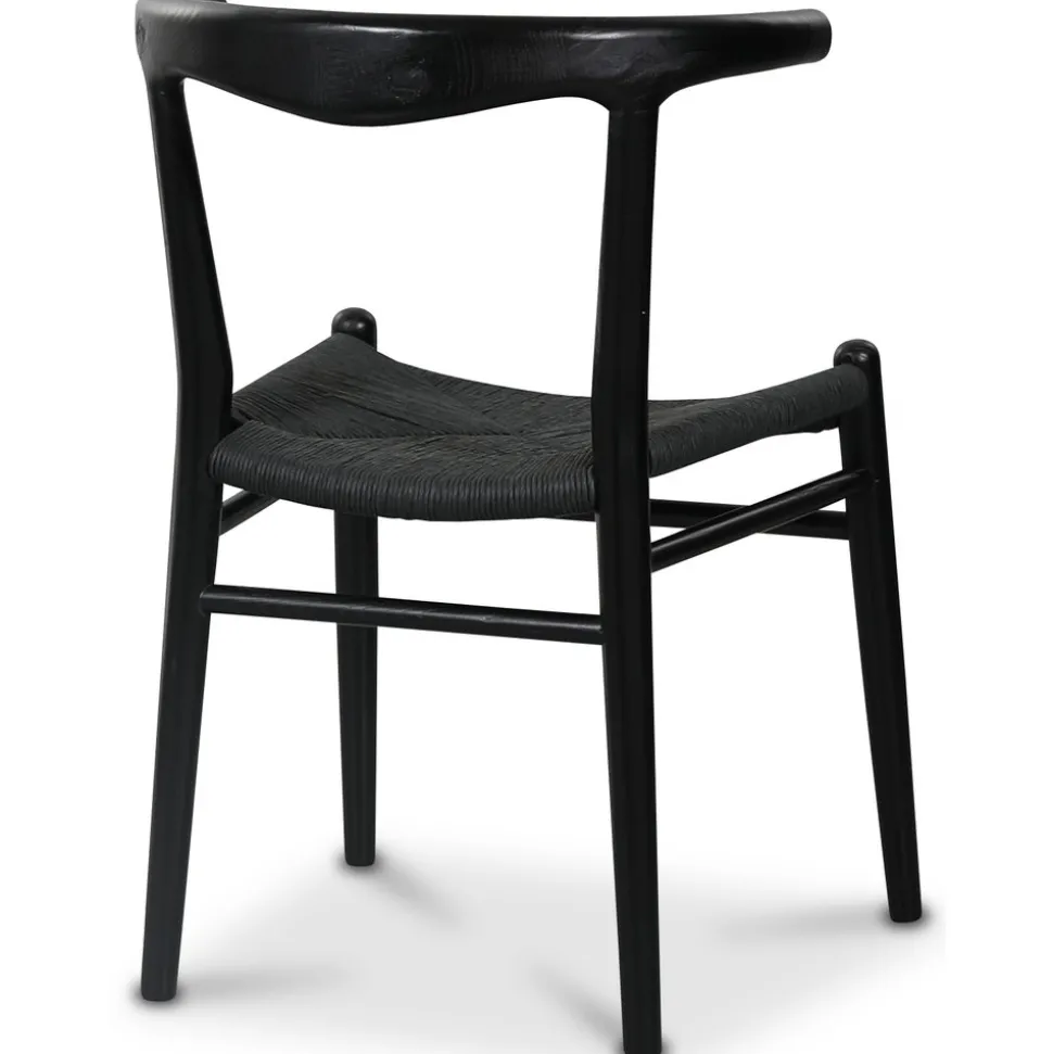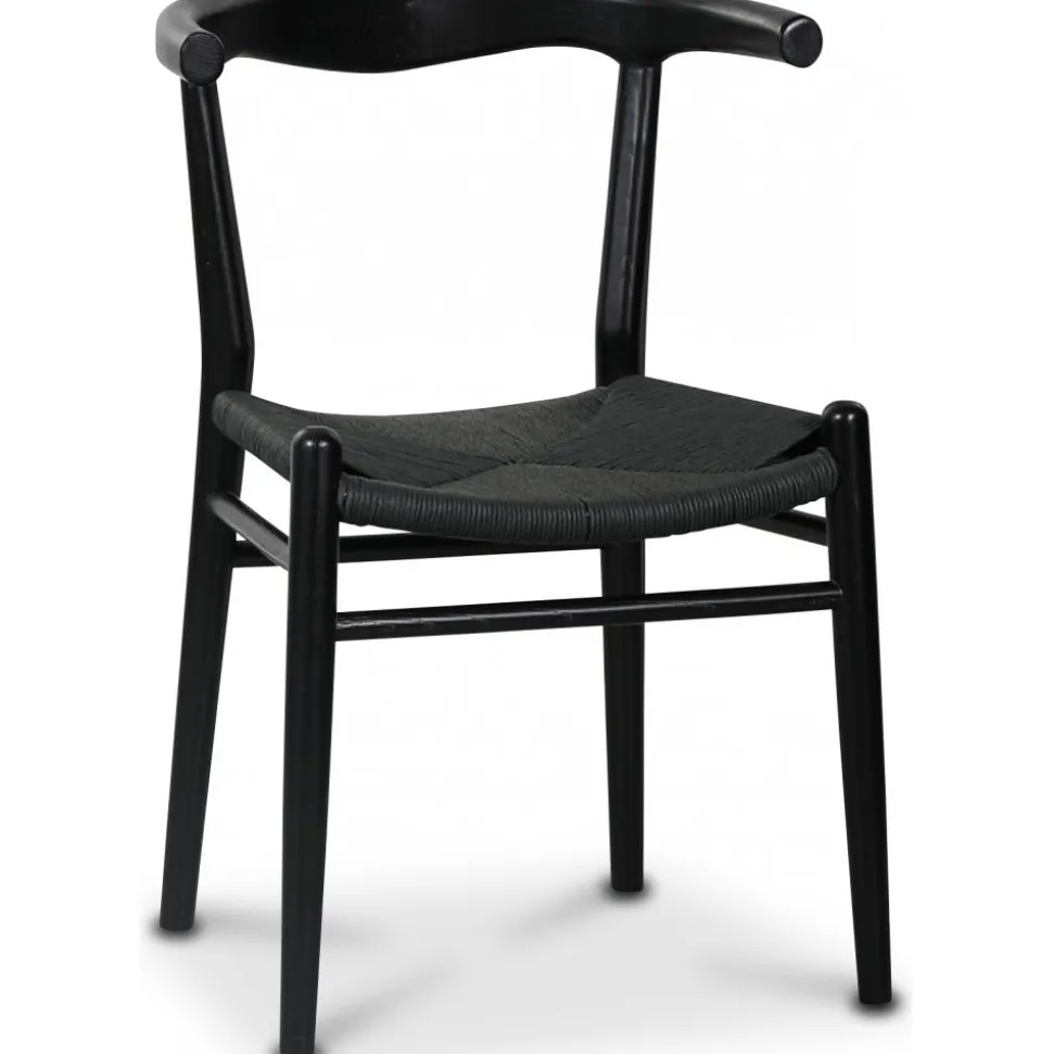 Klassisk i karm-modell i svartmålat massivt almträ med sits av flätat papperssnöre. Levereras monterad.