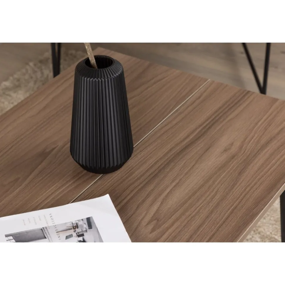 Ett designbord som är lika praktiskt som stilsäkert! Bethan har en trendig Skandinavisk design med en rektangulär bordsskiva i valnötsfärgad MDF och ett dekorativt underrede i svart stål. Bordet har en generös storlek och passar utmärkt framför den större soffgruppen.