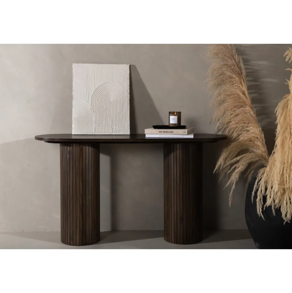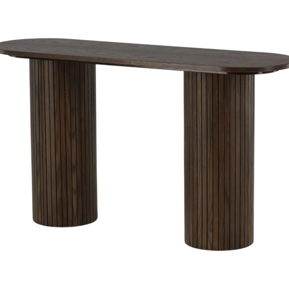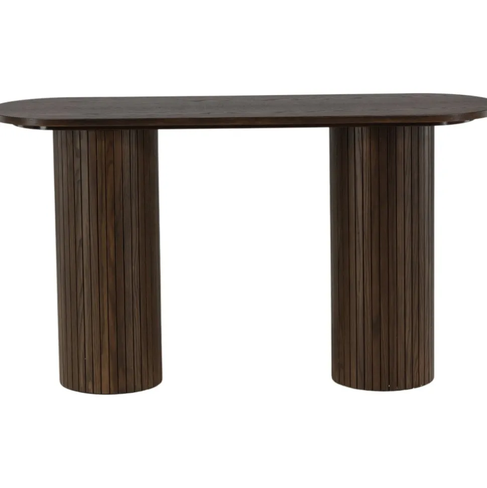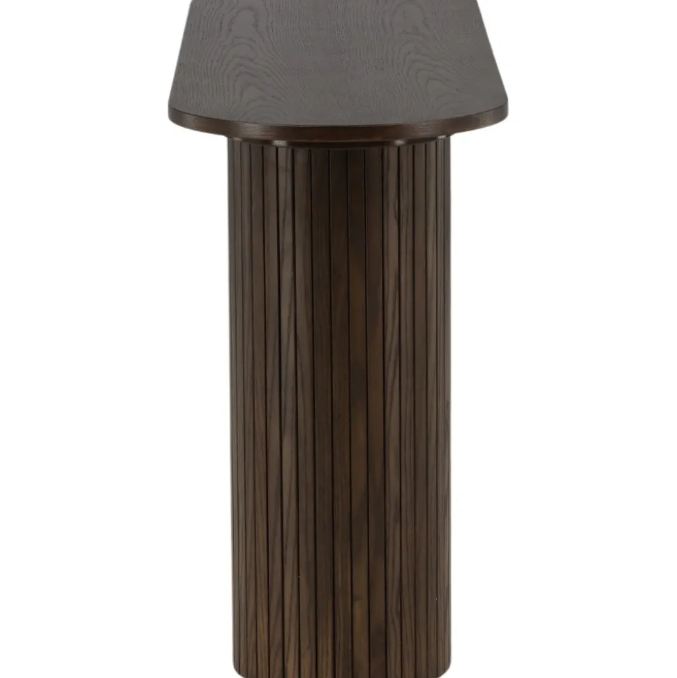 Ge vardagsrummet eller hallen ett modernt lyft med det här läckra avlastningsbordet. Bordet är genomgående tillverkat av MDF med faner i en mockafärgad finish och har en robust stomme med två cylinderformade ben i ribbad design. Den genomtänkta helheten med mjuka nordiska former skapar en varm och modern känsla till rummet. Bordet är lika snyggt som praktiskt och helt i linje med trenderna – ett perfekt tillskott till hemmet!