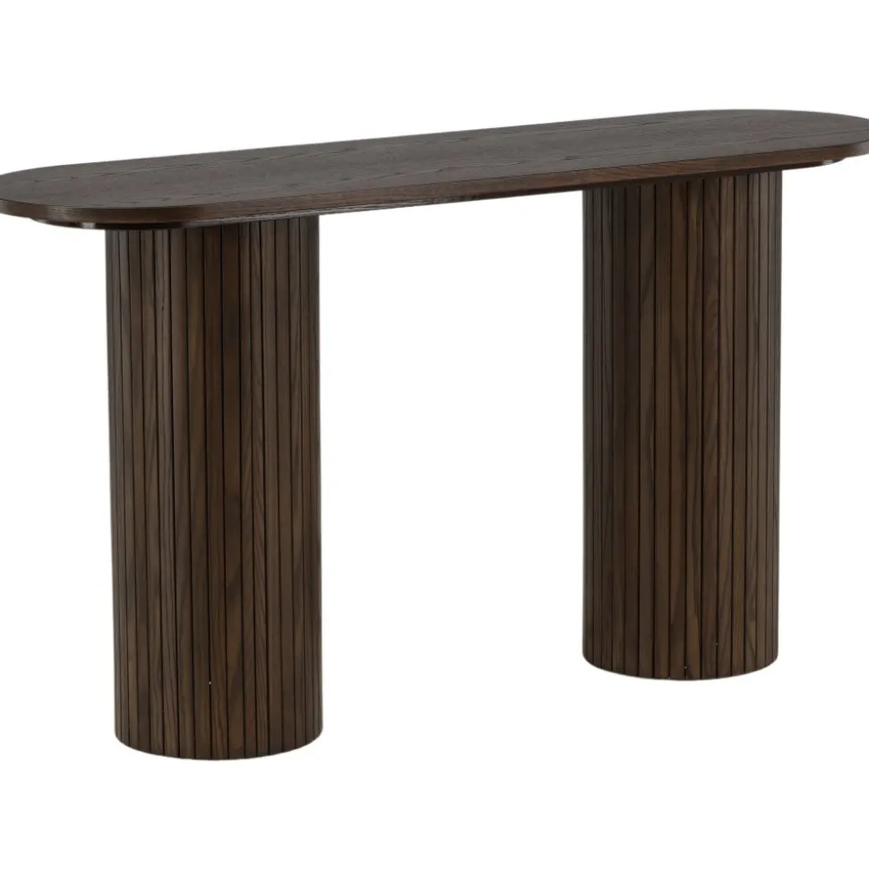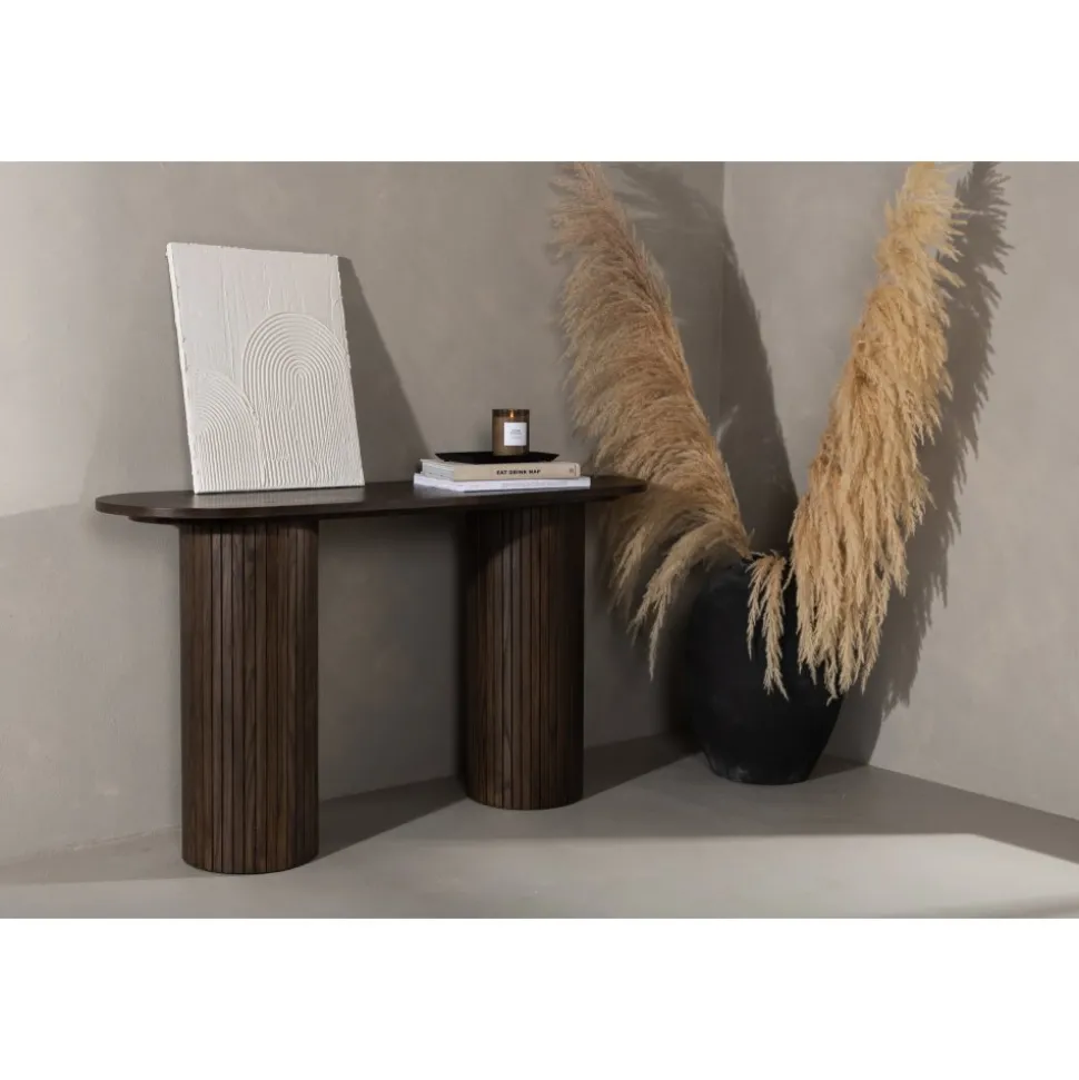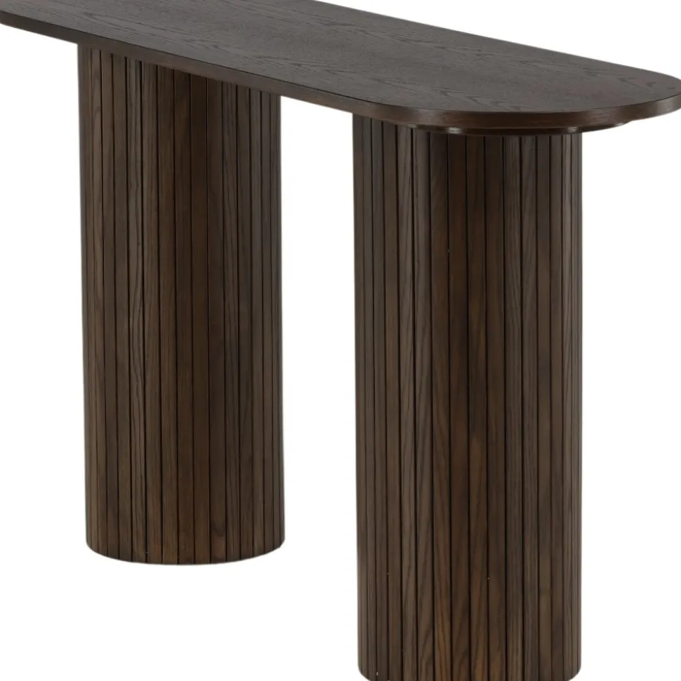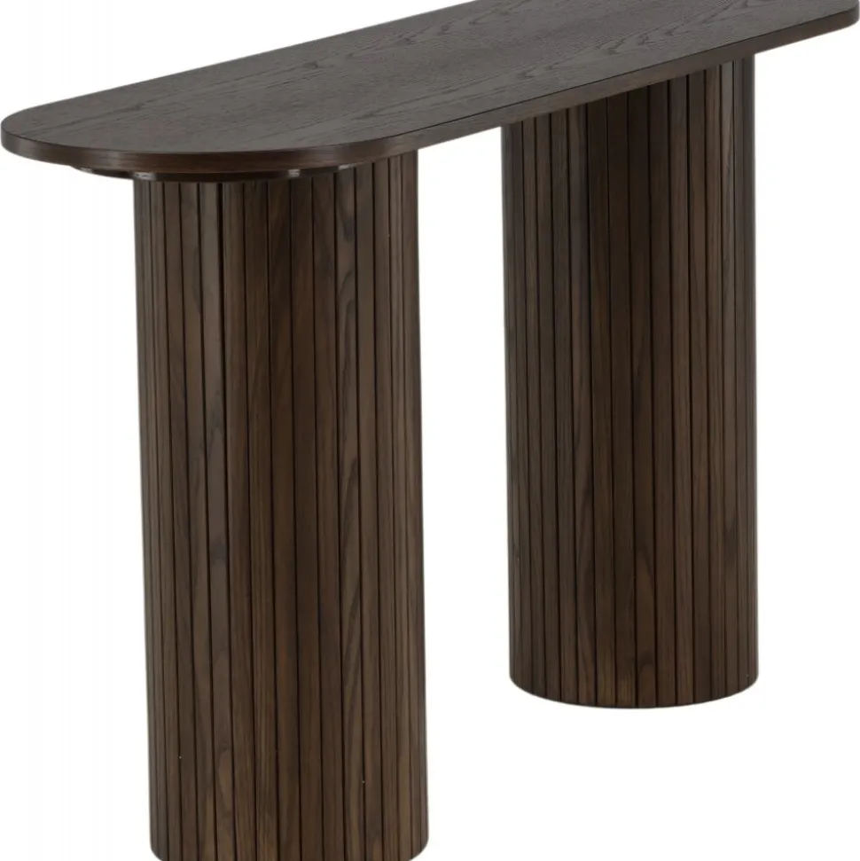 Ge vardagsrummet eller hallen ett modernt lyft med det här läckra avlastningsbordet. Bordet är genomgående tillverkat av MDF med faner i en mockafärgad finish och har en robust stomme med två cylinderformade ben i ribbad design. Den genomtänkta helheten med mjuka nordiska former skapar en varm och modern känsla till rummet. Bordet är lika snyggt som praktiskt och helt i linje med trenderna – ett perfekt tillskott till hemmet!