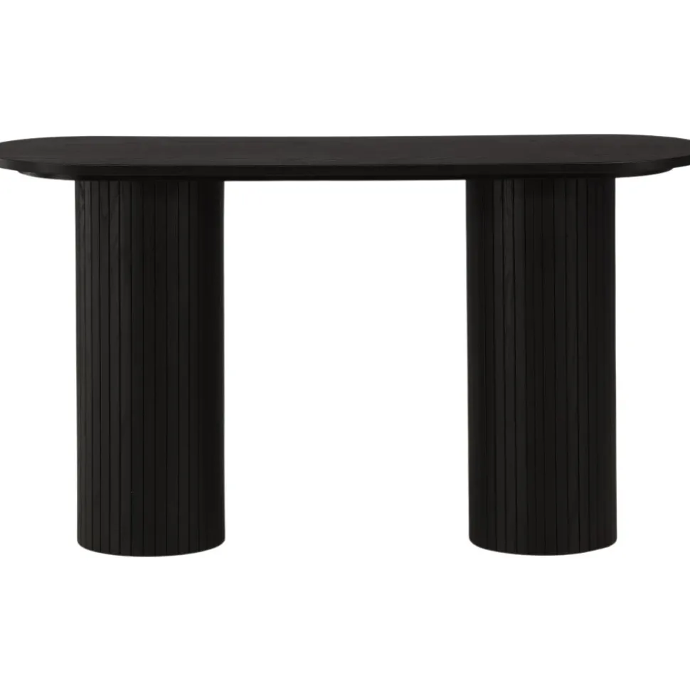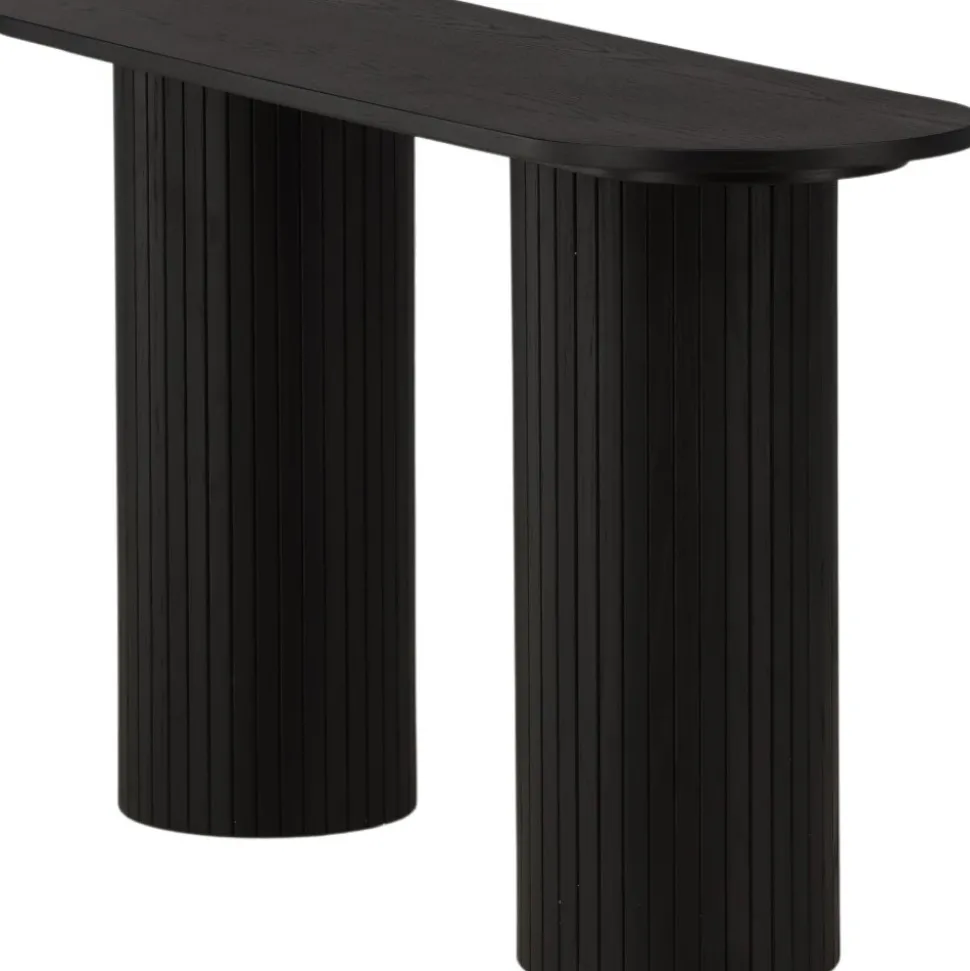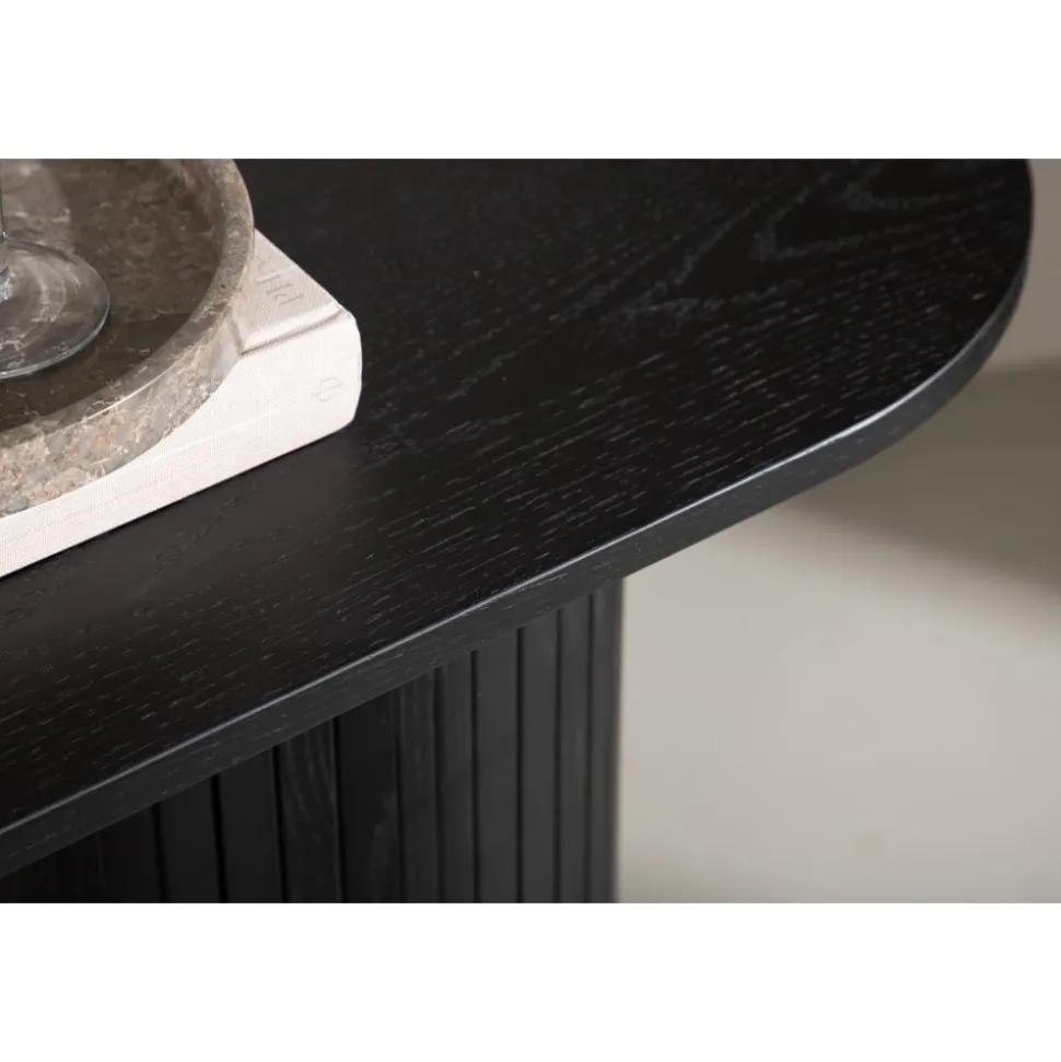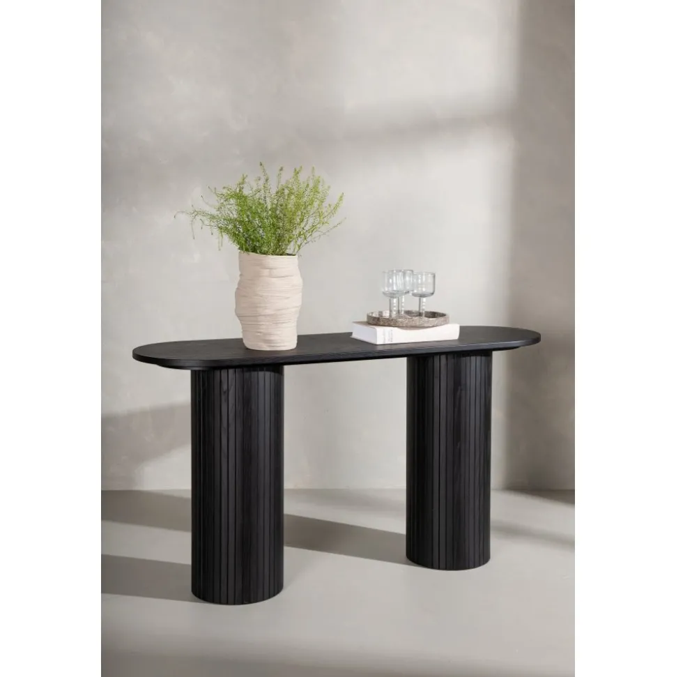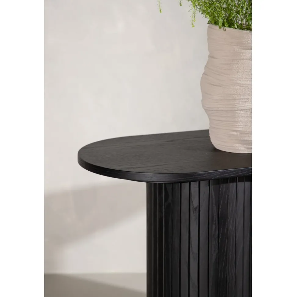 Ge vardagsrummet eller hallen ett modernt lyft med det här läckra avlastningsbordet. Bordet är genomgående tillverkat av MDF med faner i en svartputsad finish och har en robust stomme med två cylinderformade ben i ribbad design. Den genomtänkta helheten med mjuka nordiska former skapar en varm och modern känsla till rummet. Bordet är lika snyggt som praktiskt och helt i linje med trenderna – ett perfekt tillskott till hemmet!