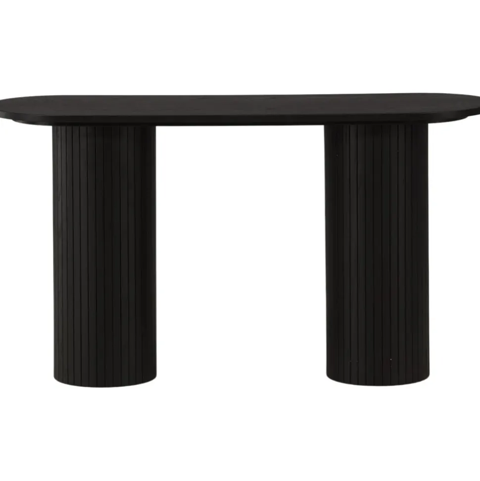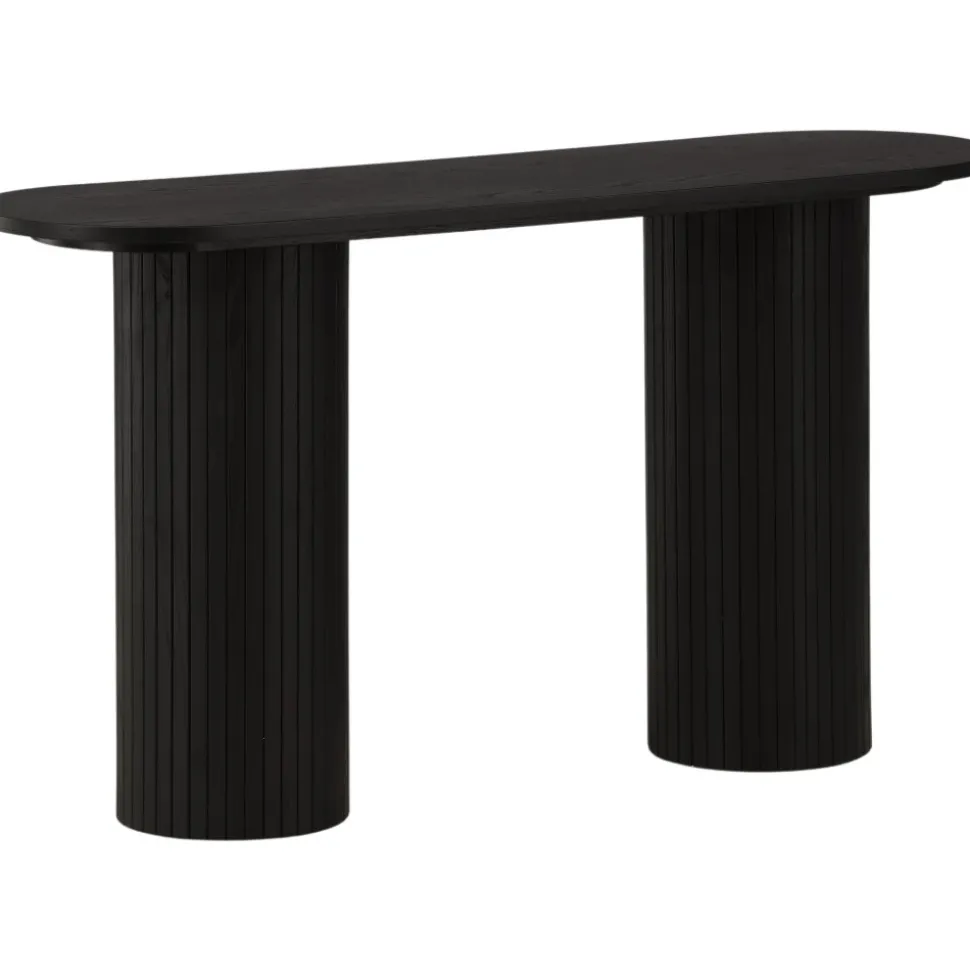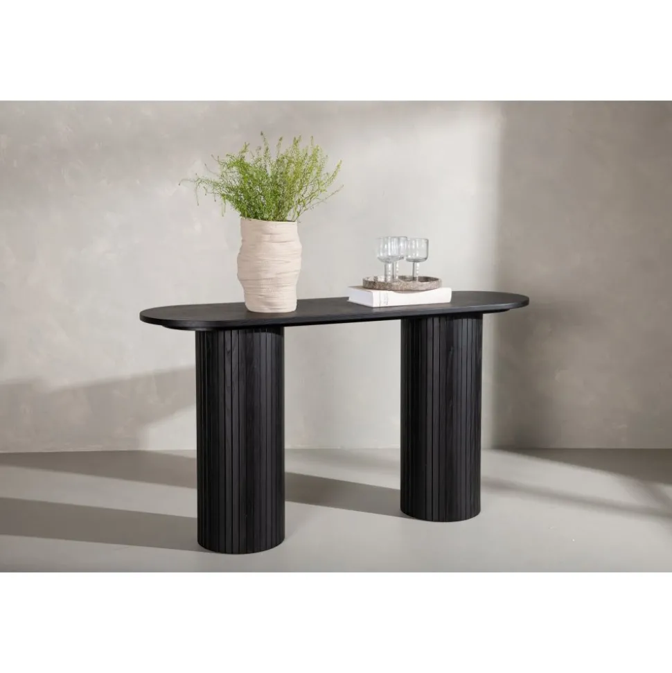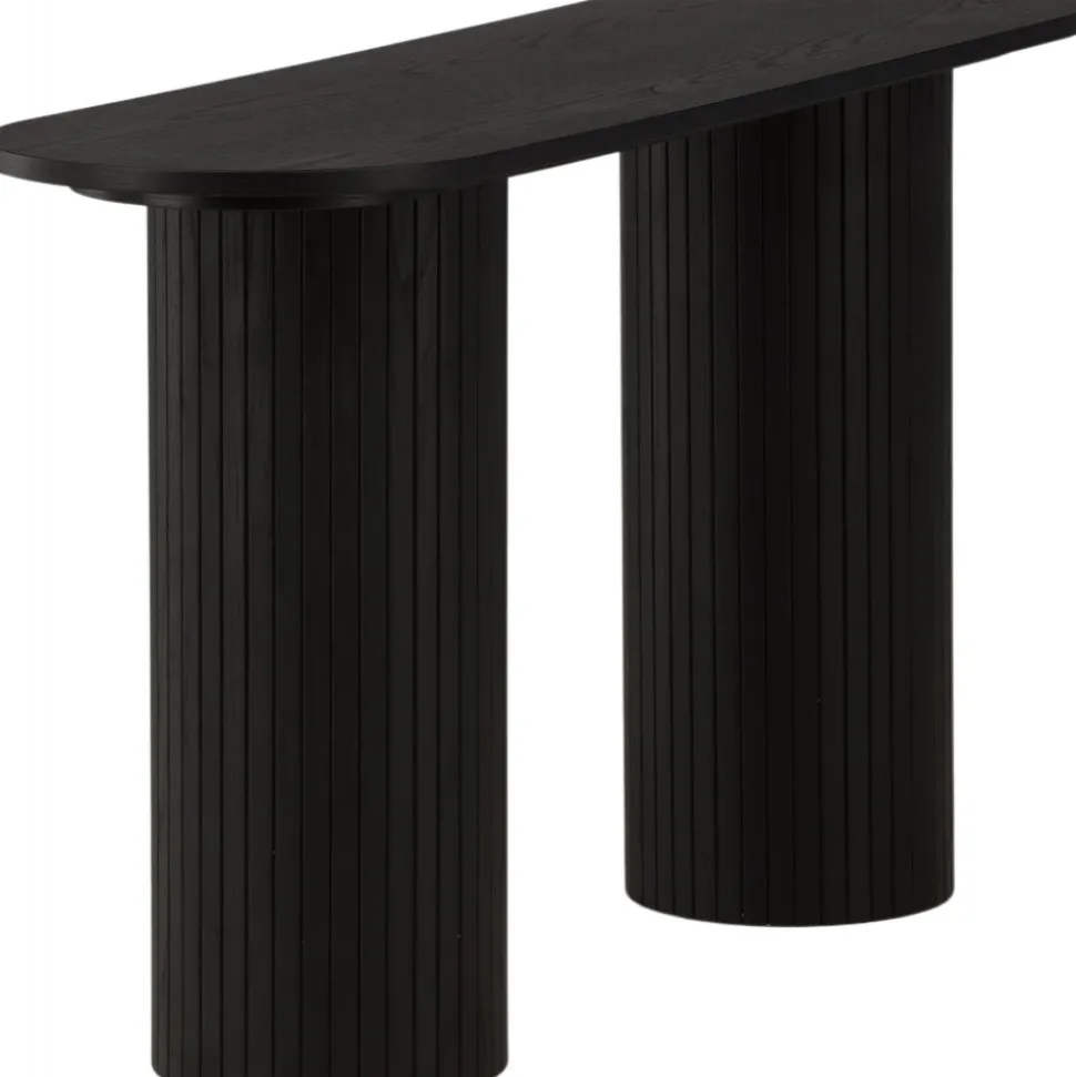Ge vardagsrummet eller hallen ett modernt lyft med det här läckra avlastningsbordet. Bordet är genomgående tillverkat av MDF med faner i en svartputsad finish och har en robust stomme med två cylinderformade ben i ribbad design. Den genomtänkta helheten med mjuka nordiska former skapar en varm och modern känsla till rummet. Bordet är lika snyggt som praktiskt och helt i linje med trenderna – ett perfekt tillskott till hemmet!