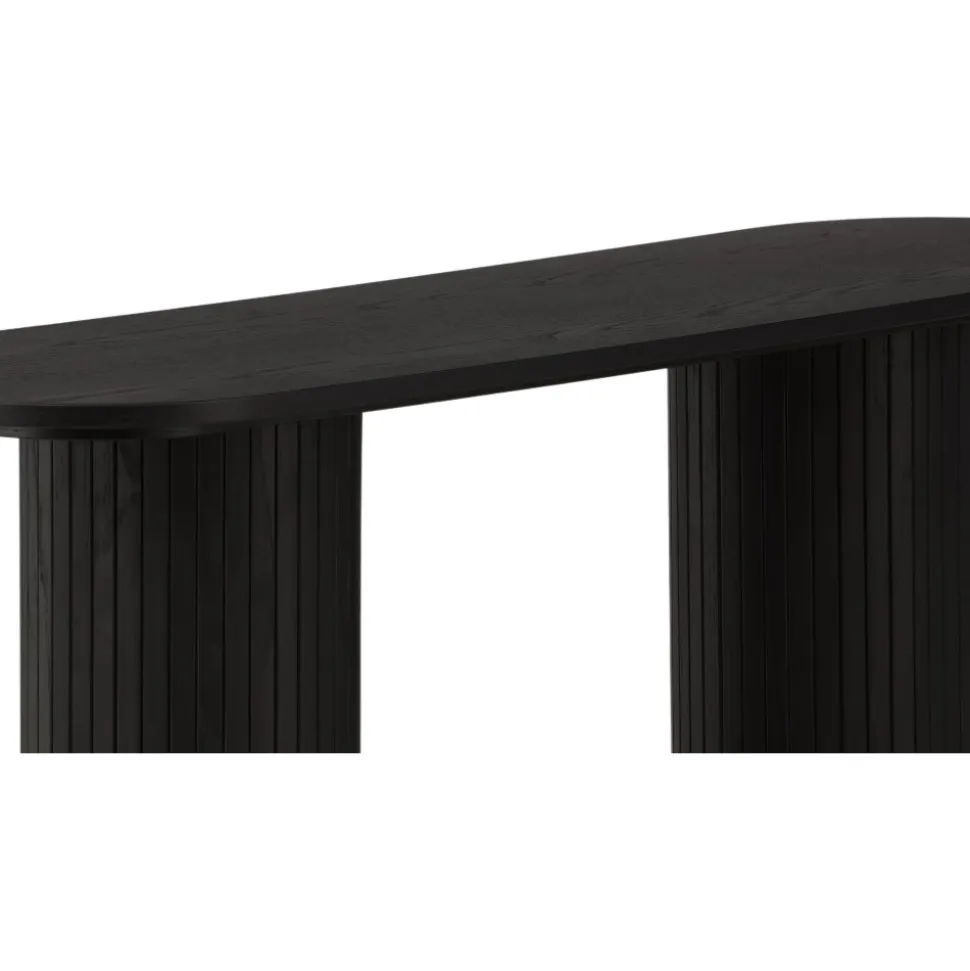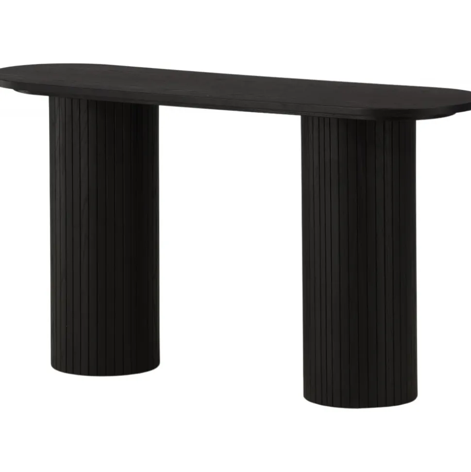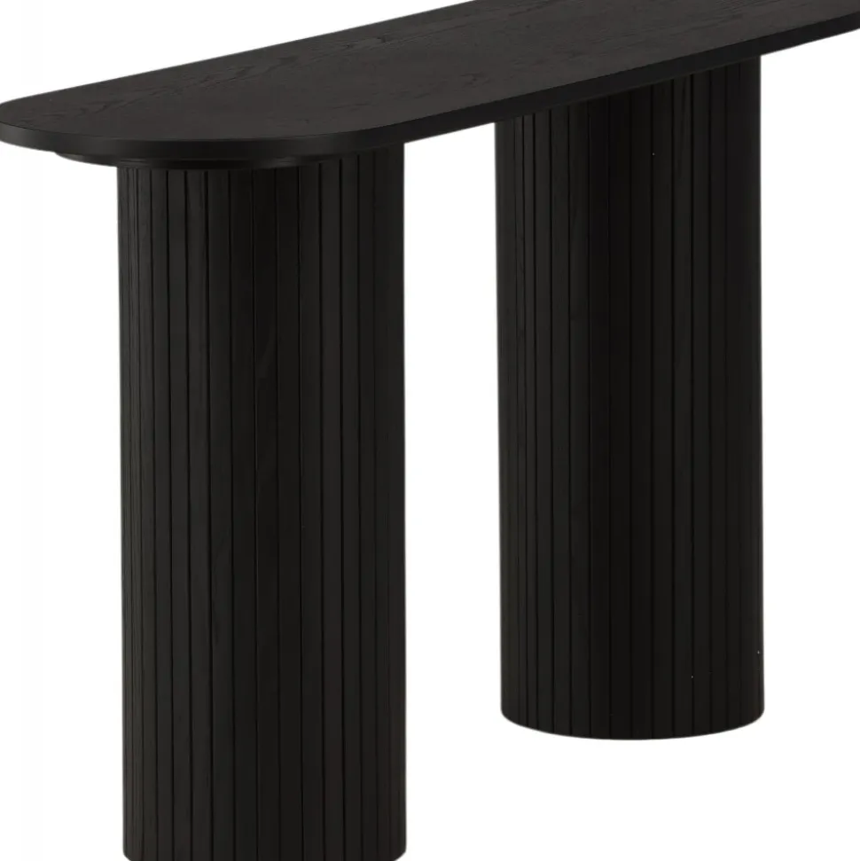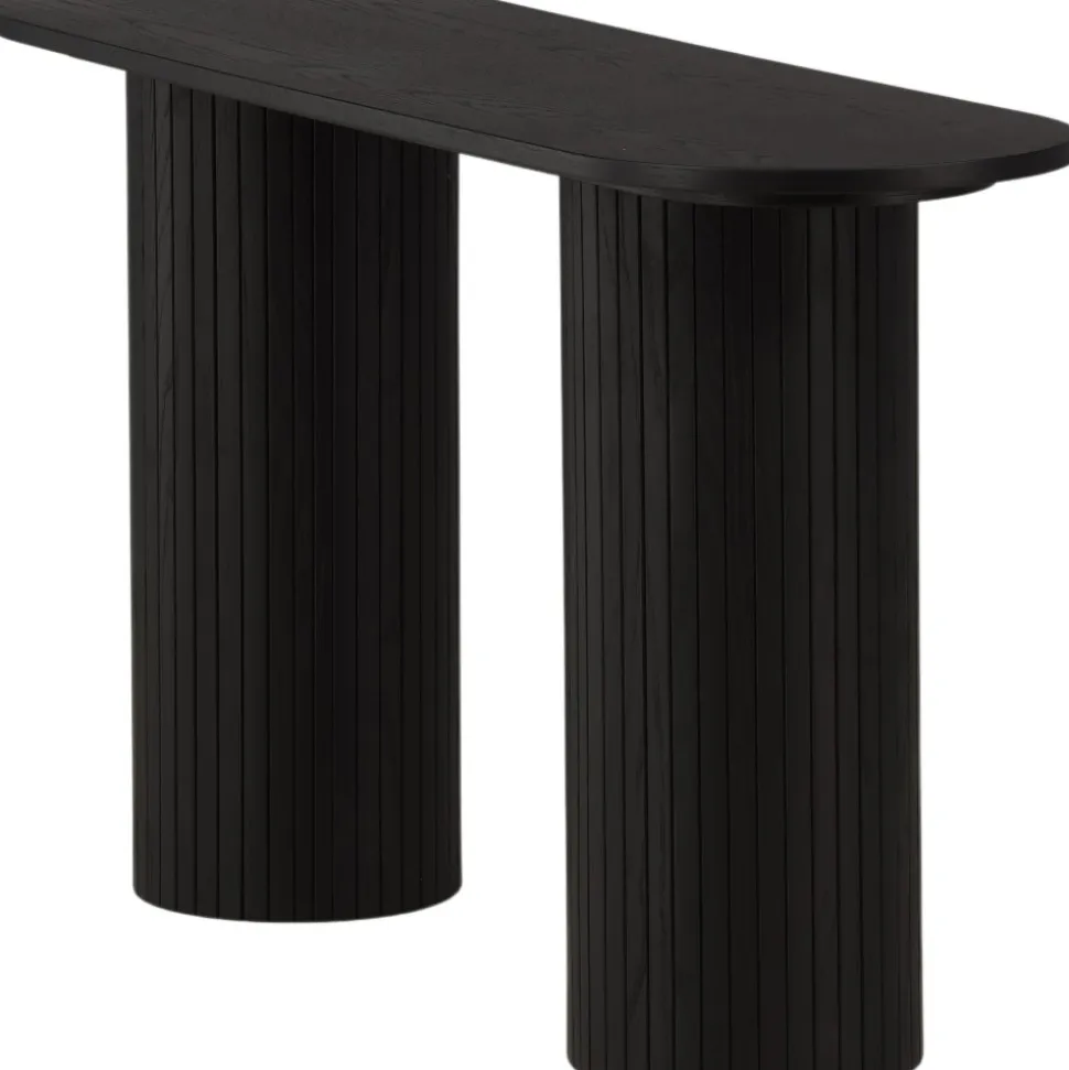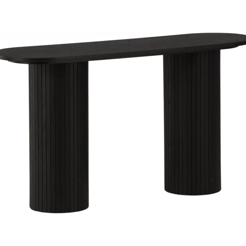 Ge vardagsrummet eller hallen ett modernt lyft med det här läckra avlastningsbordet. Bordet är genomgående tillverkat av MDF med faner i en svartputsad finish och har en robust stomme med två cylinderformade ben i ribbad design. Den genomtänkta helheten med mjuka nordiska former skapar en varm och modern känsla till rummet. Bordet är lika snyggt som praktiskt och helt i linje med trenderna – ett perfekt tillskott till hemmet!