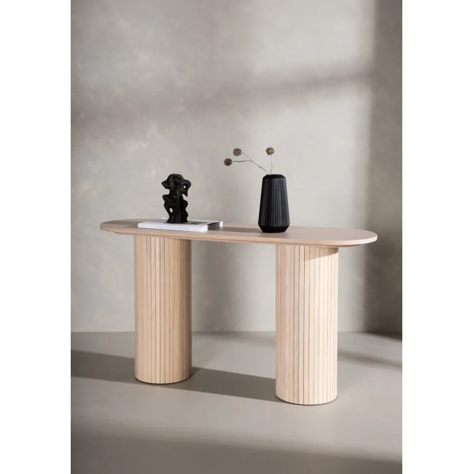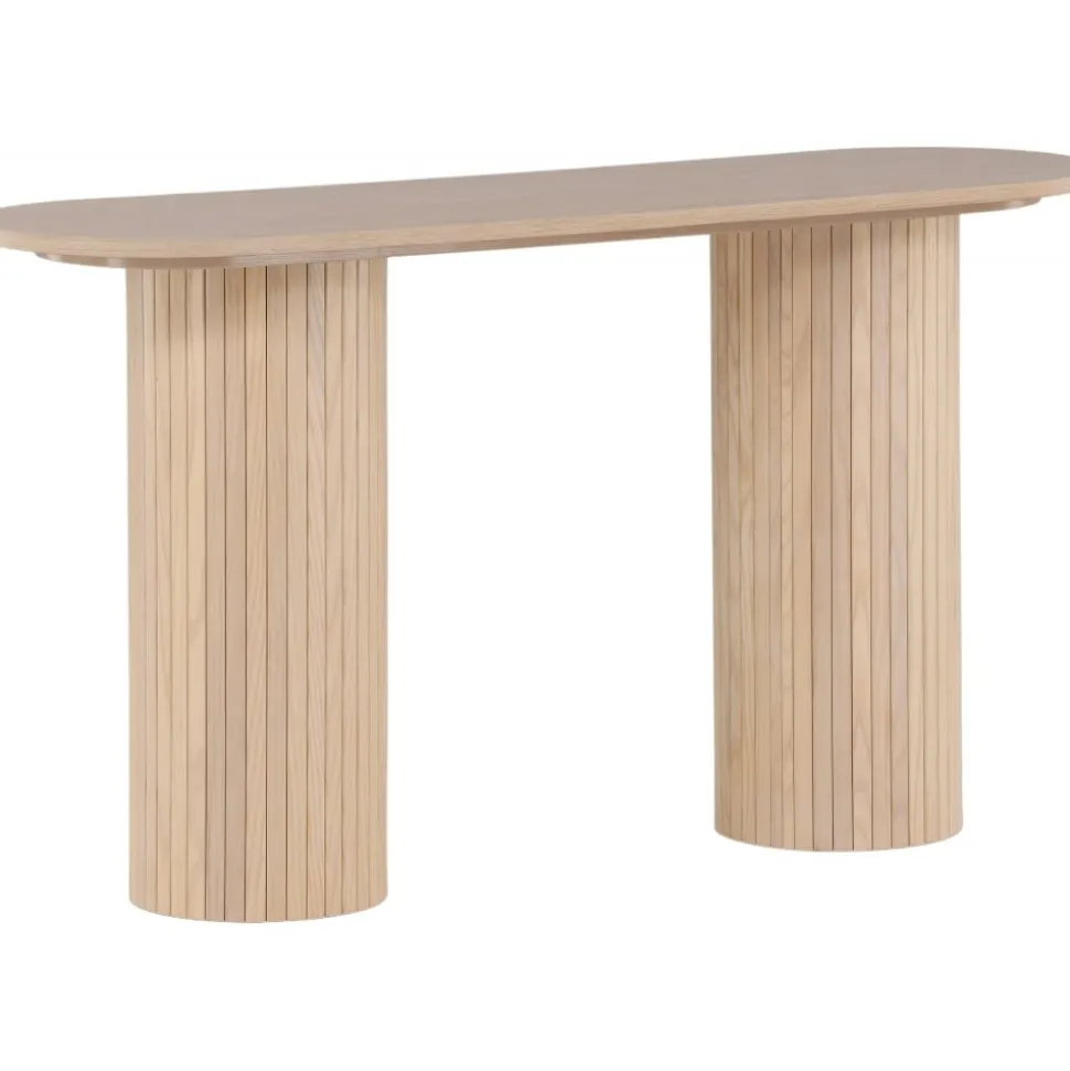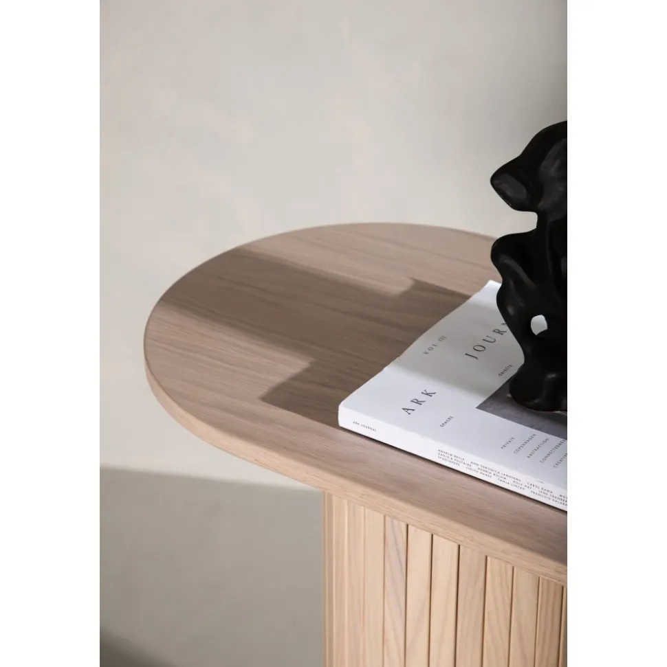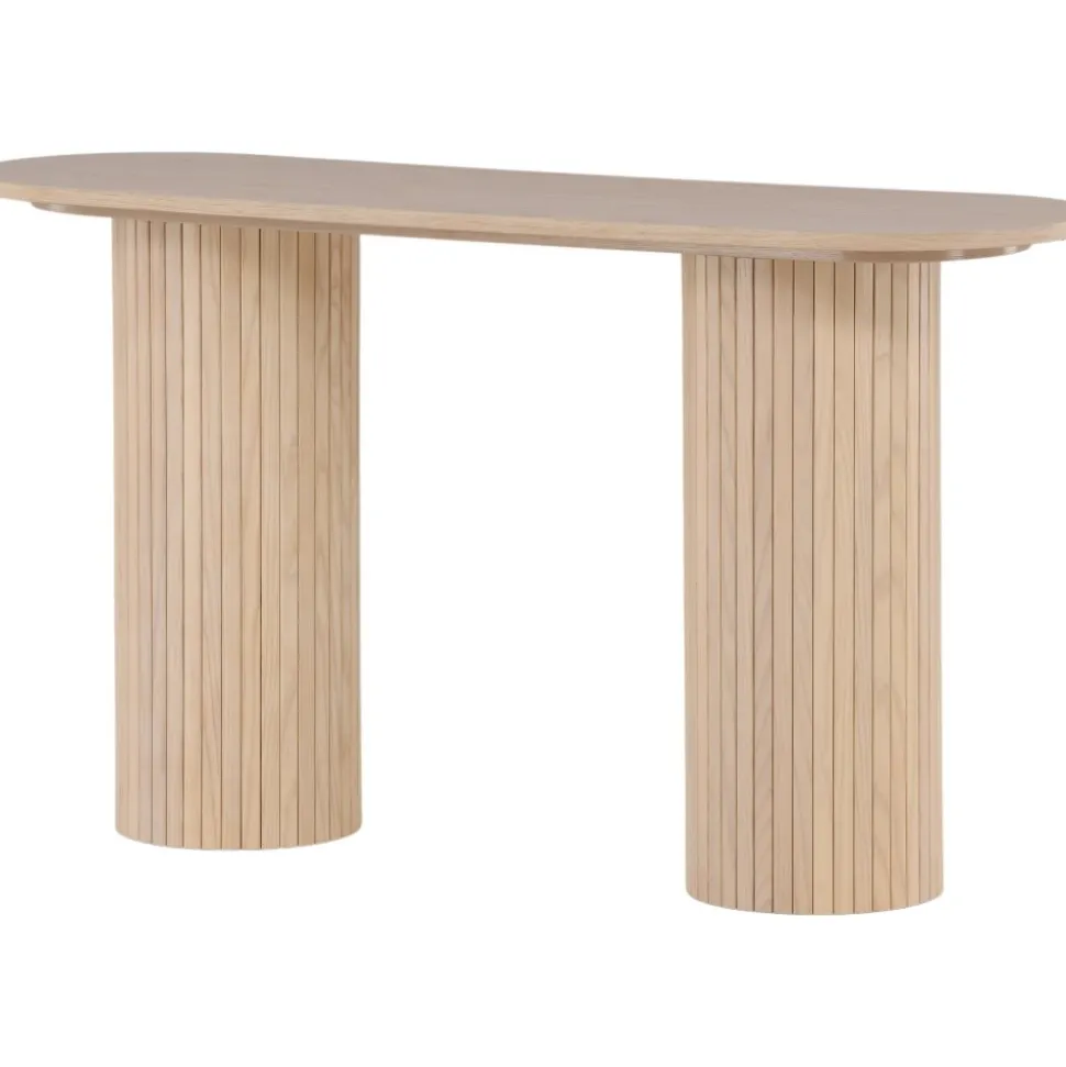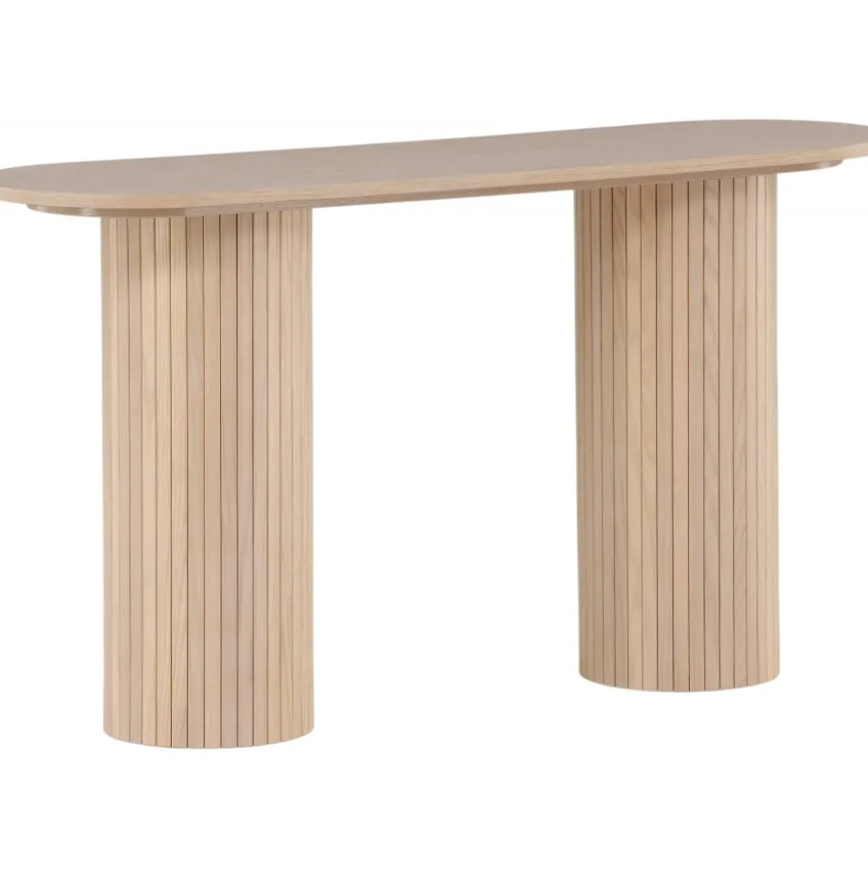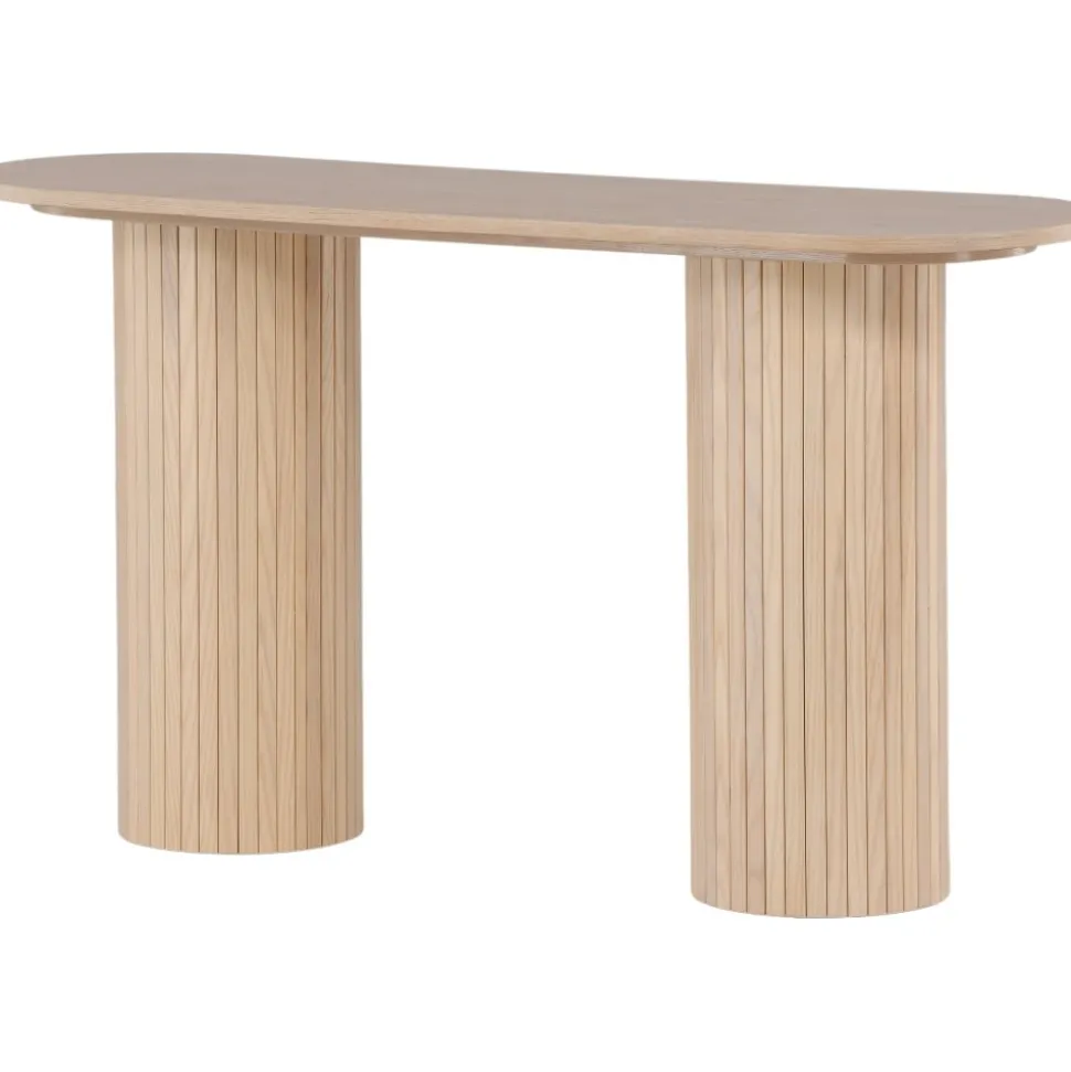 Ge vardagsrummet eller hallen ett modernt lyft med det här läckra avlastningsbordet. Bordet är genomgående tillverkat av MDF med faner i en vitputsad finish och har en robust stomme med två cylinderformade ben i ribbad design. Den genomtänkta helheten med mjuka nordiska former skapar en varm och modern känsla till rummet. Bordet är lika snyggt som praktiskt och helt i linje med trenderna – ett perfekt tillskott till hemmet!