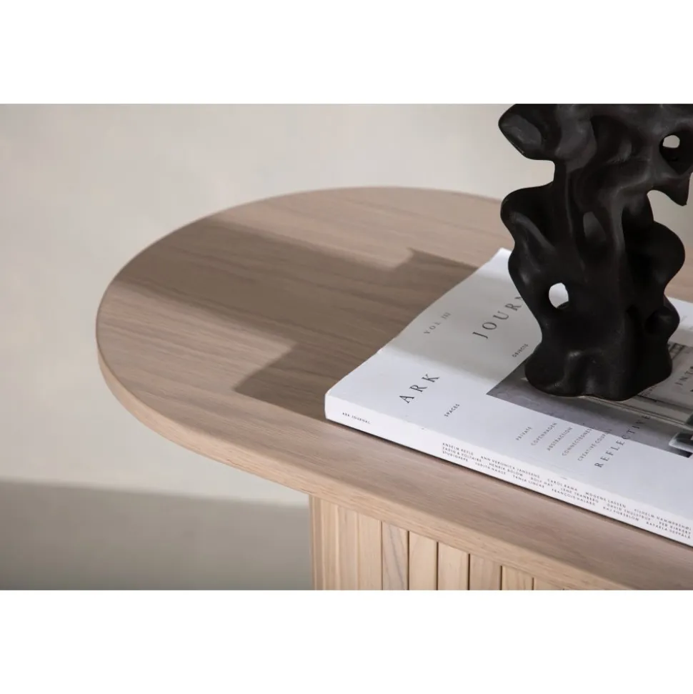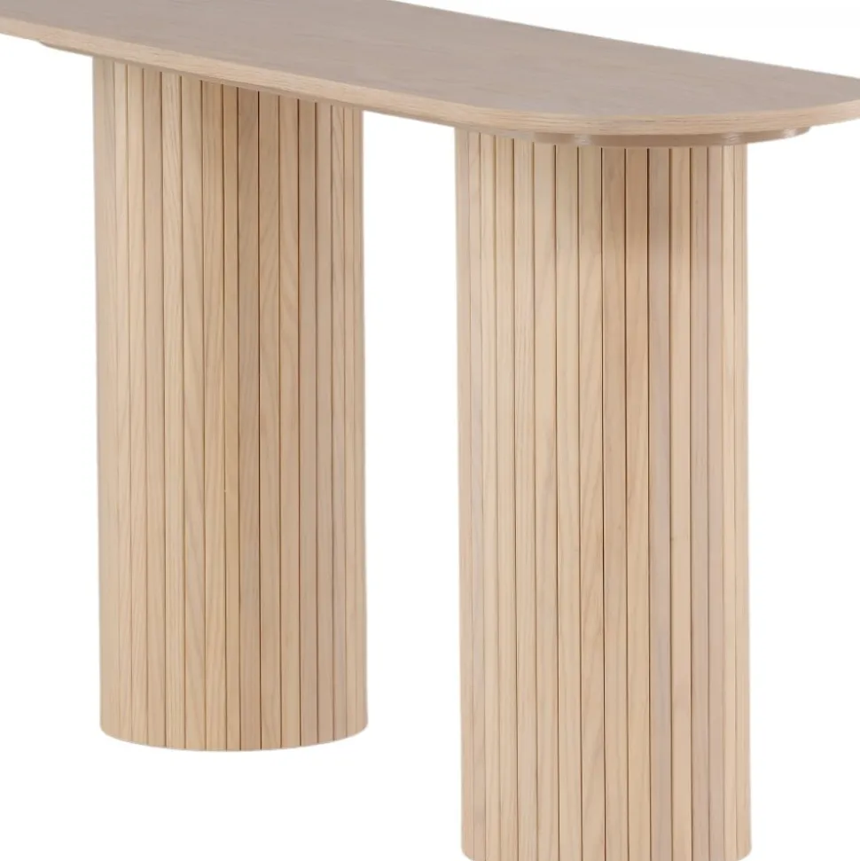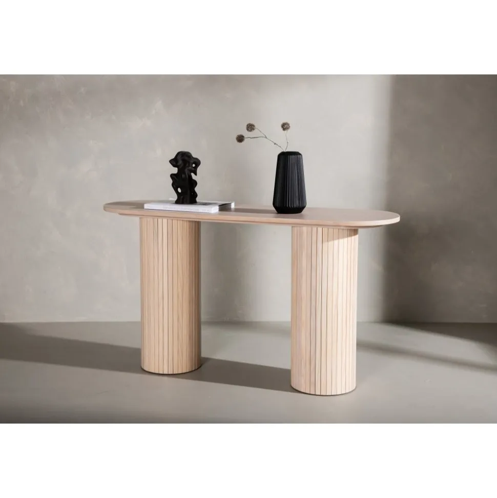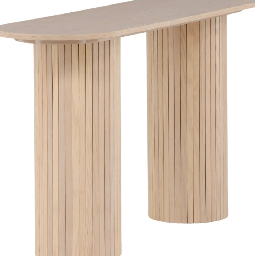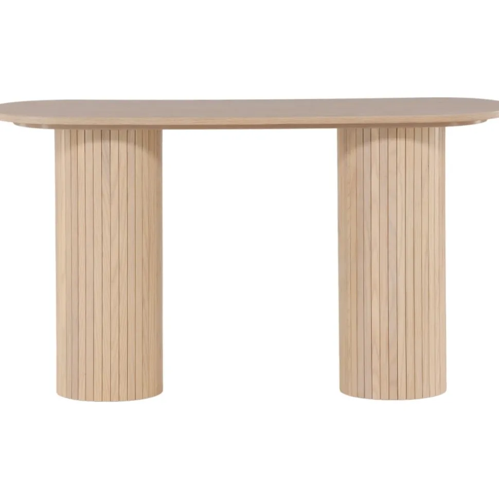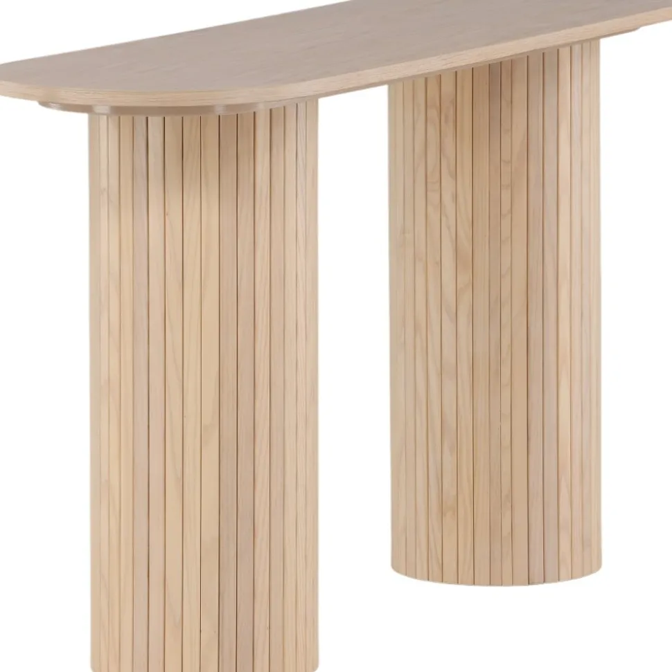 Ge vardagsrummet eller hallen ett modernt lyft med det här läckra avlastningsbordet. Bordet är genomgående tillverkat av MDF med faner i en vitputsad finish och har en robust stomme med två cylinderformade ben i ribbad design. Den genomtänkta helheten med mjuka nordiska former skapar en varm och modern känsla till rummet. Bordet är lika snyggt som praktiskt och helt i linje med trenderna – ett perfekt tillskott till hemmet!