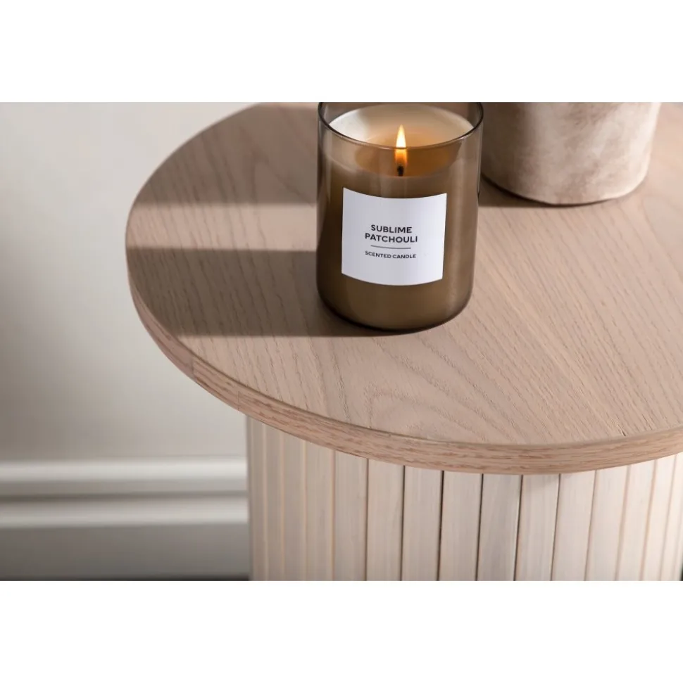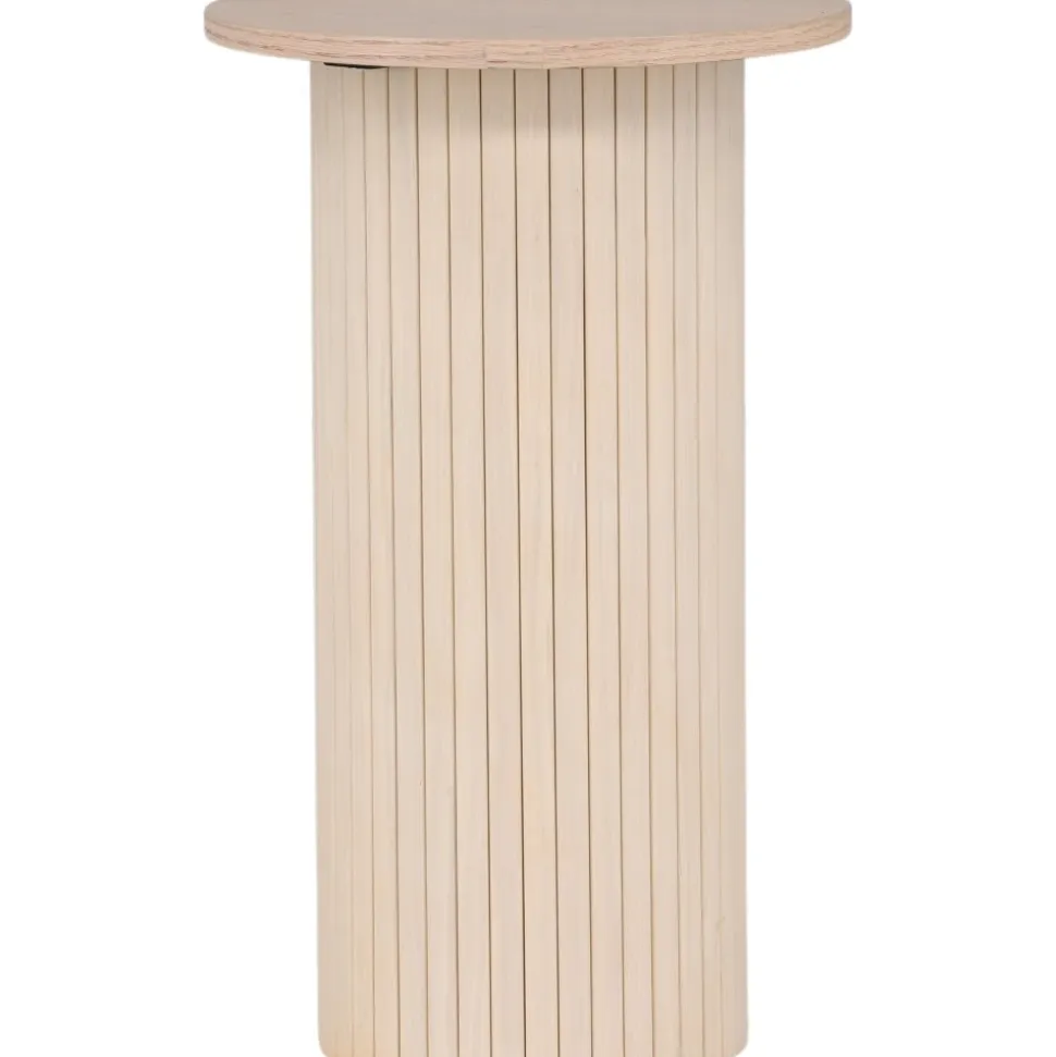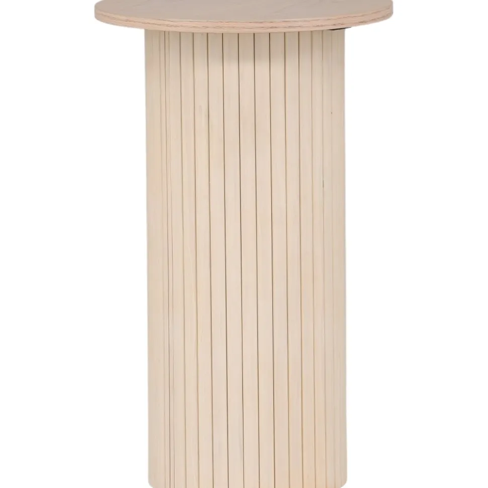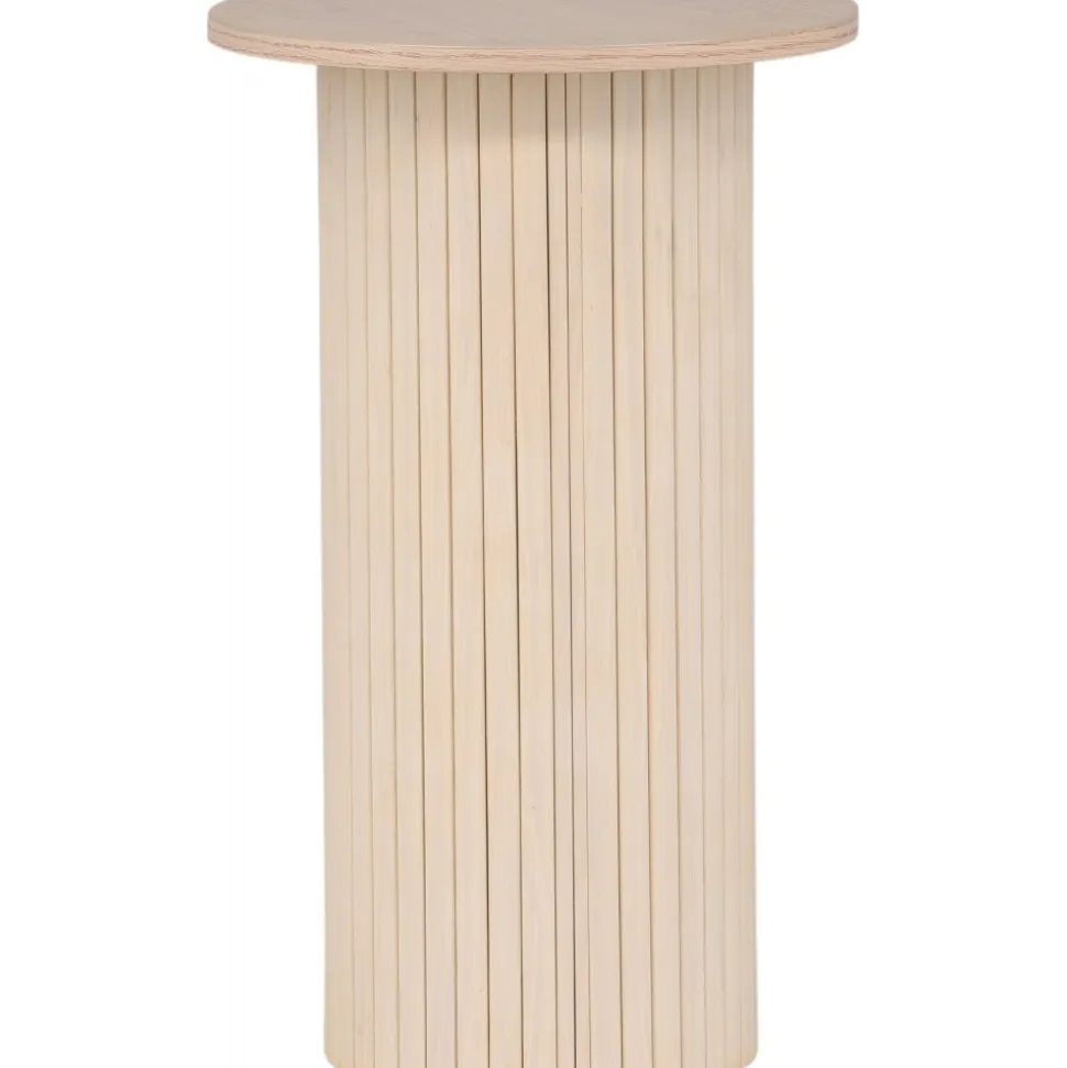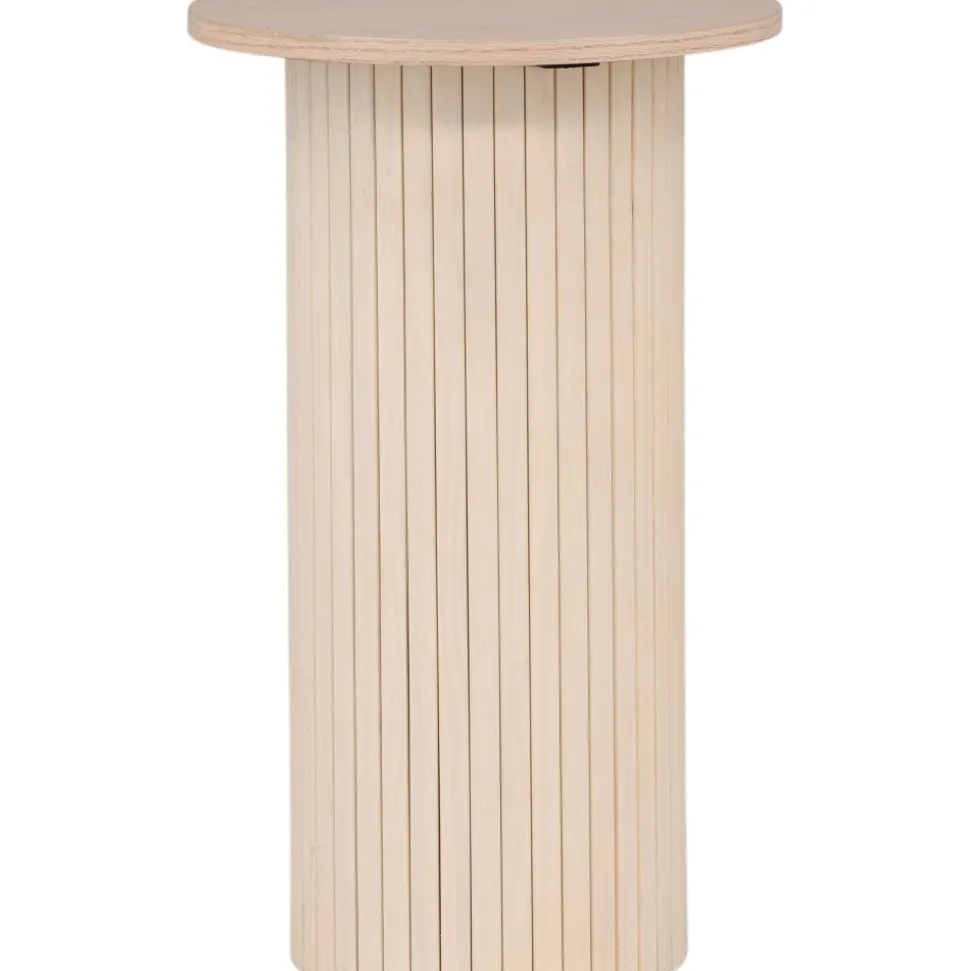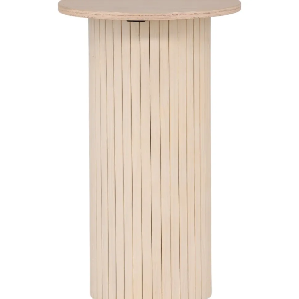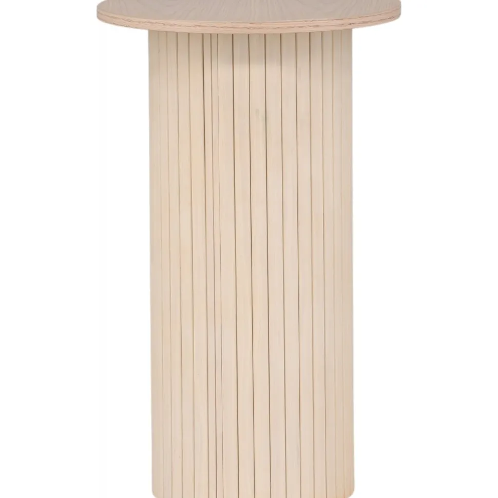 Stilrent som är lika smart som iögonfallande med sin trendsäkra, skandinaviska design och många användningsområden. Det här läckra sidobordet är genomgående tillverkat i MDF med fanér i en vittvättad finish. Bordsskivan är tunn i en rund utformning och stommen är robust med cylinderformat ben i ribbad design. Den genomtänkta helheten med mjuka nordiska former skapar en varm och modern känsla till rummet. Använd som sidobord, avlastningsyta eller piedestal – bara fantasin sätter gränser!