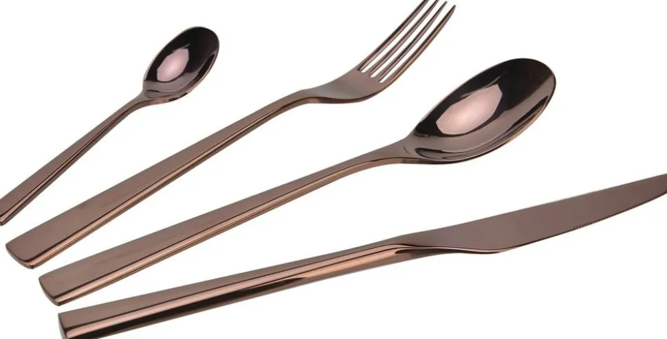 Snyggt kopparfärgat i 24 delar. Tillverkat av högkvalitativt 18/8 och 13/0 stål.