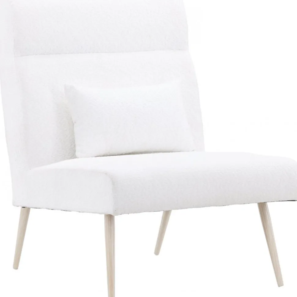 Stilrent, minimalistiskt och inbjudande! Den här vita teddyfåtöljen från serien Bloom har allt du drömmer om i en fåtölj. Den skandinaviska designen är genomtänkt med en följsam sits med inbyggt nackstöd och kudde till ryggslutet för extra bekvämlighet. Den helklädda klädseln är i lurvigt, vitt teddytyg och benen är lätt utsvängda i vitttvättat trä. Det generösa sittdjupet och breda sitsen ger dig en bekväm som du gärna slår dig ner i efter en lång dag. Placera intill soffgruppen för att skapa extra sittplats eller ensam som stilikon för att få ett modernt blickfång i ditt hem. Bara fantasin sätter gränser och det är du som väljer!