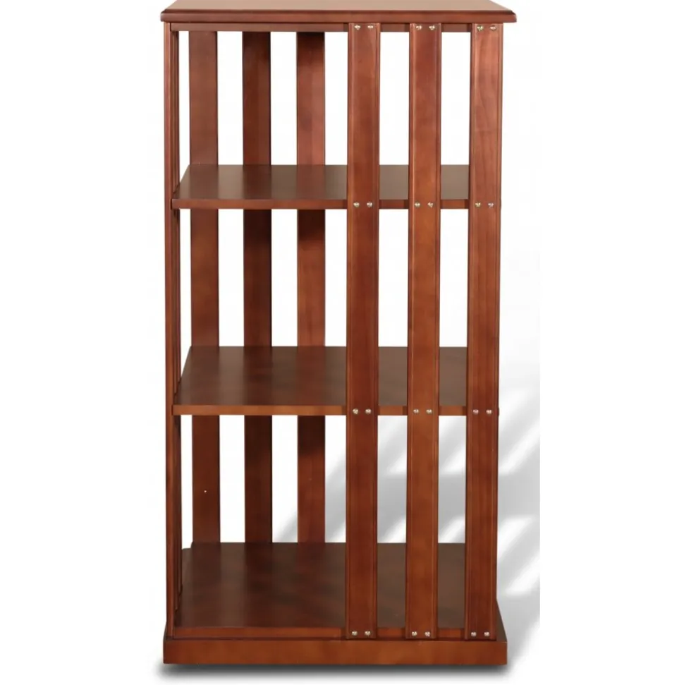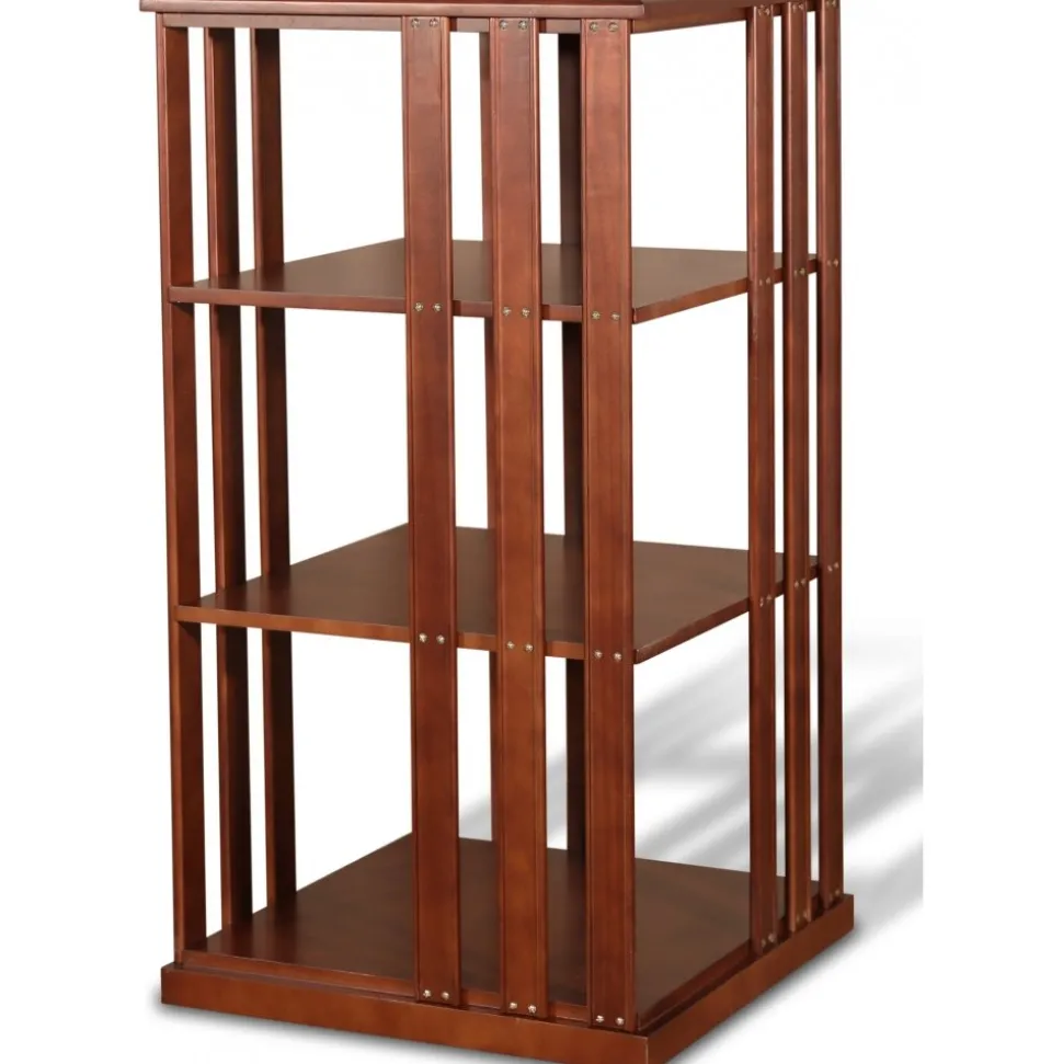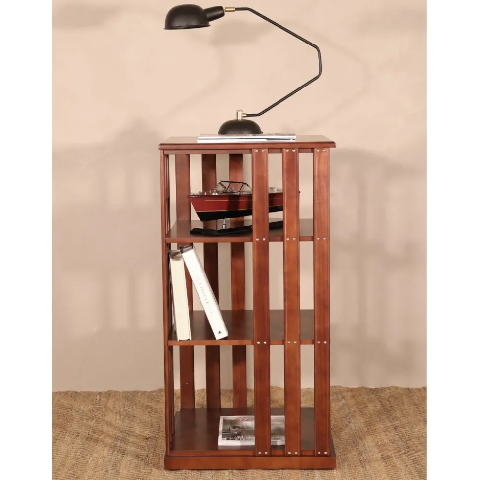 En klassisk och tidlös karusellhylla eller ”boksnurra” som den också kallas för. Bokhyllan har 3 hyllplan för praktisk förvaring och hela hyllan är tillverkad av av trä i mahogny finish.