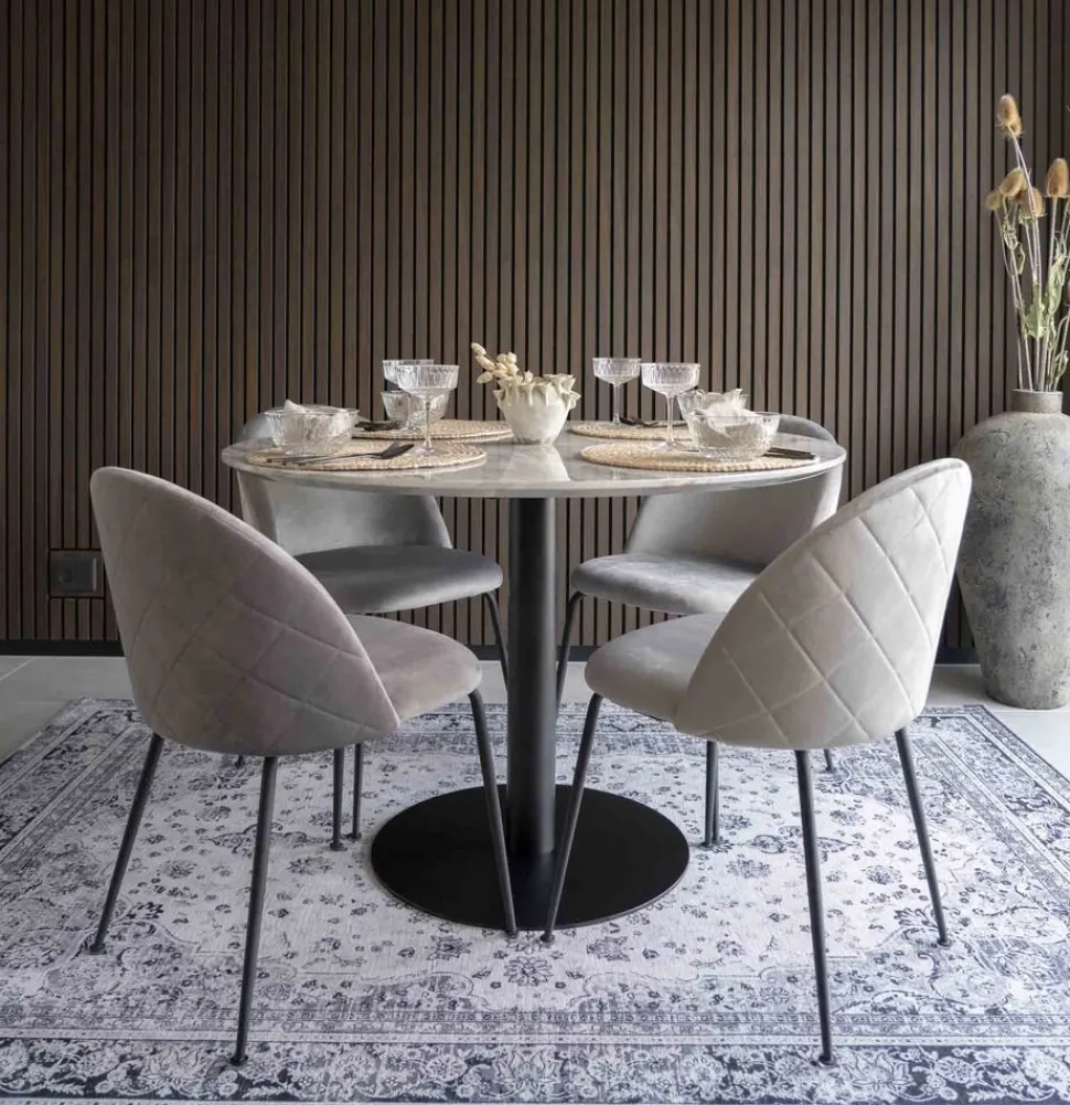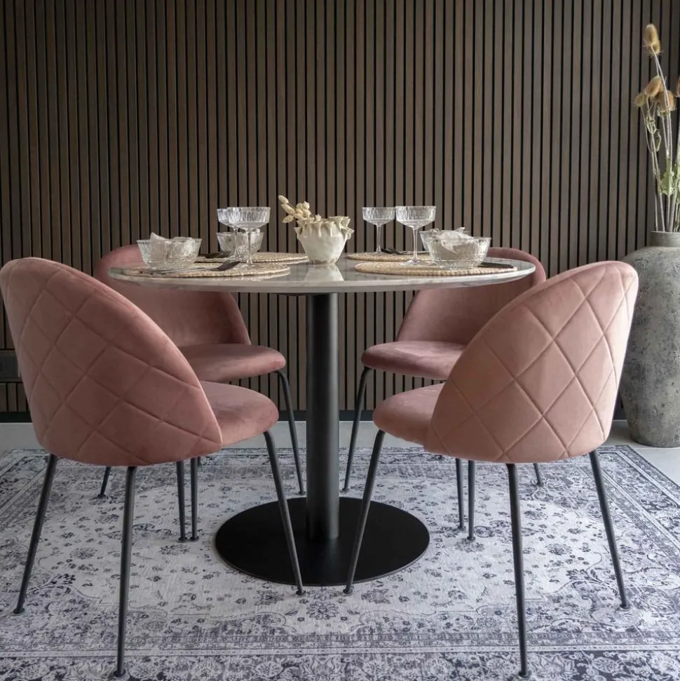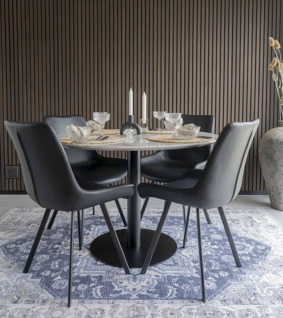 Matbord med bordsskiva i marmor imitation svarta ben.