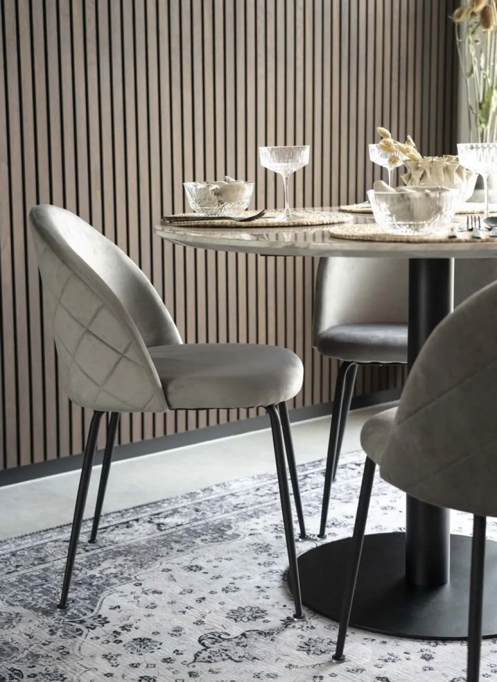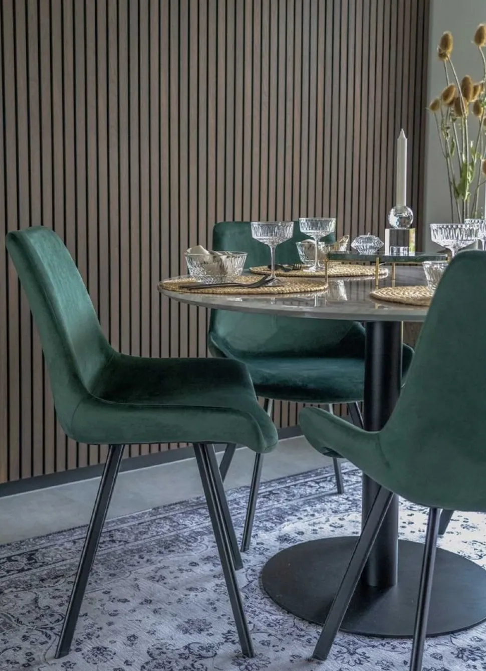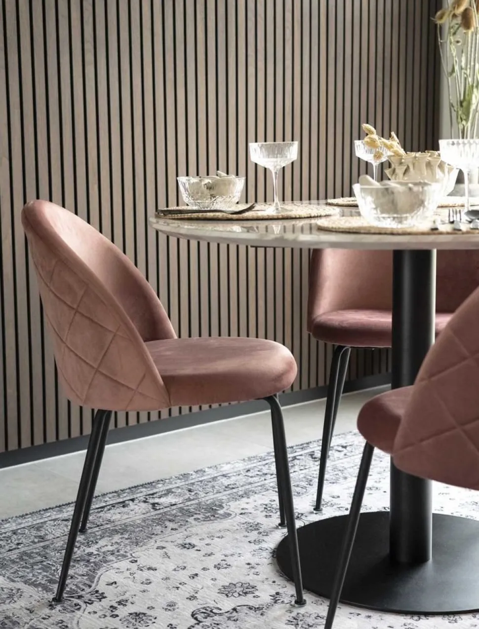Matbord med bordsskiva i marmor imitation svarta ben.