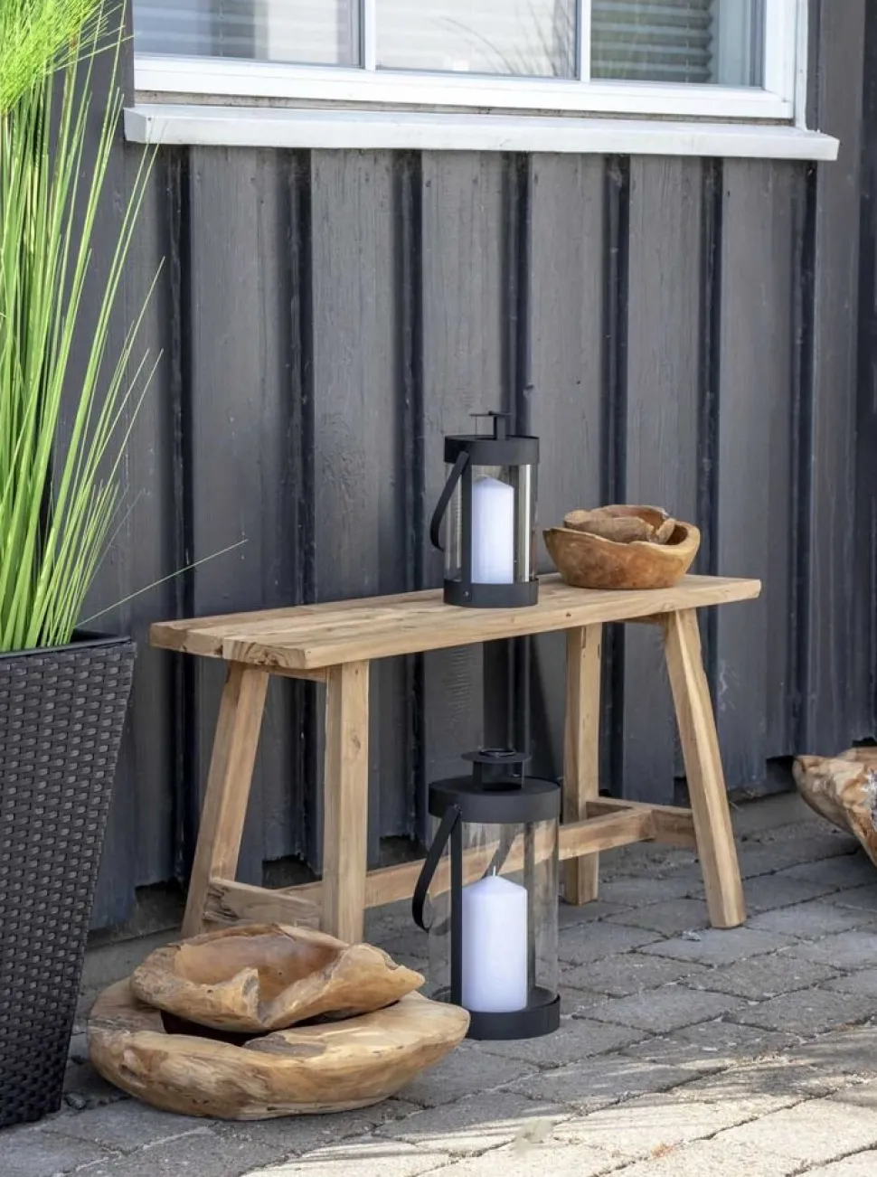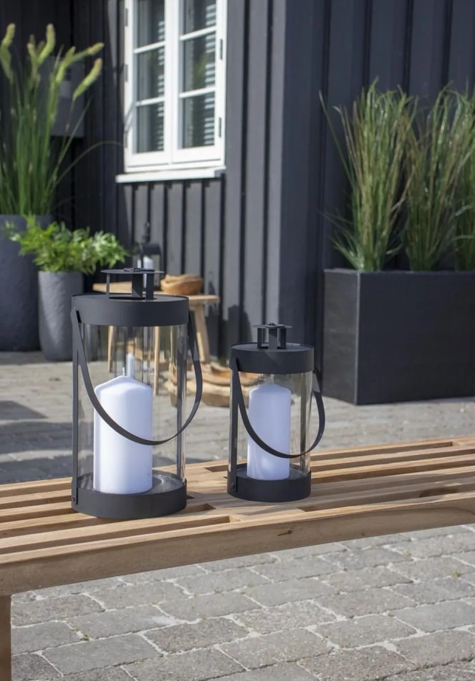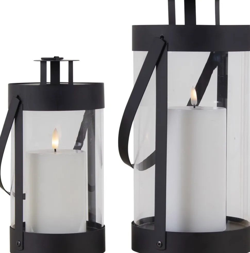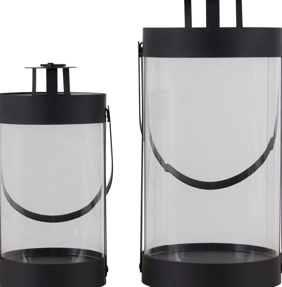 Två lyktor i svart med handtag.