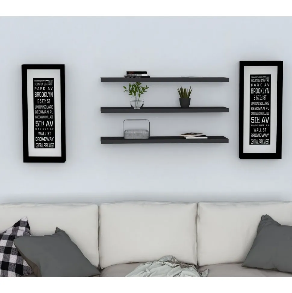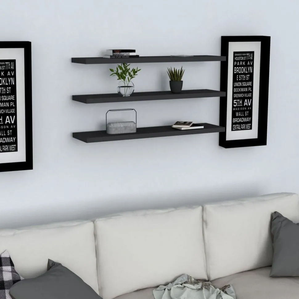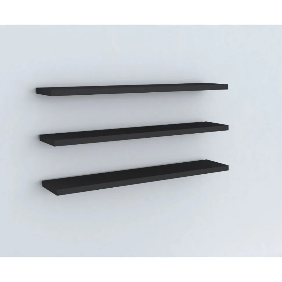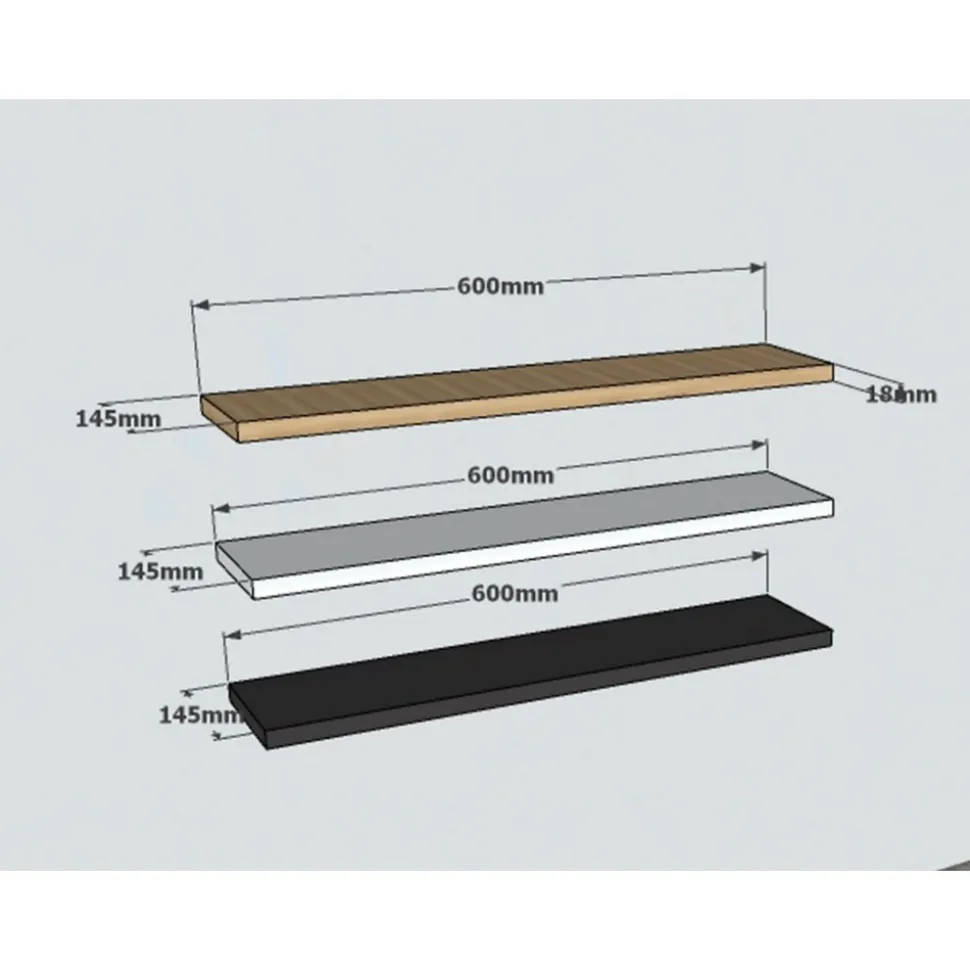 Vägghylla av melaminbelagd spånskiva. 3 st hyllplan som går att arrangera efter eget önskemål.