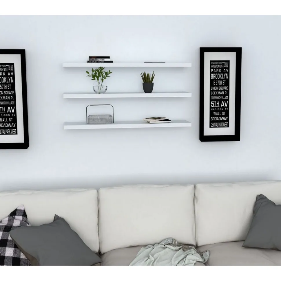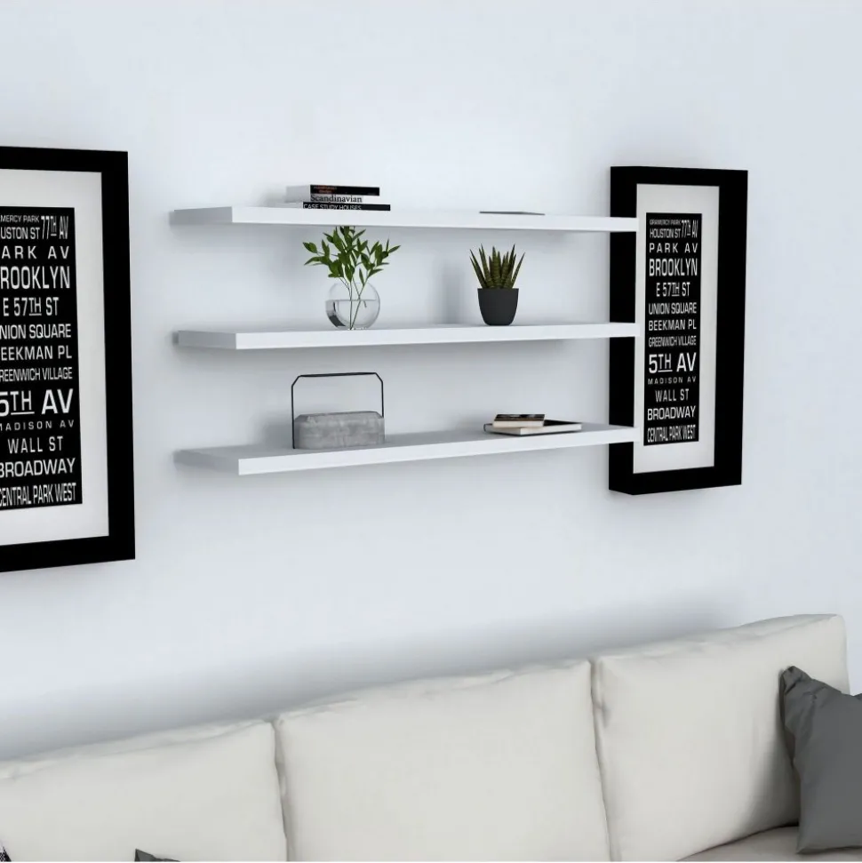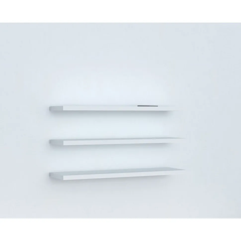 Vägghylla av melaminbelagd spånskiva. 3 st hyllplan som går att arrangera efter eget önskemål.