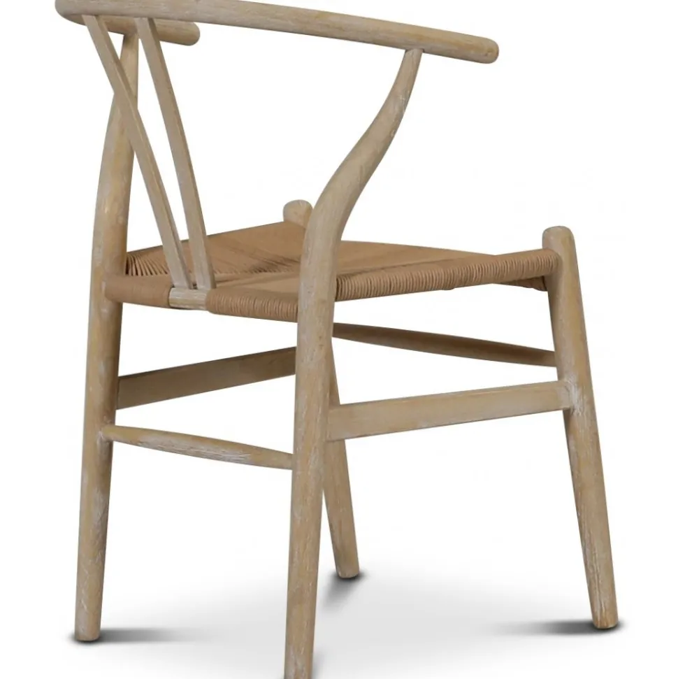 Denna klassiska karmstol är konstruerad av whitewash-behandlat almträ, vilket ger en hållbar och stabil stomme med en ljus finish. Den flätade sitsen av papperssnöre erbjuder både komfort och en unik estetik. Stolen är designad för att passa i olika miljöer och kompletterar både moderna och mer traditionella inredningsstilar.