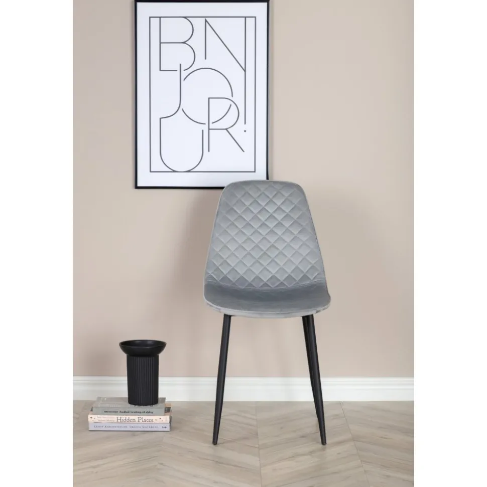 Matstol av metall och plywood, klädd med polyester.