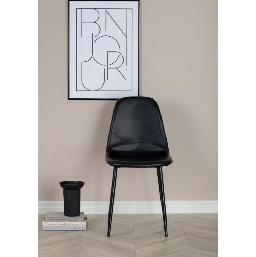Matstol av metall och plywood, klädd med PU-läder.