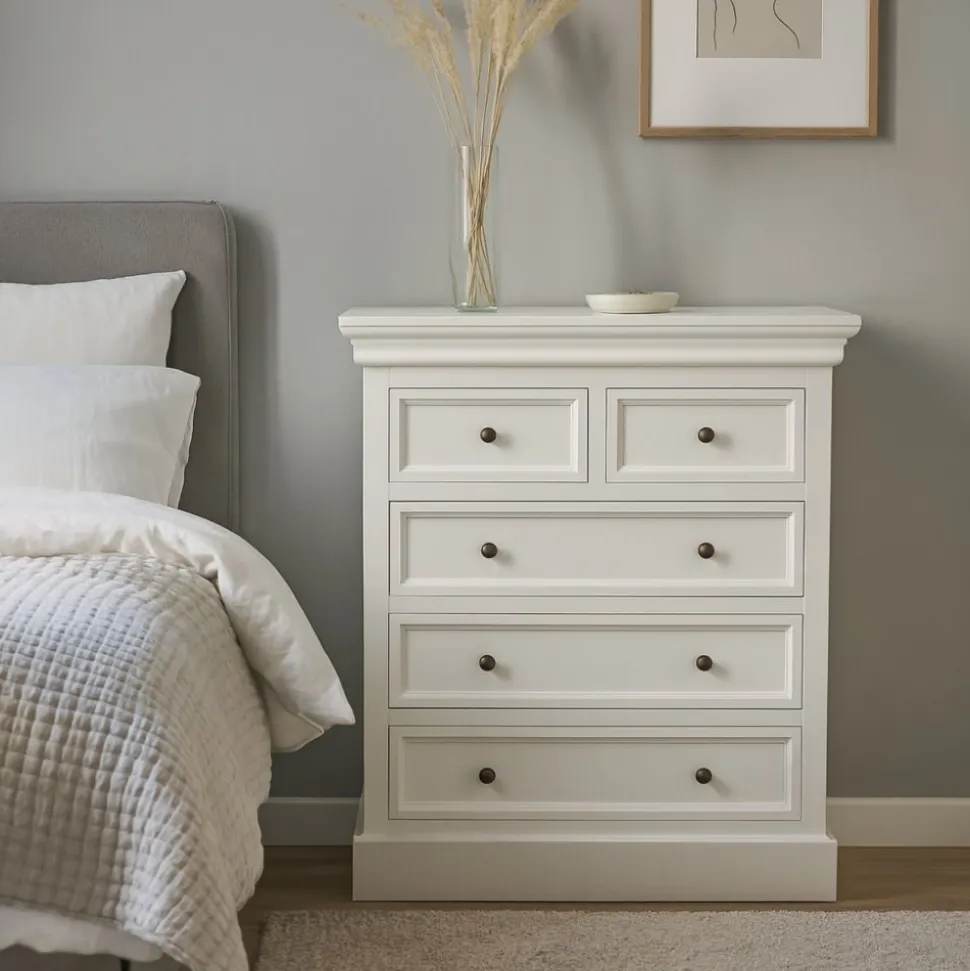 Bristol är utformad med tre större lådor och två mindre, vilket ger gott om utrymme för att organisera dina saker på ett snyggt och funktionellt sätt.