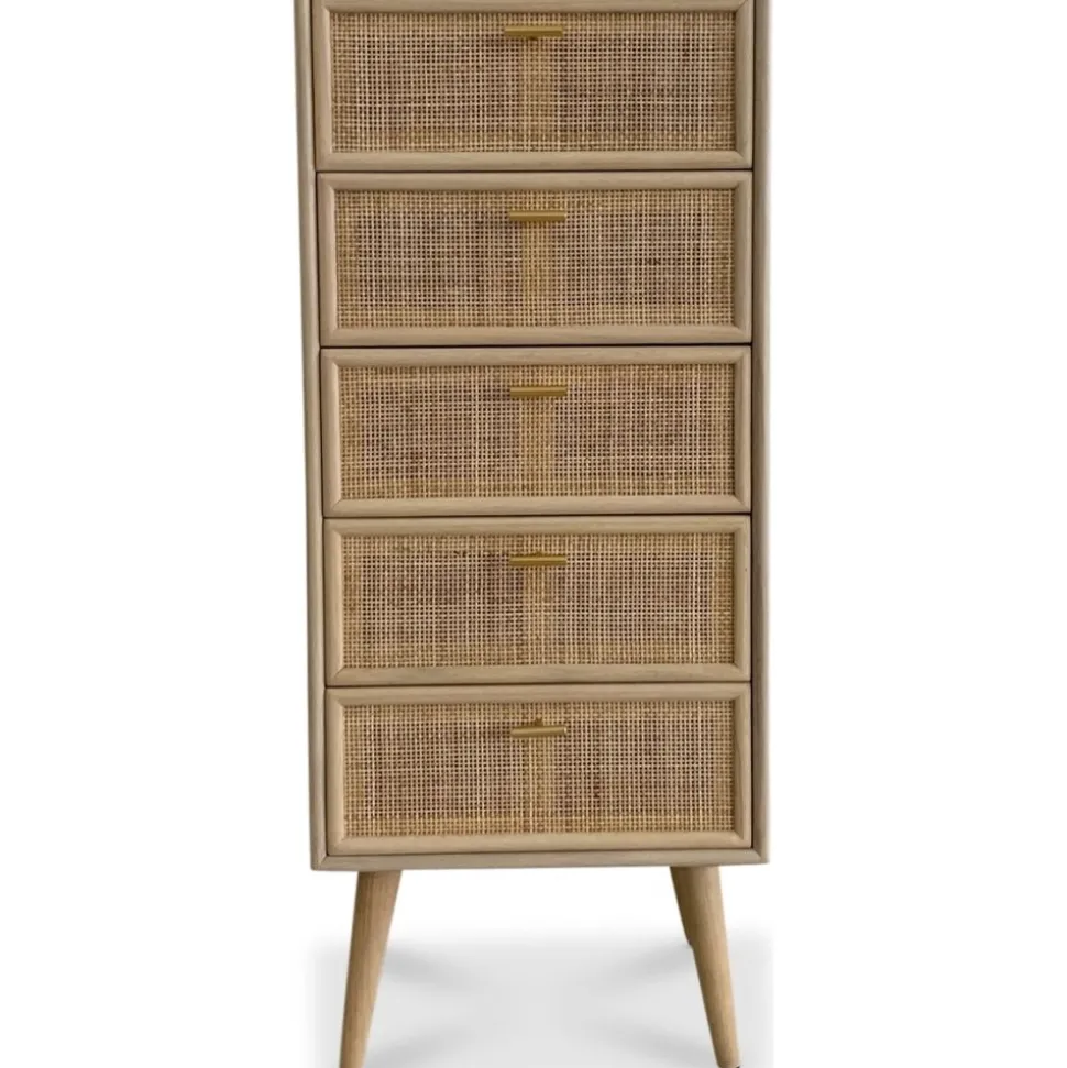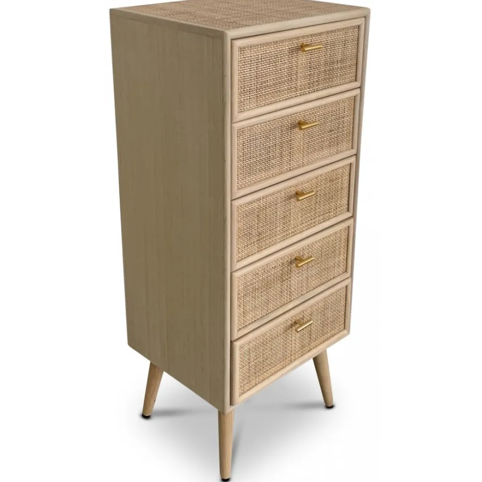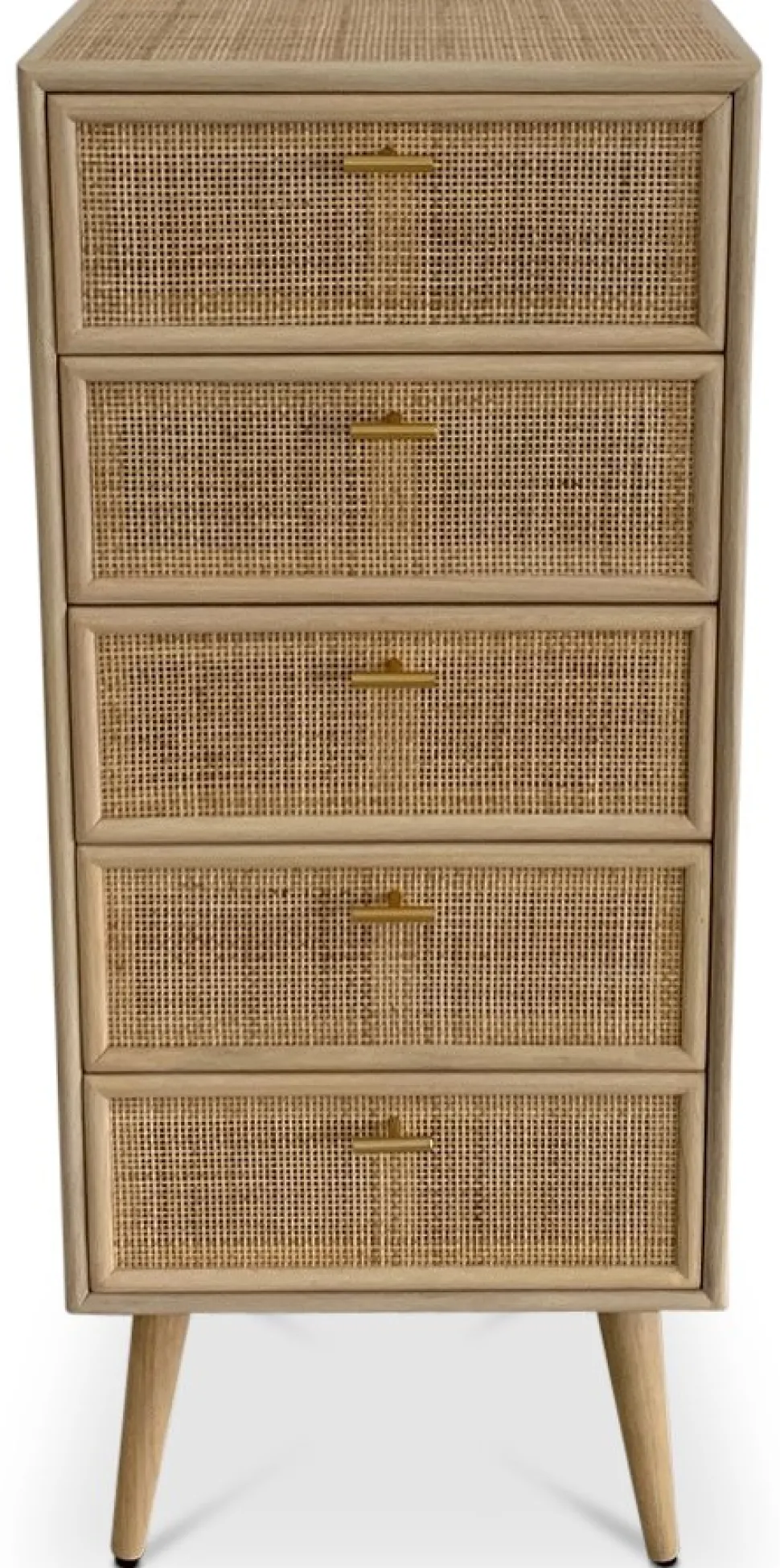 React är en serie med förvaring som är handbyggda för att komma så nära naturen som möjligt. Varje möbel är unik och tillverkad efter traditionellt snickarhantverk. Stomme i behandlat trä med naturrotting. Lådorna är försedda med eleganta guldfärgade handtag i mässing.