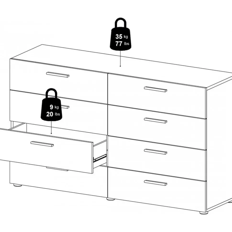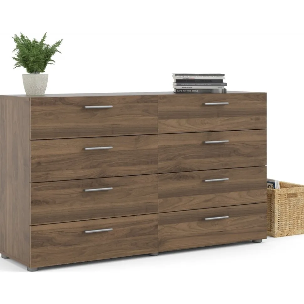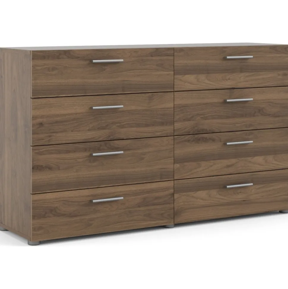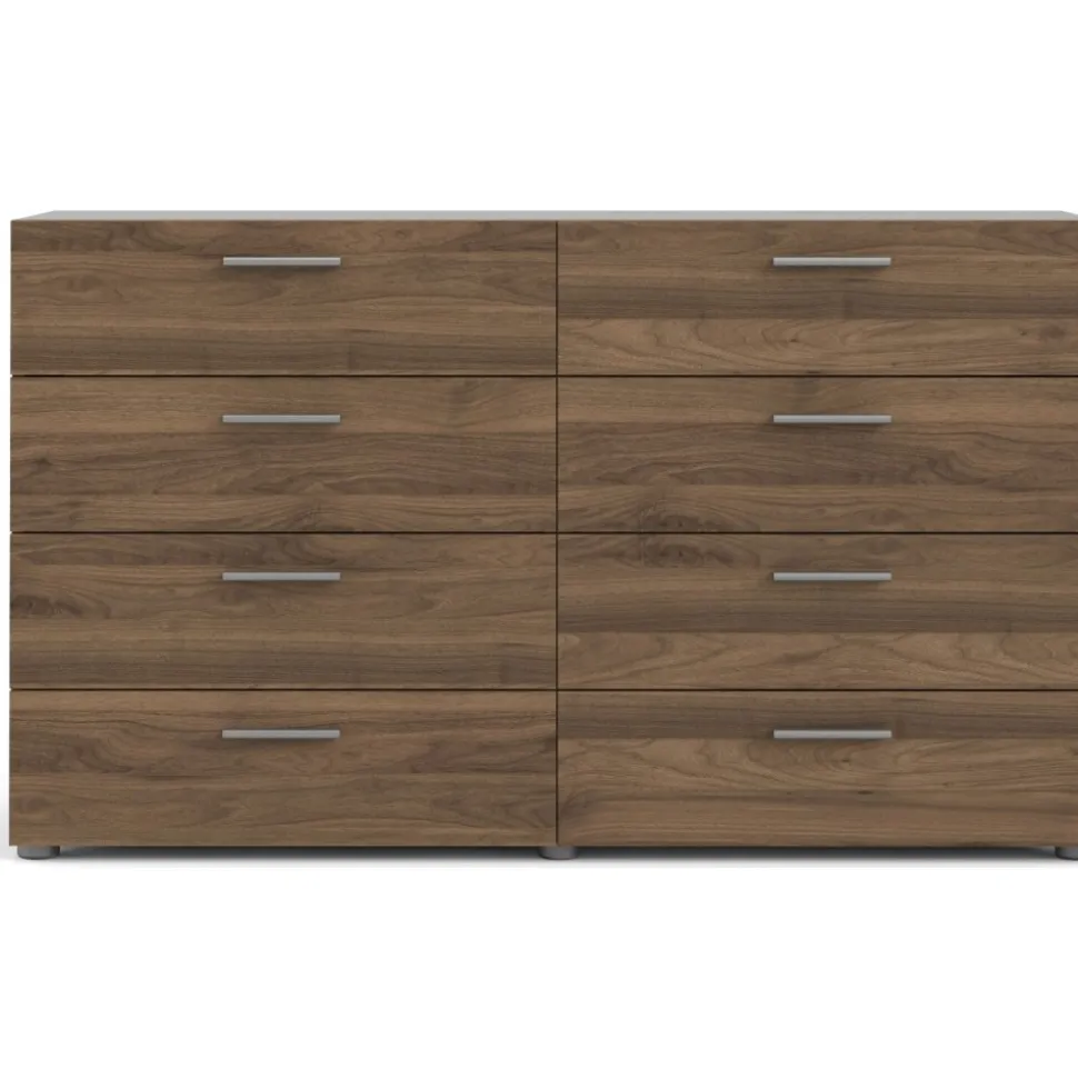 Byrå i valnöt med 8 lådor 140 cm bred: