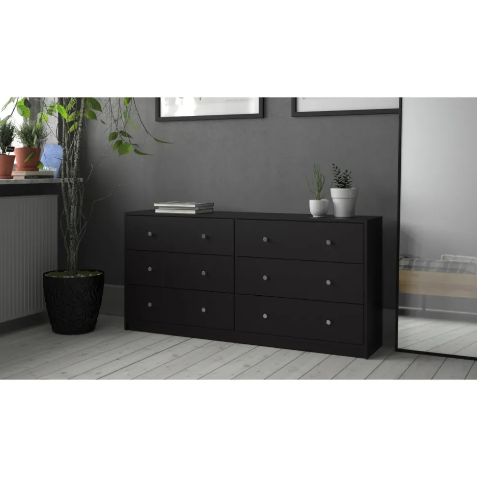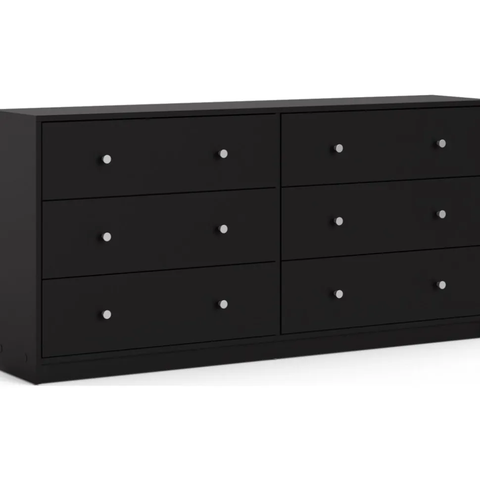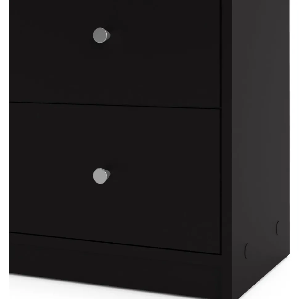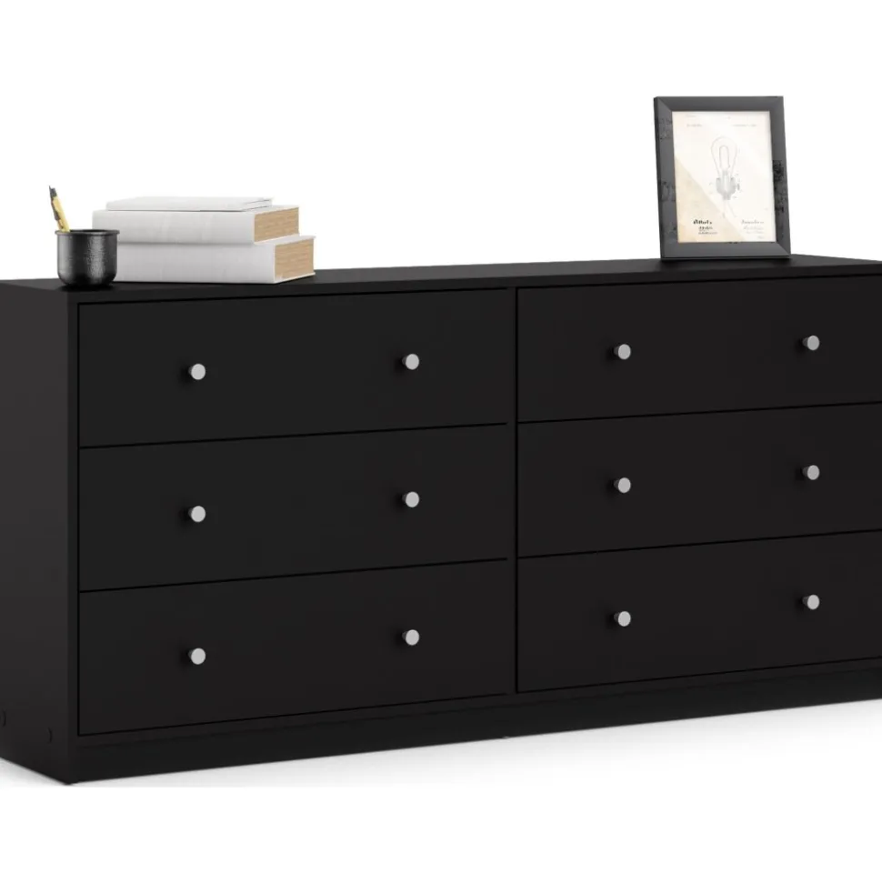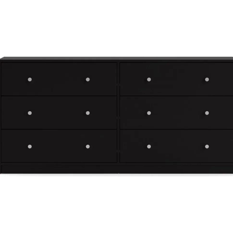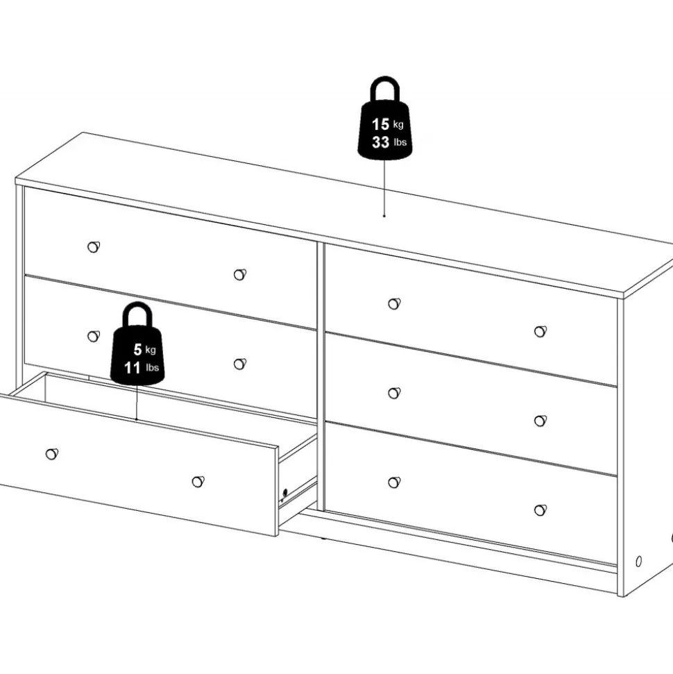 Vår stiliga är tillverkad av trä och har kantband av melamin för ökad hållbarhet. Den erbjuder generös förvaring med flera rymliga lådor, vilket gör den idealisk för kläder och andra föremål. Byrån är lätt att rengöra och motståndskraftig mot slitage, vilket garanterar långvarig användning. Med eleganta handtag och ben i plast får den ett modernt utseende som passar alla inredningsstilar.