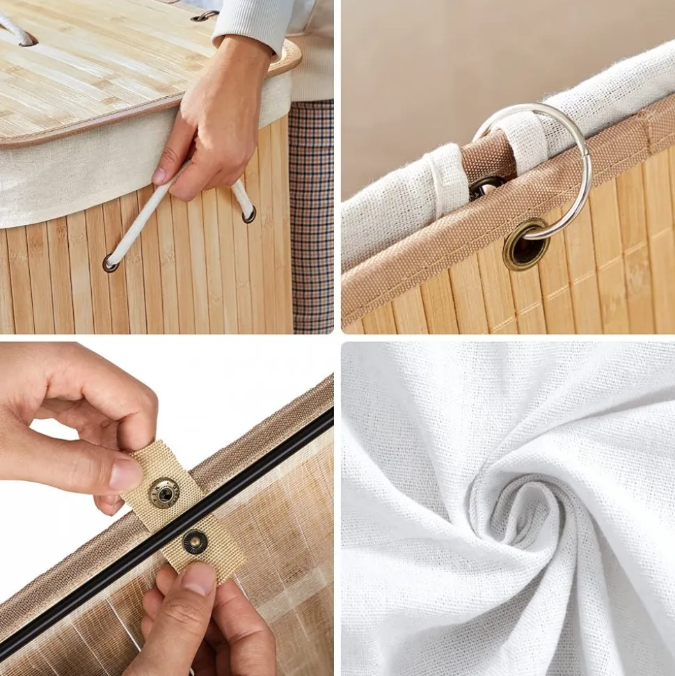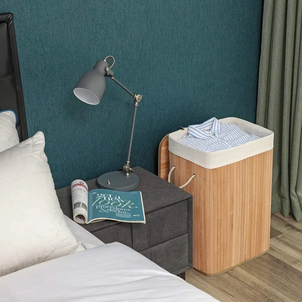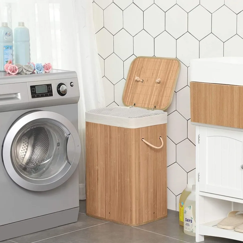 Tvättkorg av bambu med avtagbar innerpåse av bomull. Rymmer 72 liter.