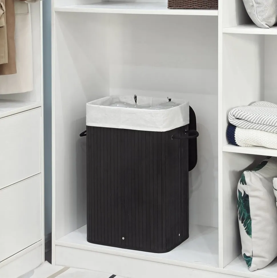 Tvättkorg av bambu med avtagbar innerpåse av bomull. Rymmer 72 liter.