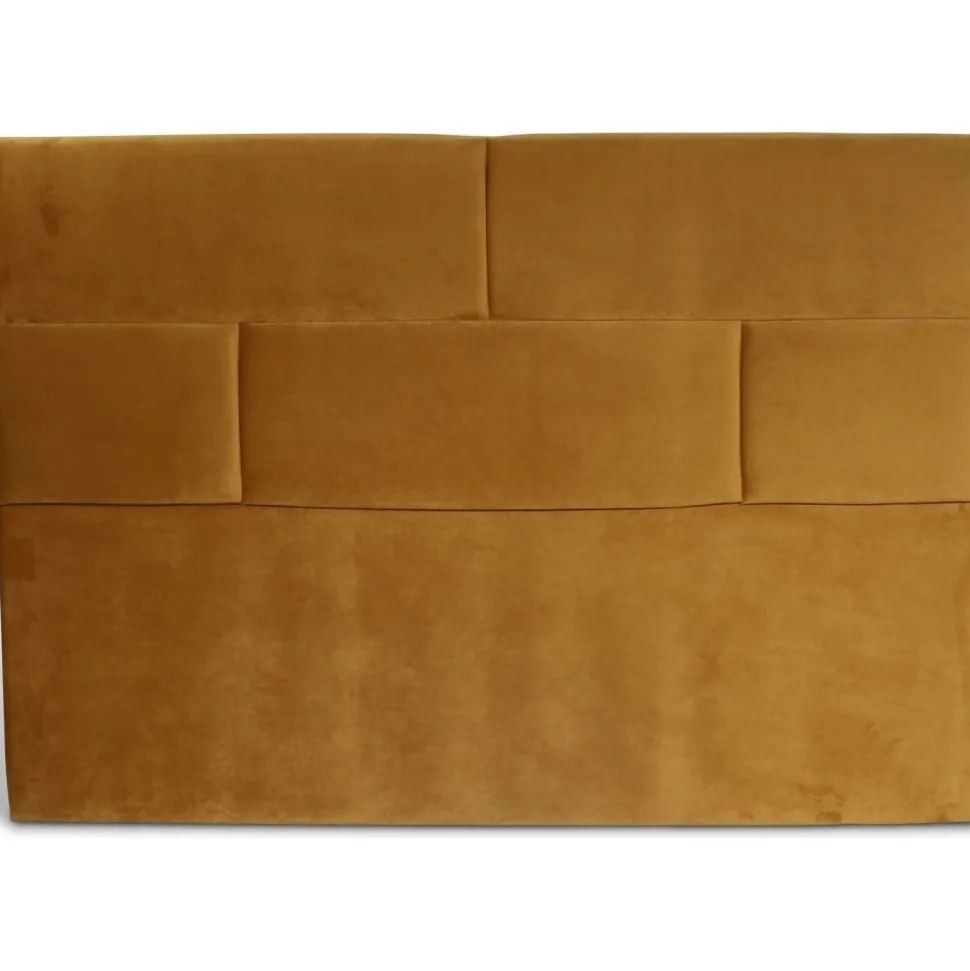 Sänggavel Carpe i ett guldfärgat sammetstyg med en mjuk känsla. Snygg design med ett modernt för att ge ett lyxigt utryck i sovrummet.