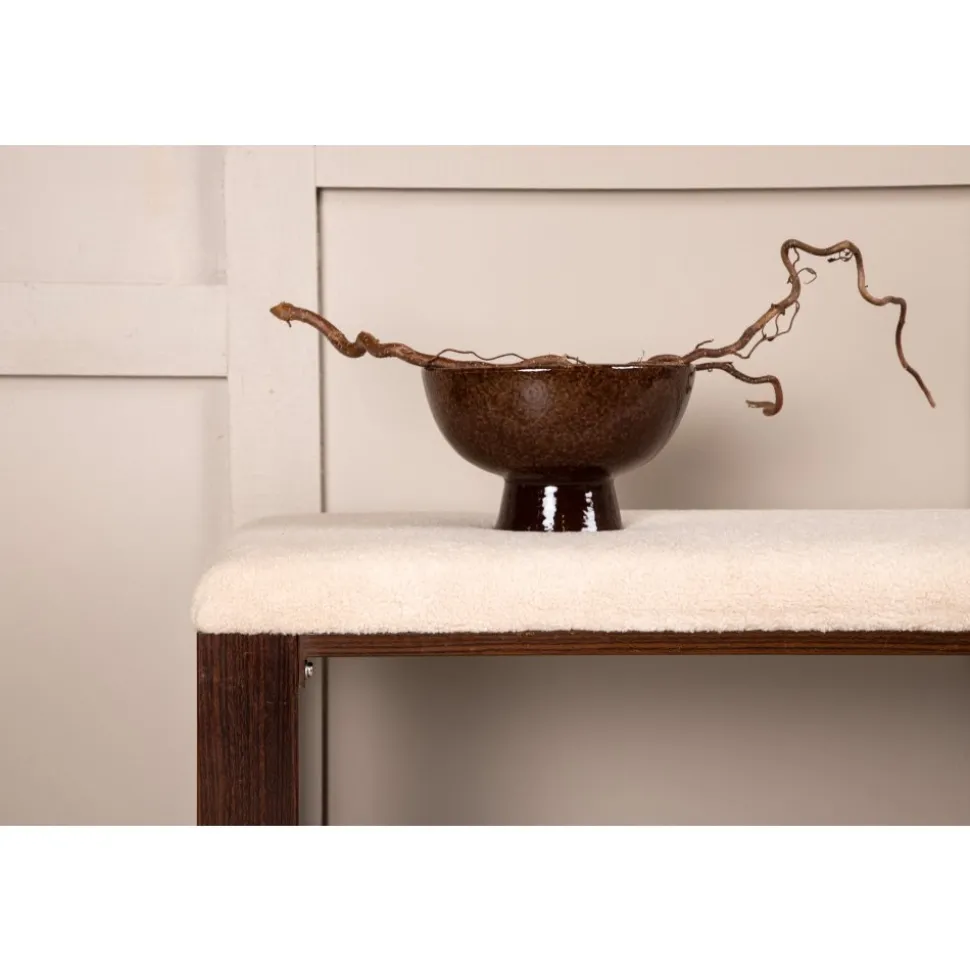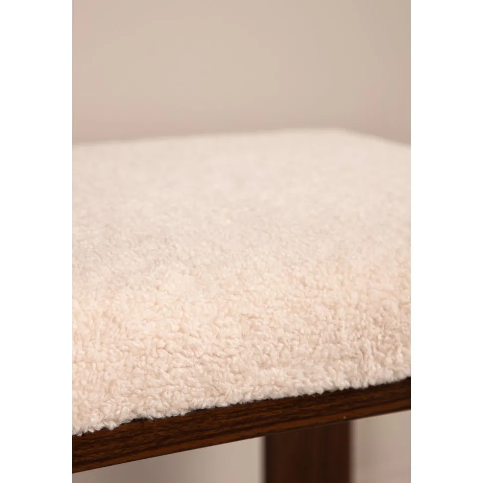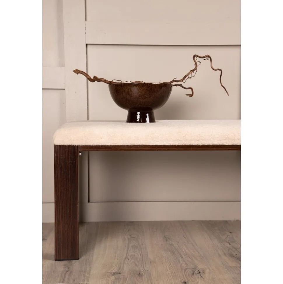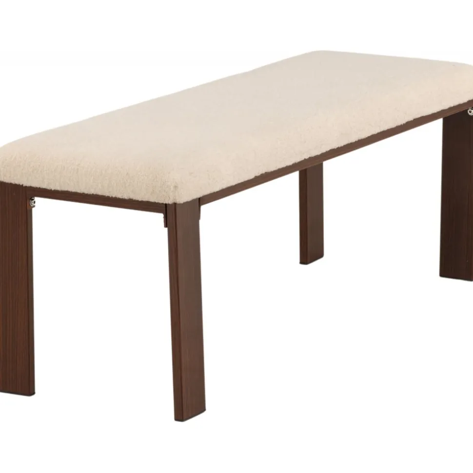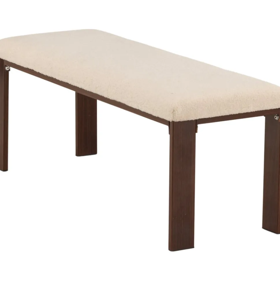 Bänk med rektangulär sits i mjukt fleecetyg med vit kulör och fyra ben i brunt valnötsfärgat trä. Den perfekta inredningsdetaljen till hallen eller vardagsrummet, som solitär stilikon eller för att skapa fler sittplatser i hemmet.