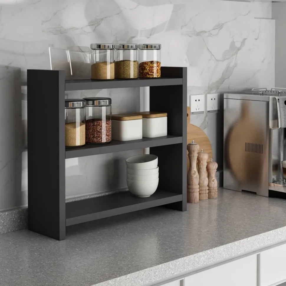Kökshylla av melaminbelagd spånskiva.