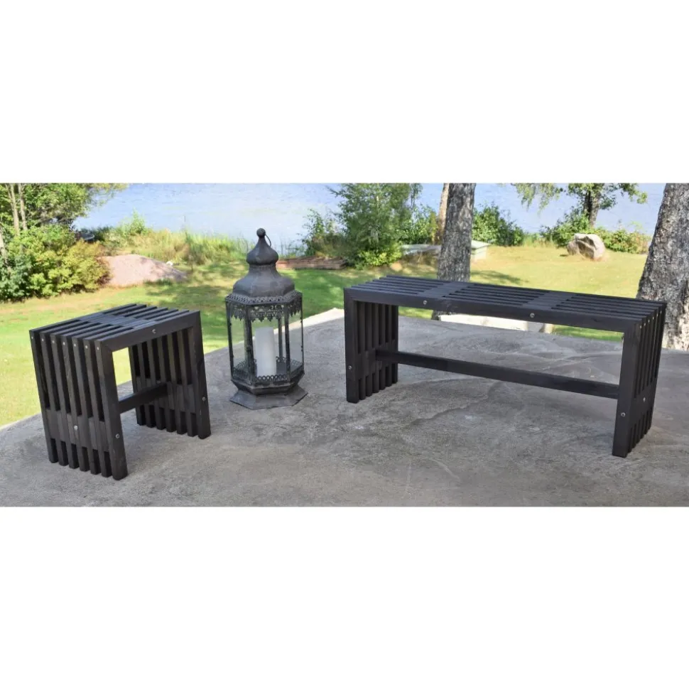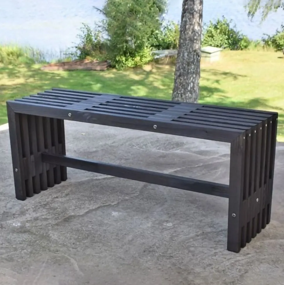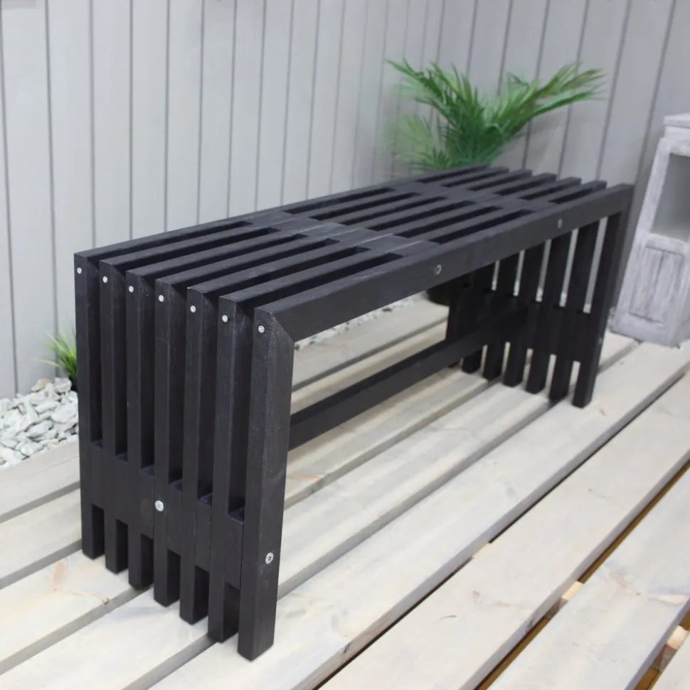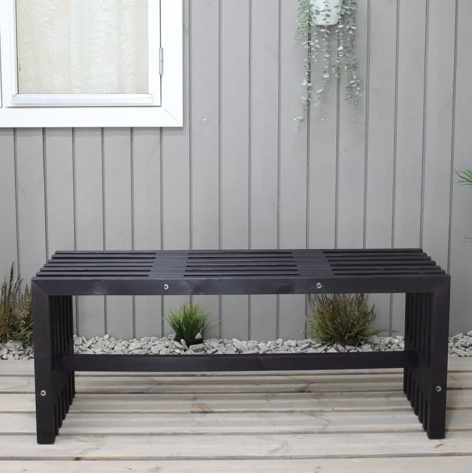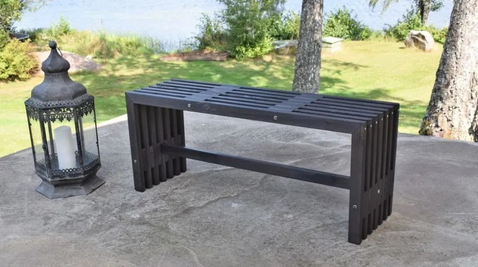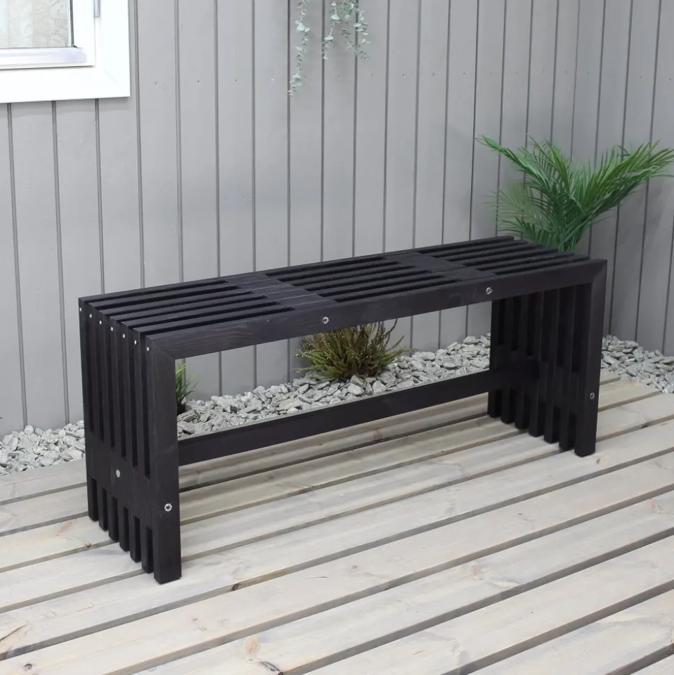 Stabil bänk i svartlaserad furu. Passar bra till utemöblemanget eller som fristående bänk.