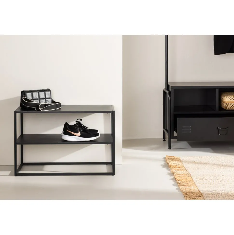 Vår underbara i skandinavisk stil från serien Curitiba! Om du letar efter den perfekta balansen mellan stil och praktisk förvaring så har du hittat rätt. Den här pulverlackerade skohyllan i svart metall är den ultimata lösningen. Med sin rektangulära design och öppna hyllplan ger det inte bara ett modernt intryck utan också plats för stilren förvaring. Curitiba är både stilren och mångsidig. Håll allt inom räckhåll samtidigt som du behåller en snygg och välorganiserad atmosfär. Den minimalistiska utformningen smälter dessutom sömlöst in i alla rum i ditt trendiga hem. Skapa en inbjudande atmosfär i ditt hem med en skohylla som kombinerar funktionalitet med skandinavisk elegans på allra bästa sätt. Välkommen till ett mer organiserat och vackert hem! Levereras omonterad.