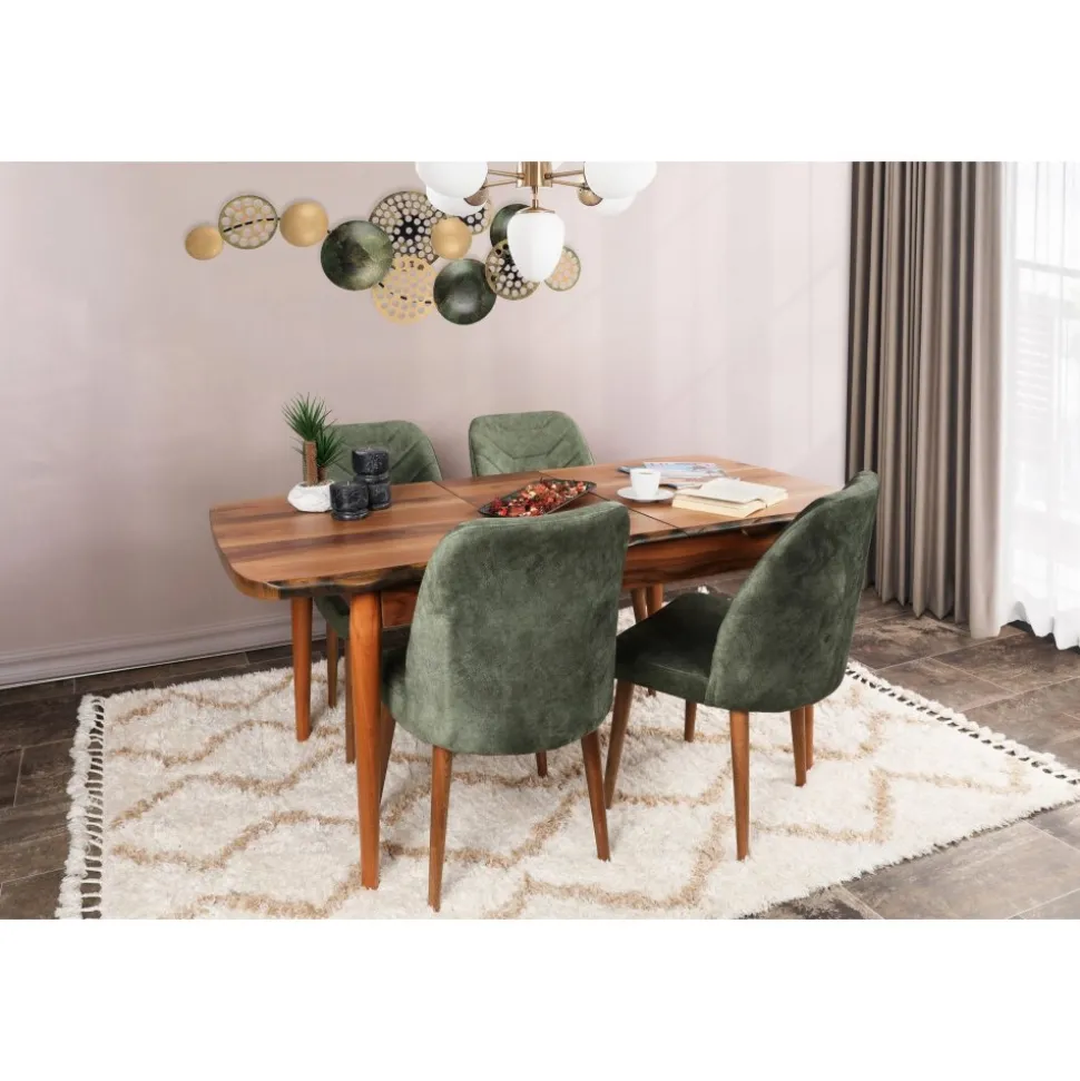 Stol av trä och metall med klädsel av sammet. Paket med 4 st .