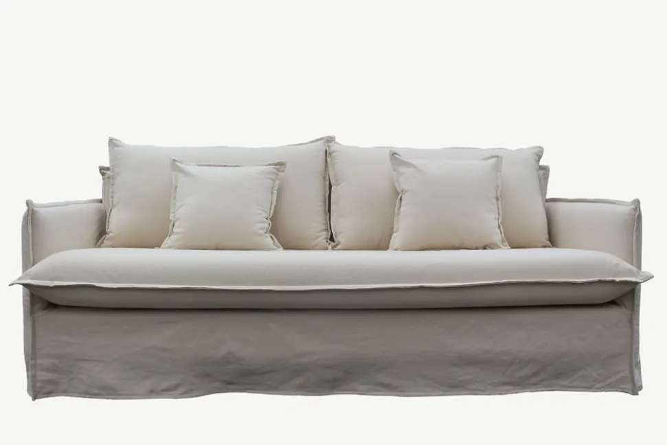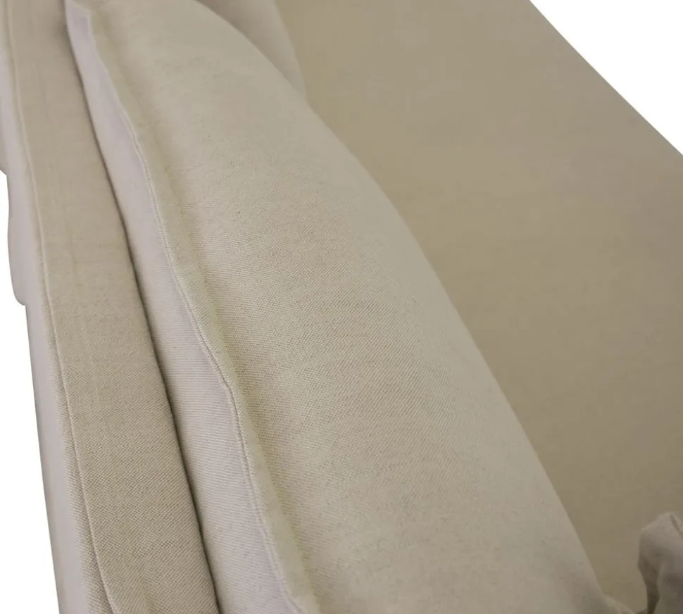 Soffa Delfi är klädd med ett beige fibertyg och är skumstoppad för god komfort. Stomme av massiv furu.
