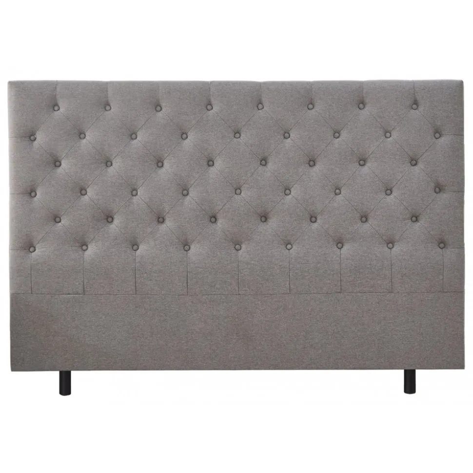 Deluxe pikerad Sänggavel 180 cm bred. Totalhöjd 125 cm inklusive ben. Grått tyg.