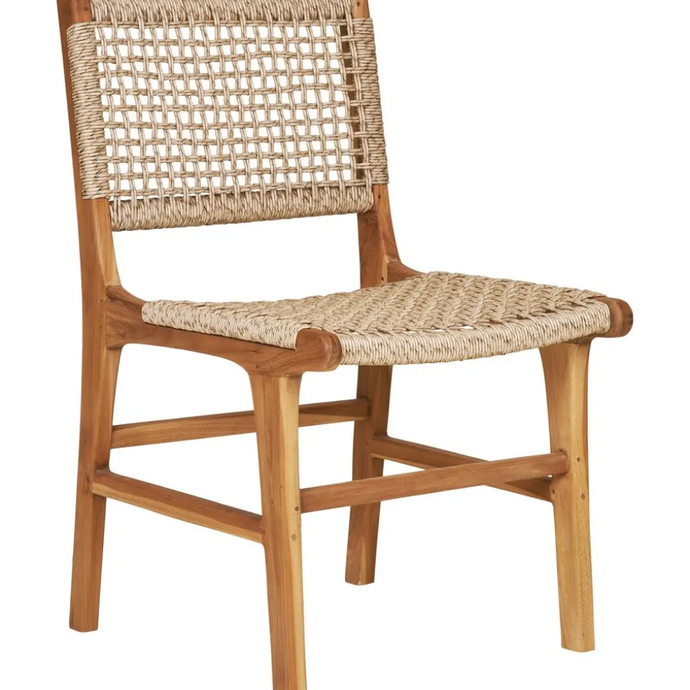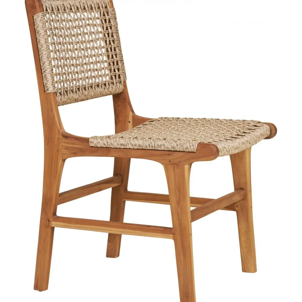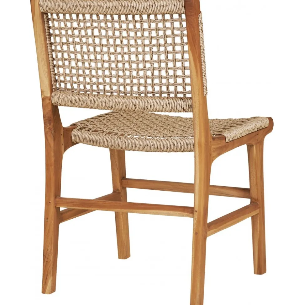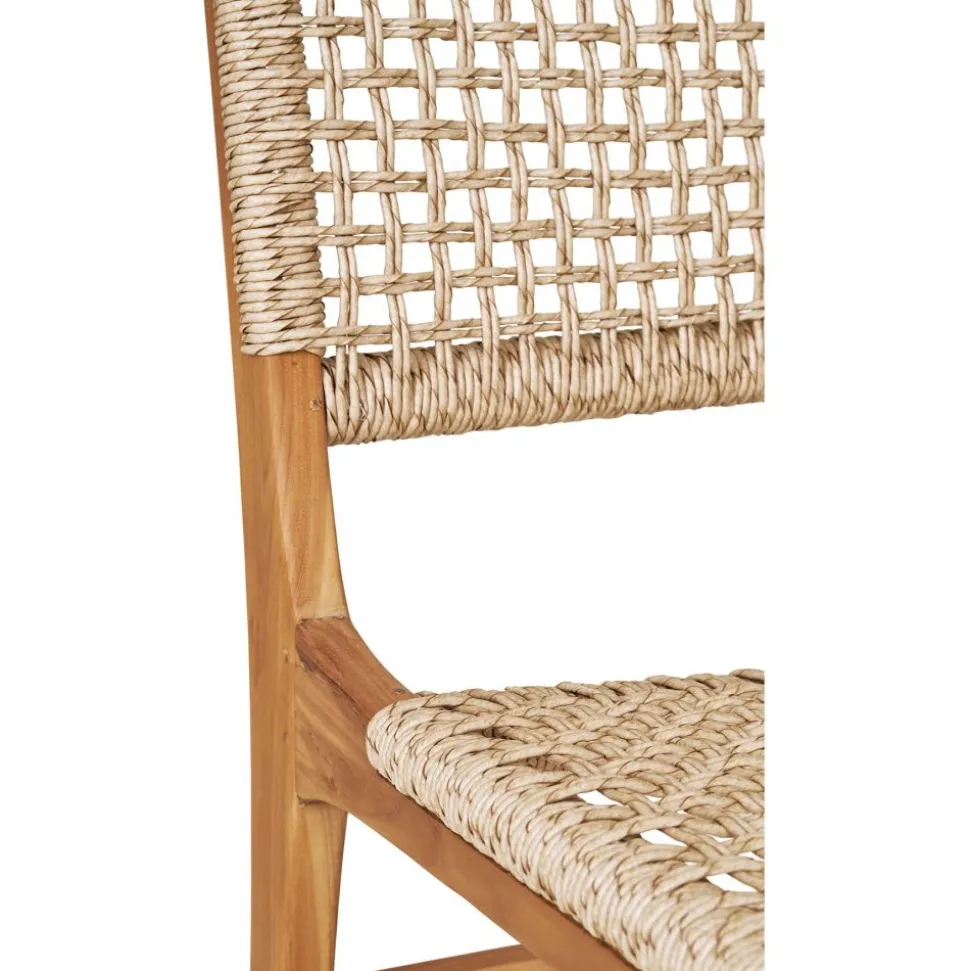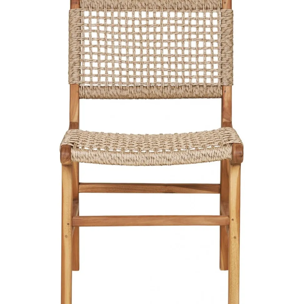 Matstol av teak med sits och rygg klädd med konstrotting av polyeten. Levereras monterad.