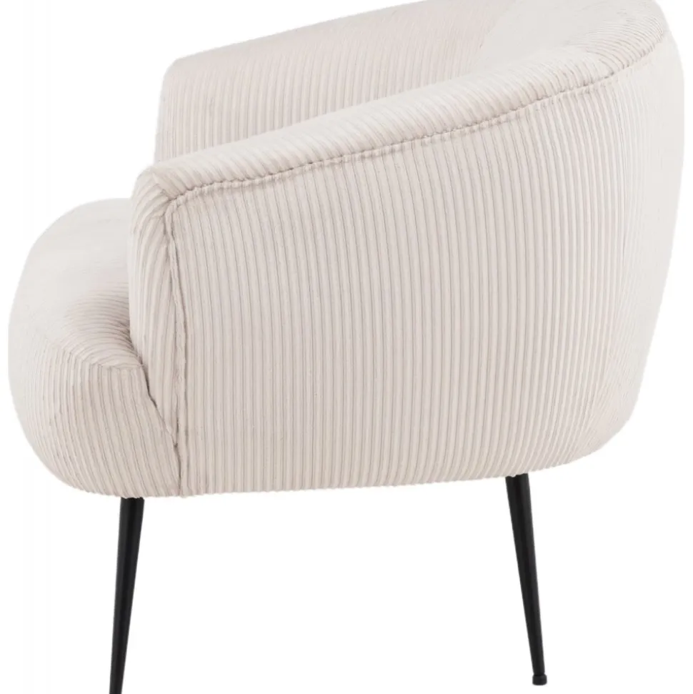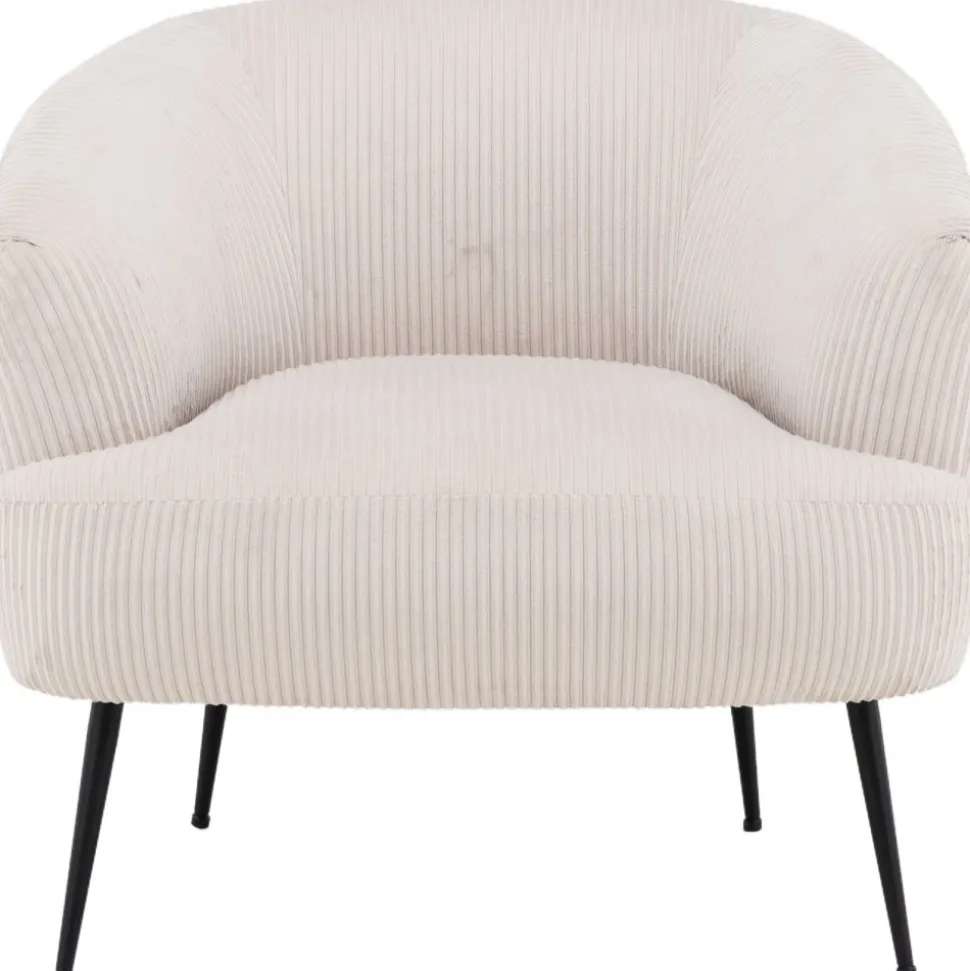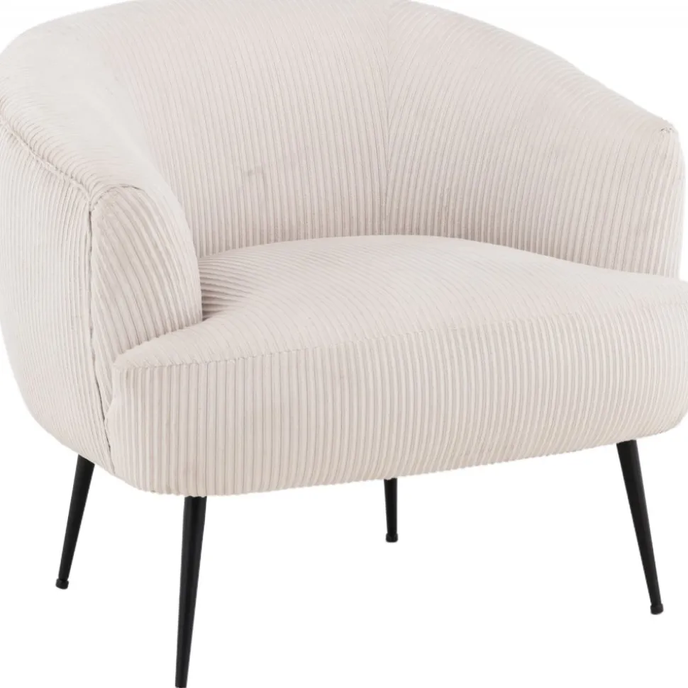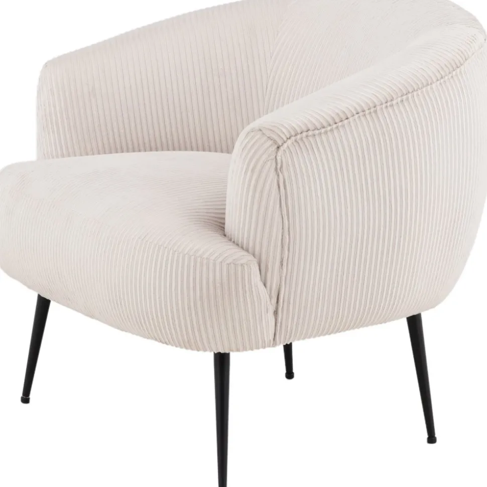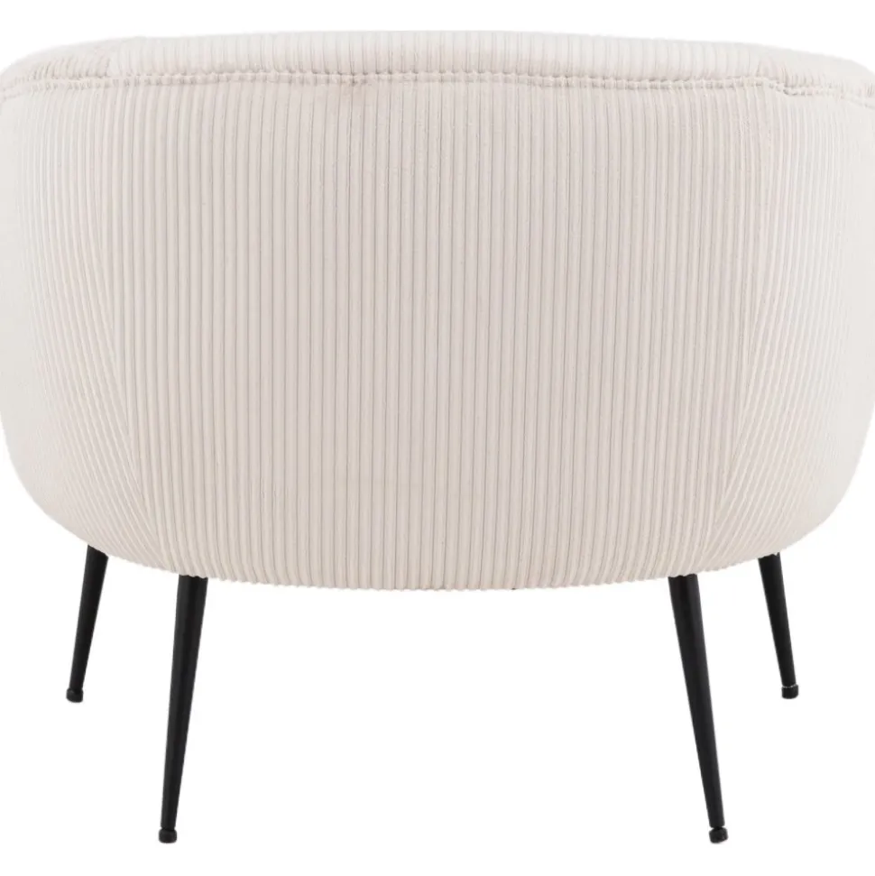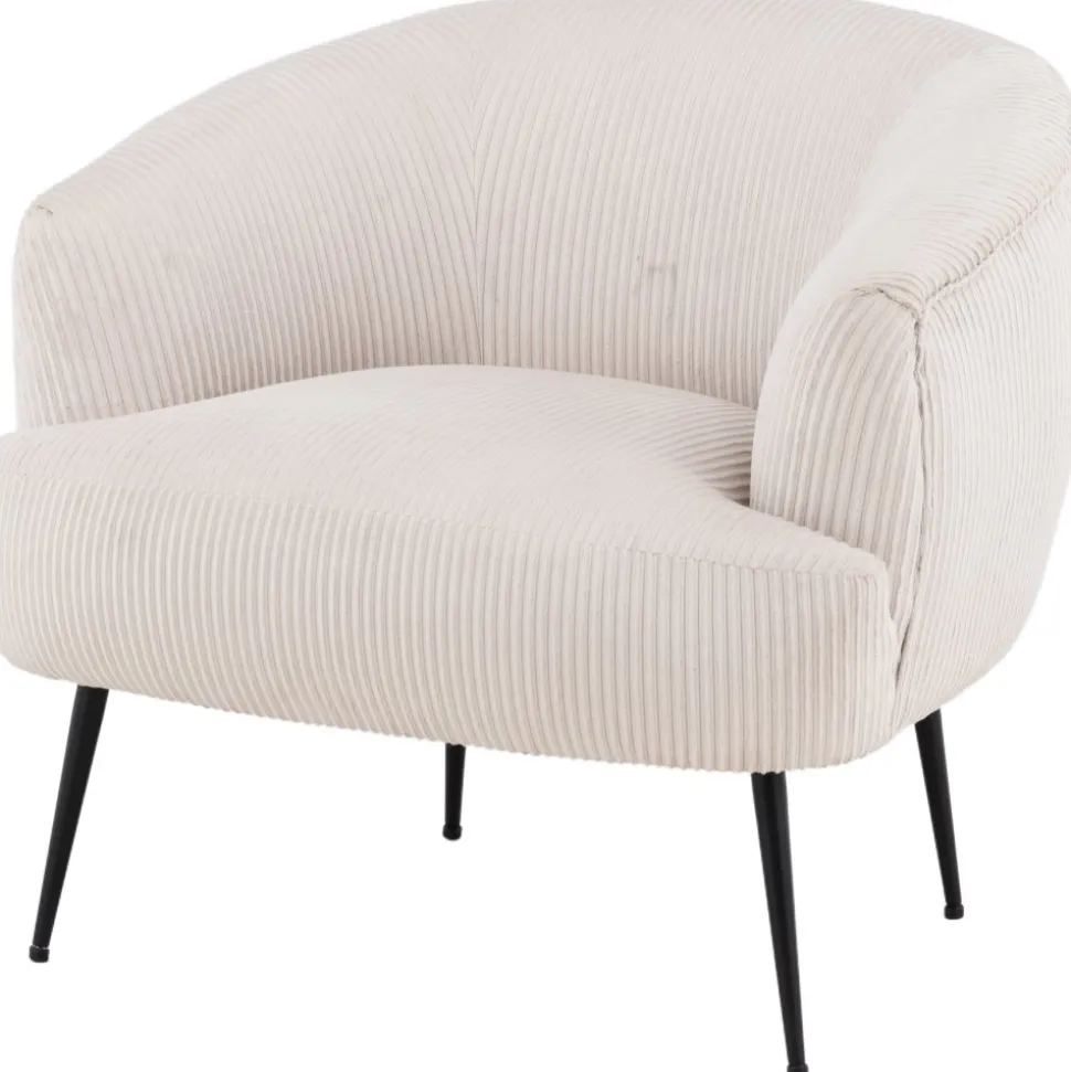 Låt modern design möta 50-tals nostalgin med den här trendiga manchsterfåtöljen. Klädd i lent ljust manchestertyg i beige kulör som ger fåtöljen ett härligt lyster. Den böjda och mjuka designen, de smala, höga benen och generösa sittdjupet skapar en luftig och inbjudande känsla. En otroligt genomtänkt helhetsdesign helt enkelt med klädd baksida som möjliggör att placera fåtöljen mitt i rummet. Möblera ensam som stilikon eller tillsammans med soffgruppen och njut av avkopplade stunder! Levereras omonterad.