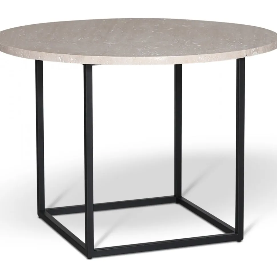 Dexter med svartlackat metallunderrede och en toppskiva i äkta travertin sten.