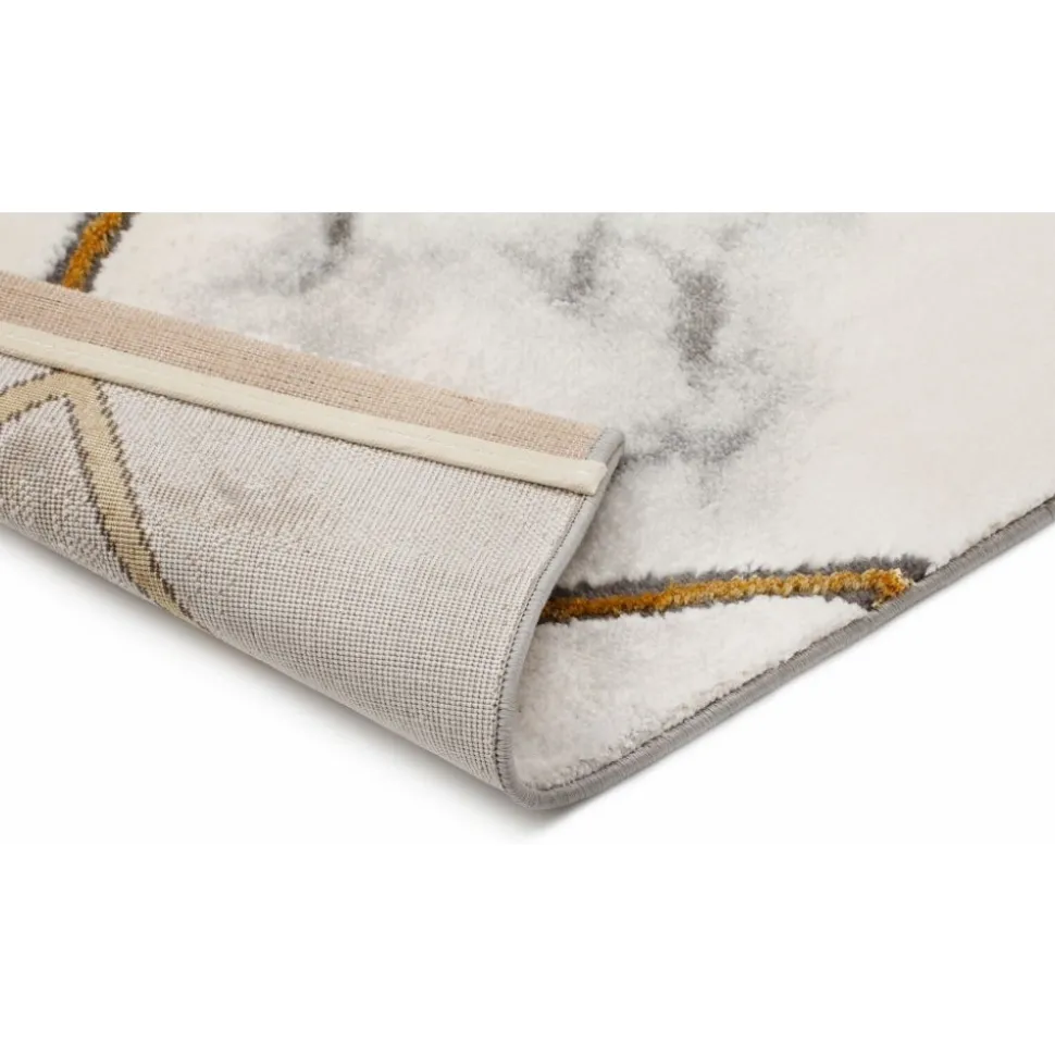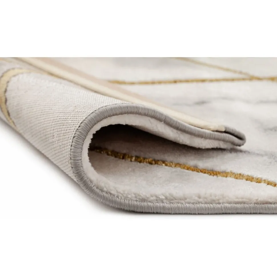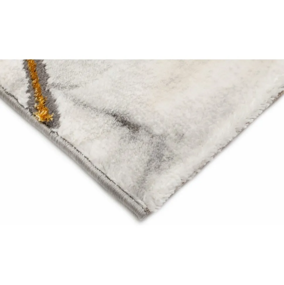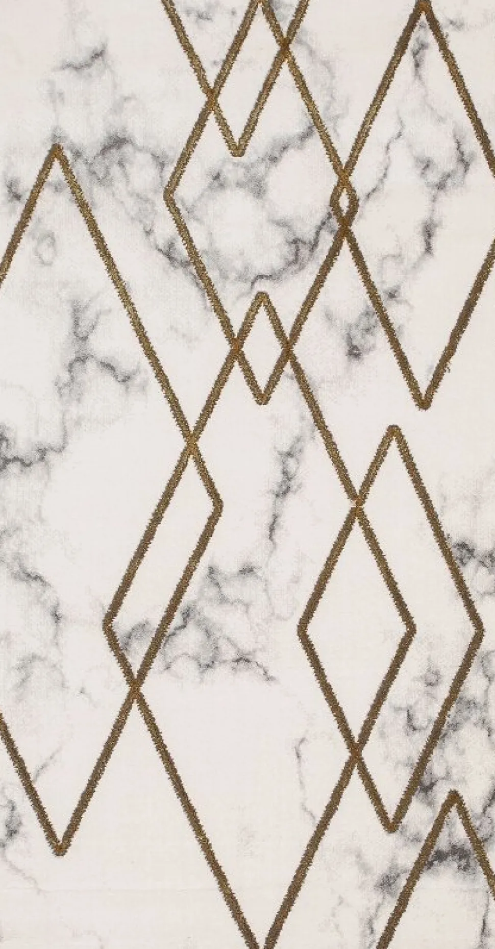 Mattans mönster för tankarna till marmor då den skiftar i olika vit/grå toner, samt att den har mörkare partier som ger mattan ett djup. Mattans mönster är tillverkat i Polyester vilket ger ett härligt lyster när ljuset faller på.